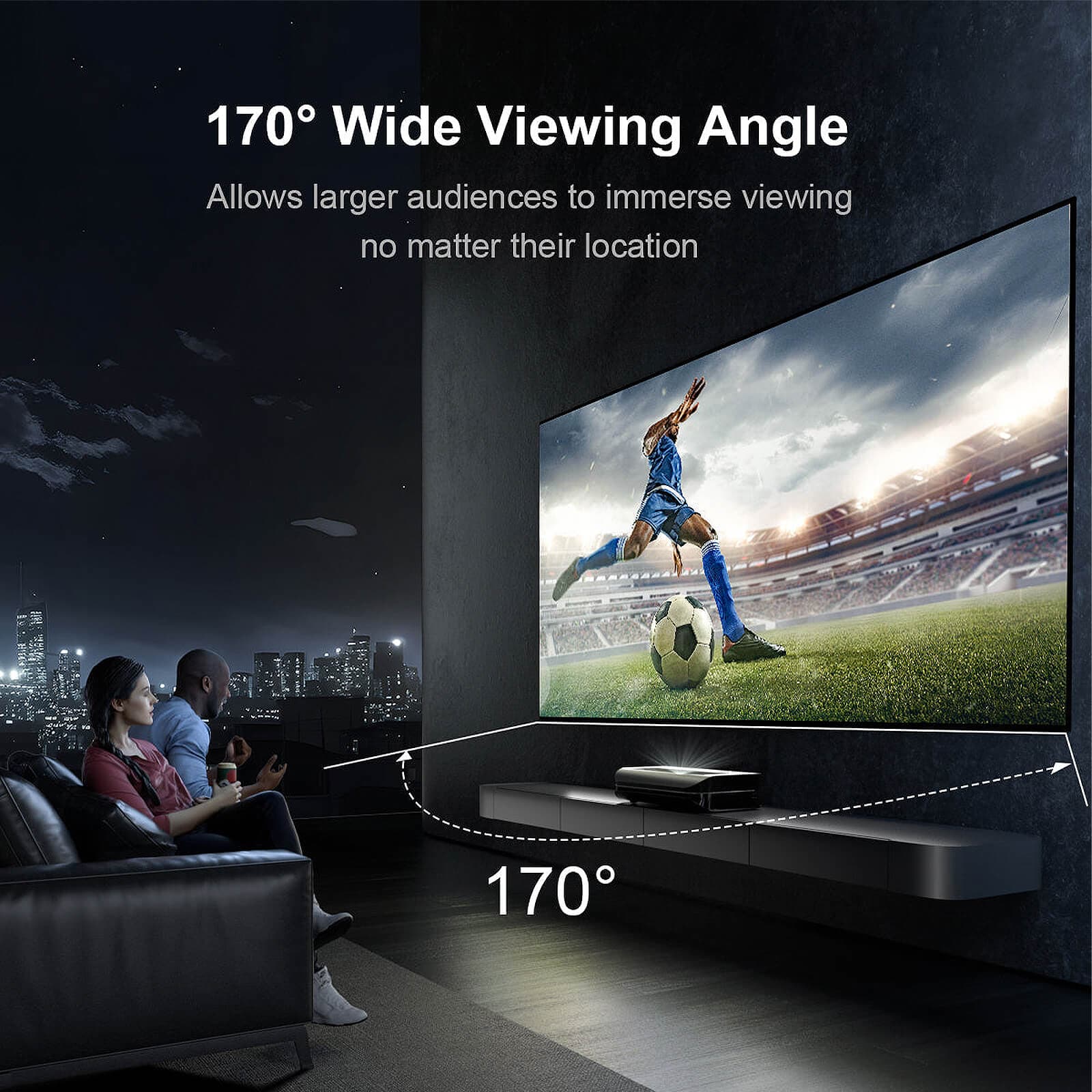 170° Viewing Angle and Black Baked Design: Our screen features an expansive 170° viewing angle, ensuring that everyone in the room can enjoy a clear and vivid view from any position. The black-baked design enhances contrast and eliminates light reflection, delivering a more immersive and captivating viewing experience.