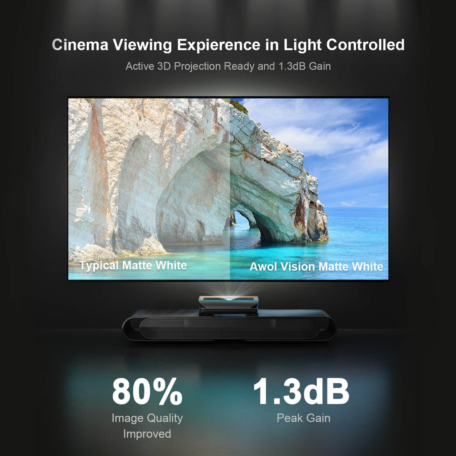 4K/8K and Active 3D Projection Ready: Prepare to be amazed by the remarkable compatibility of AWOL projector screen. It is fully optimized for 4K and 8K projectors, allowing you to indulge in lifelike details and unparalleled image quality. Additionally, it supports Active 3D projection, bringing your movies and games to life with depth and realism.
