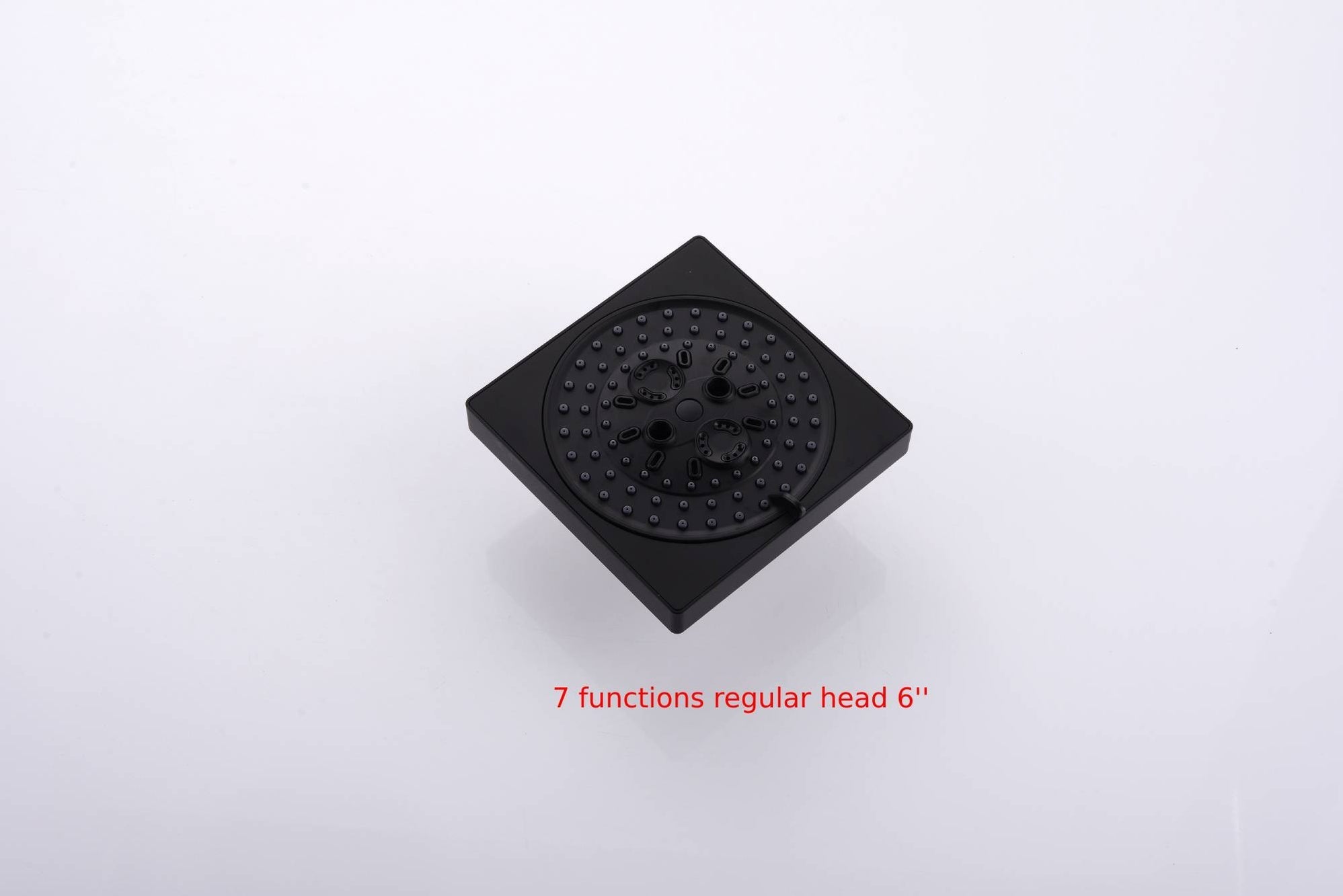 The single-function 6'' regular head is constructed from a combination of brass and stainless steel materials, while the seven-function 6'' regular head is crafted from durable ABS material that possesses equivalent strength to metal.A 6'' Regular head offers a choice between a single-function option or a seven-function option.