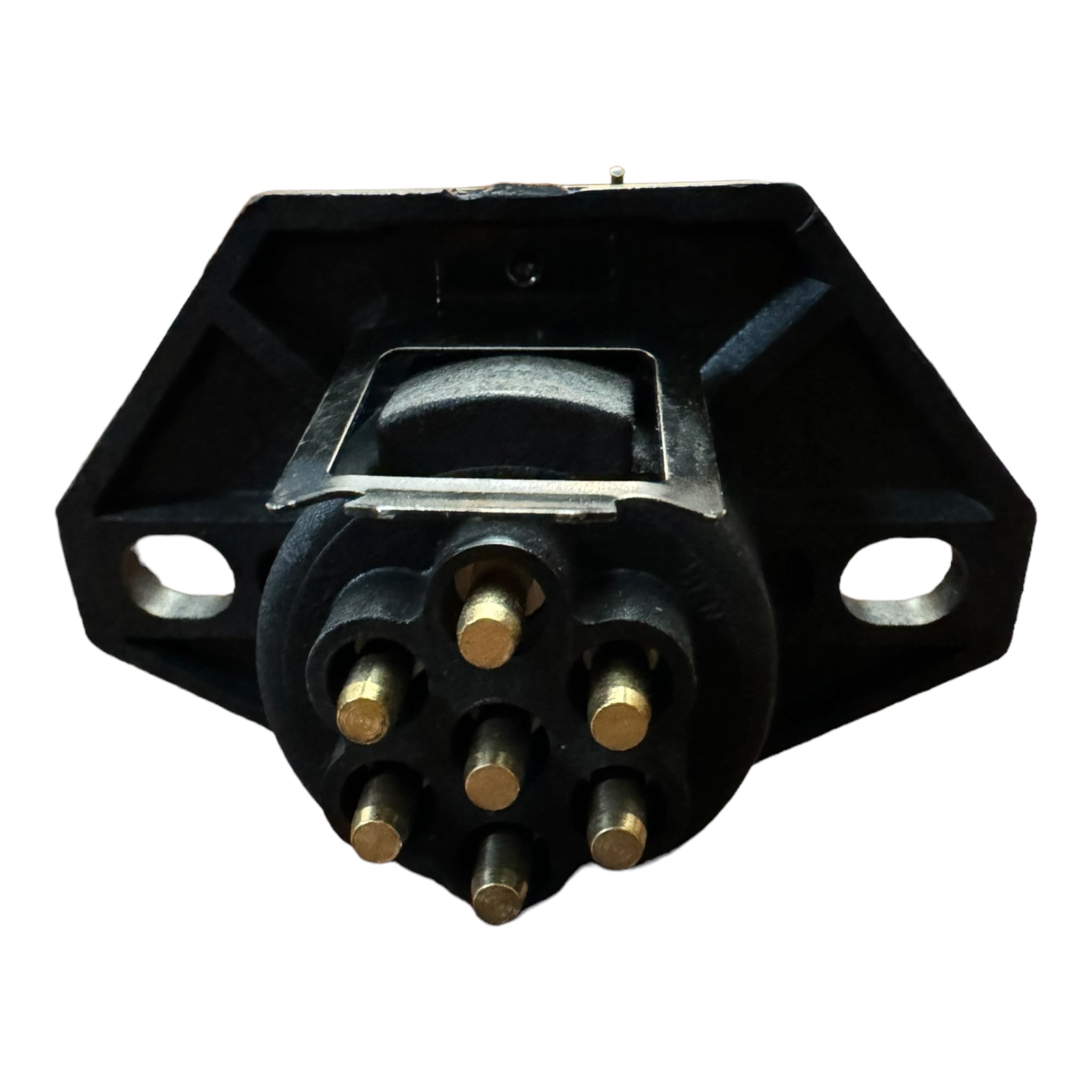 7-Way Socket Receptacle w/Clip Phillips 16-726 This Phillips 7-Way, Waterproof Split Pin Plastic Socket w/clip (Fontaine style), model 16-726, features an extended front barrel to help support the power cable. 2-Hole, 2 7/8" Bolt spacing. Part Managers Note: Except for snap clip, this is the same receptacle as a Phillips # 16-724.  The Phillips # 16-724 does not have a clip.