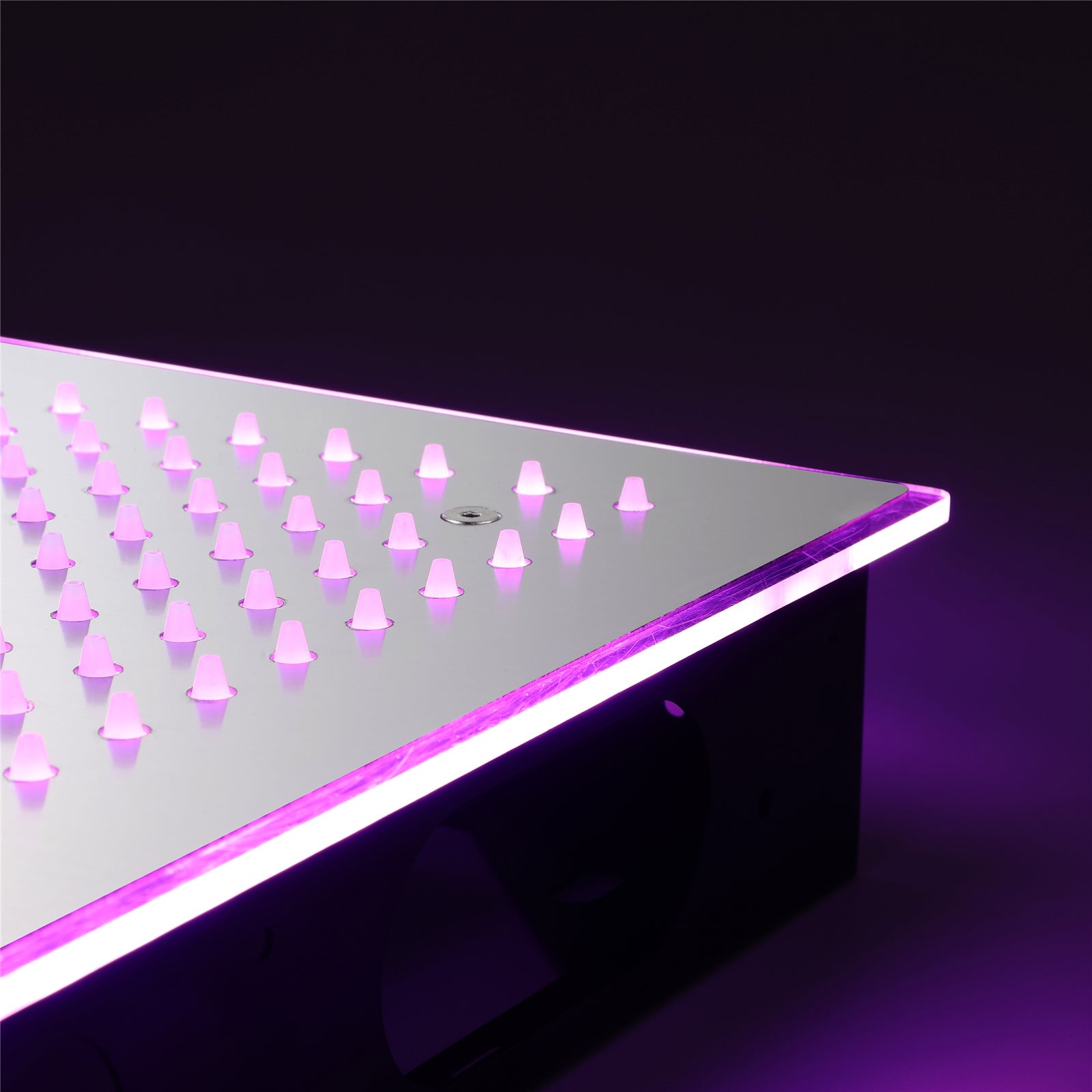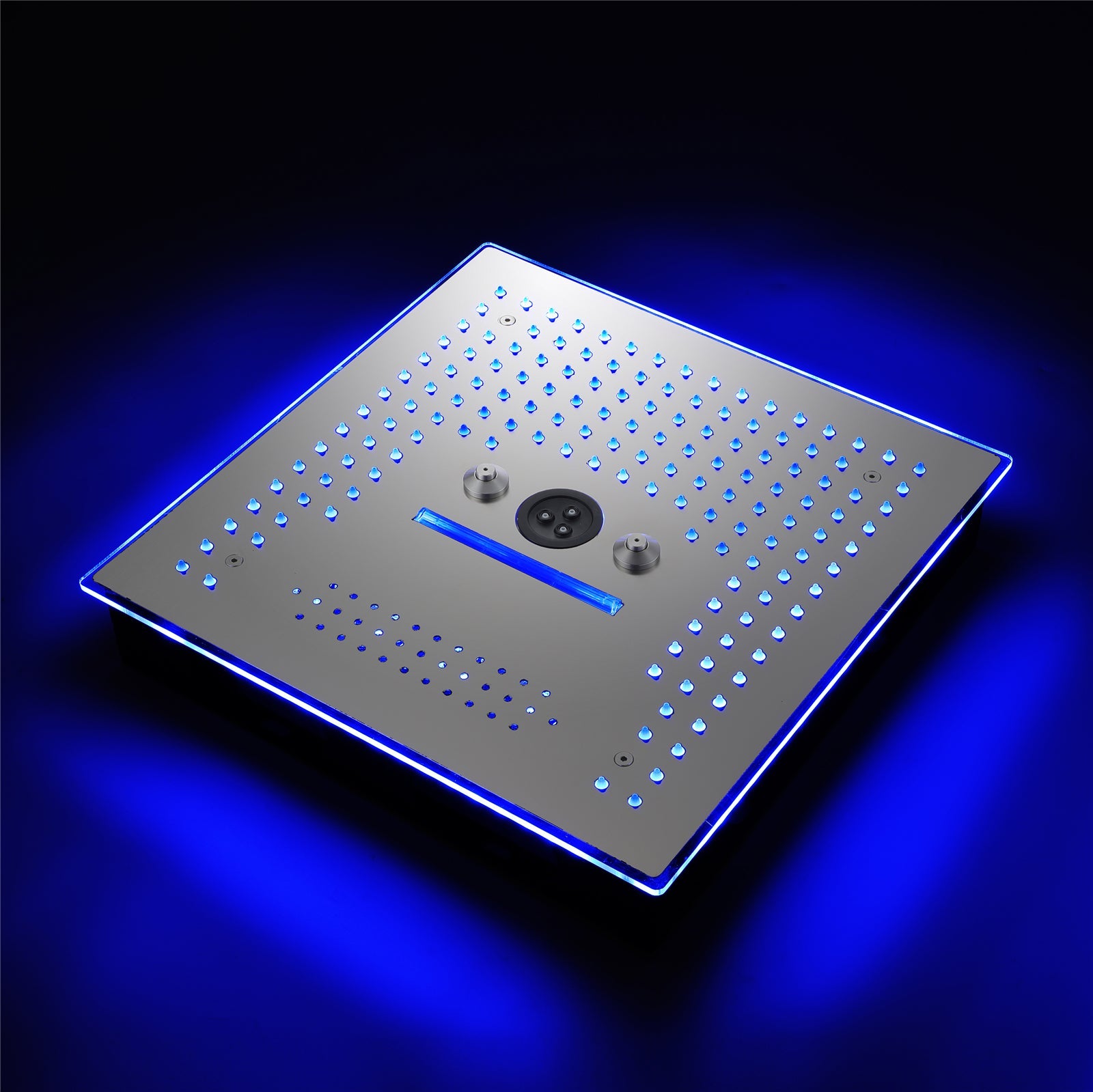 The shower head, boasting a generous 20 x 20-inch size, delivers a refreshing rainfall and waterfall experience. The system is enhanced with 64 LED lights and a Bluetooth speaker, integrated into the showerhead, to create an immersive atmosphere. The LED lights and music can be controlled via the remote panel, offering the flexibility to turn them on or off as you shower.