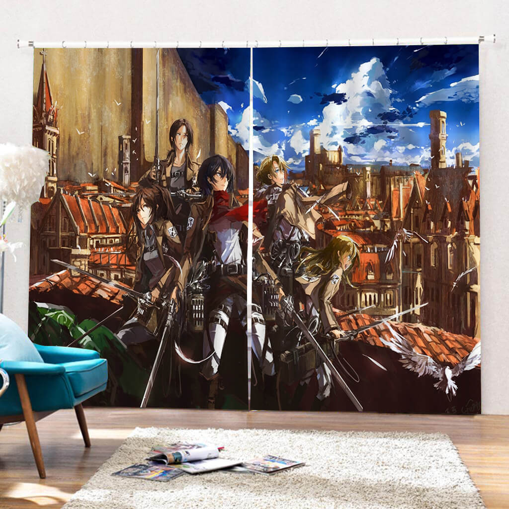 2 Panels Attack on Titan Curtains Cosplay Blackout Window Drapes