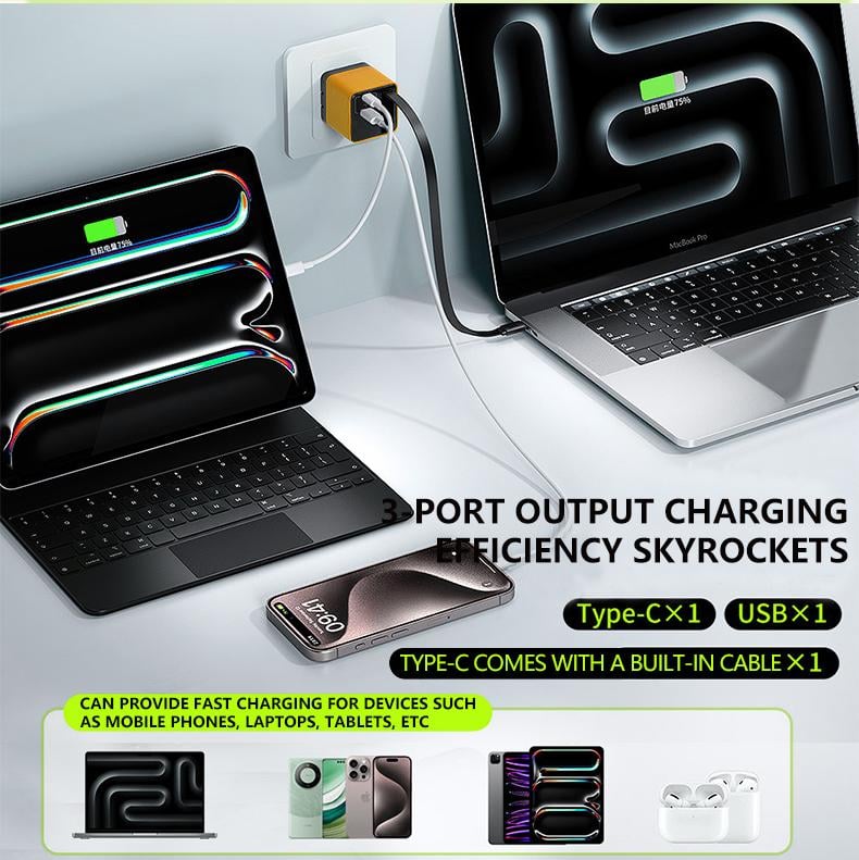 Can charge three devices simultaneously.With current charging power and continuous output improving charging efficiency🌟