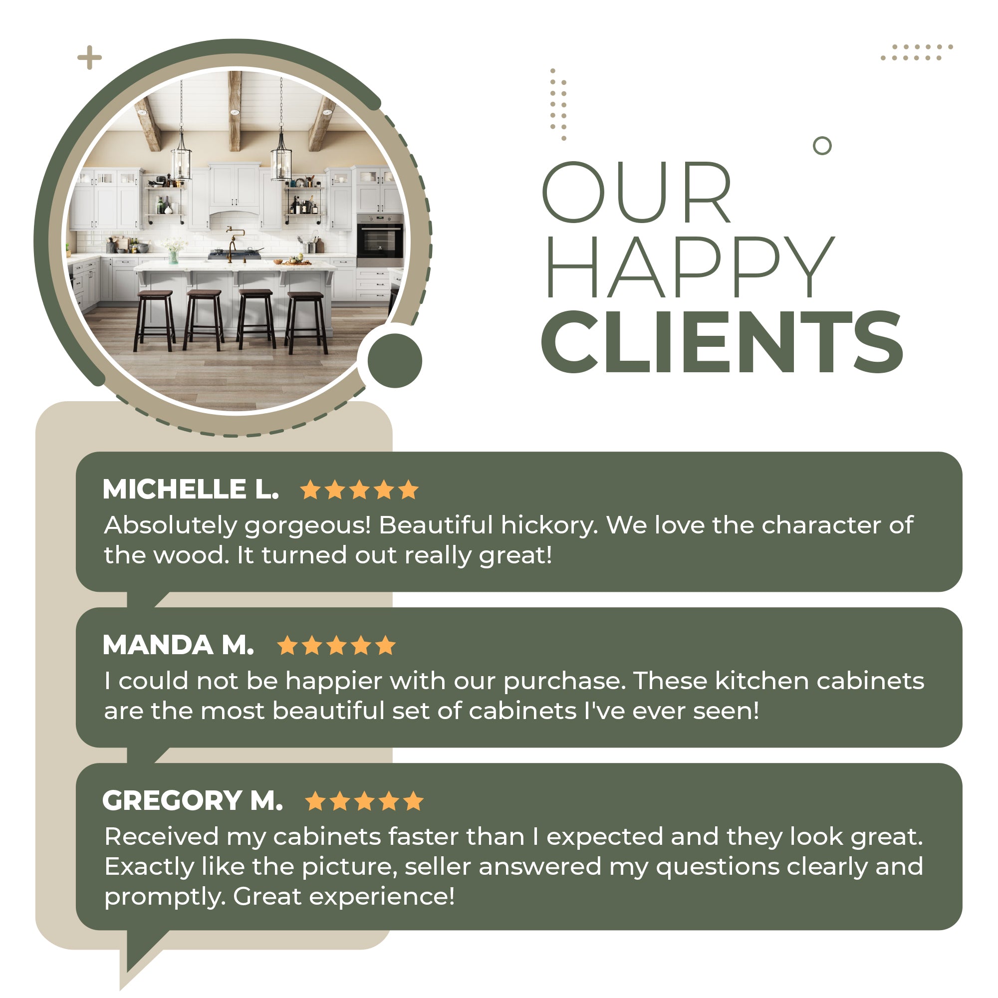 Our semi-custom cabinets have all the needed parts to outfit your bathroom or kitchen so please don't hesitate to reach out with any questions you may have.