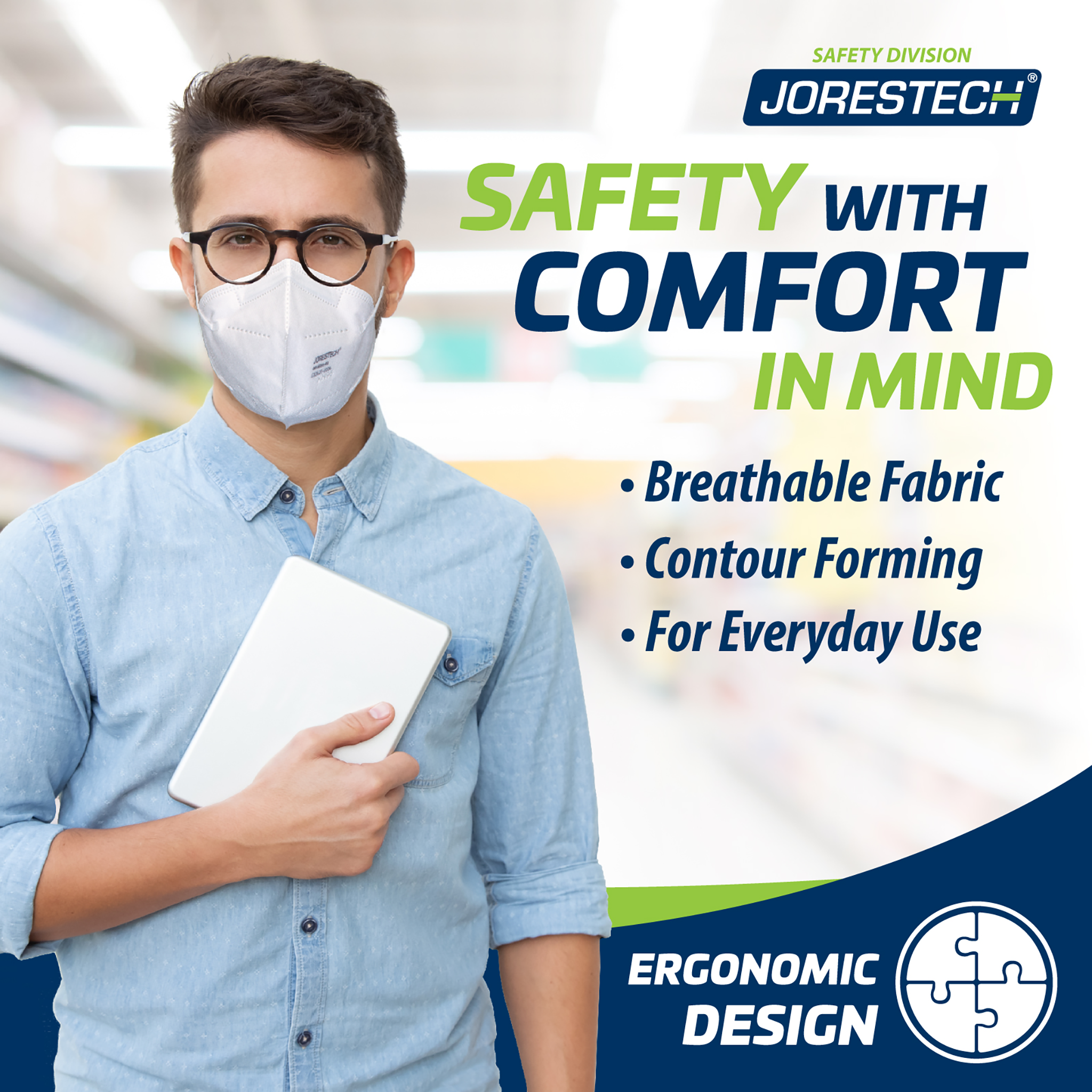 This face mask is made to protect you against airborne particles and pollutants in a comfortable and lightweight manner. It achieves an outstanding level of filtration of >95% with its multi-layered design, made up of two layers of non-woven fiber and two of a melt-blown fabric. Additionally, a gentle skin-friendly inner layer absorbs moisture from the breath for a cooling and breathable effect. This mask offers great adaptability thanks to a number of adjustable features, delivering comfortable protection for all-day wear.