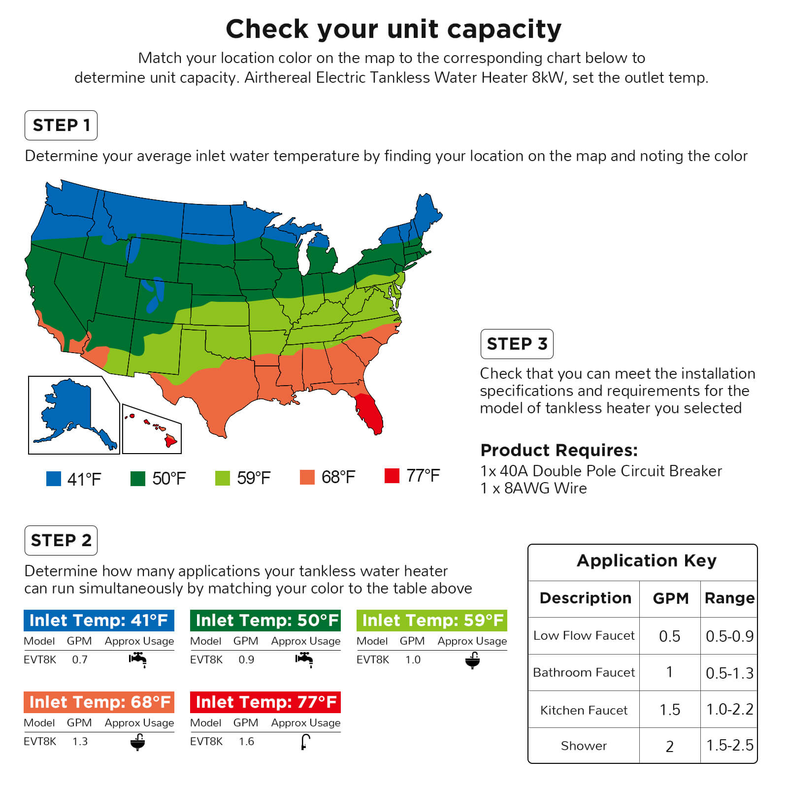 Important Note: In order to install 8kW Electric Tankless Water Heater, it will require a 240 Voltage, 40 AMP circuit breaker. Please check to confirm that your breaker panel meets these specifications before purchasing.