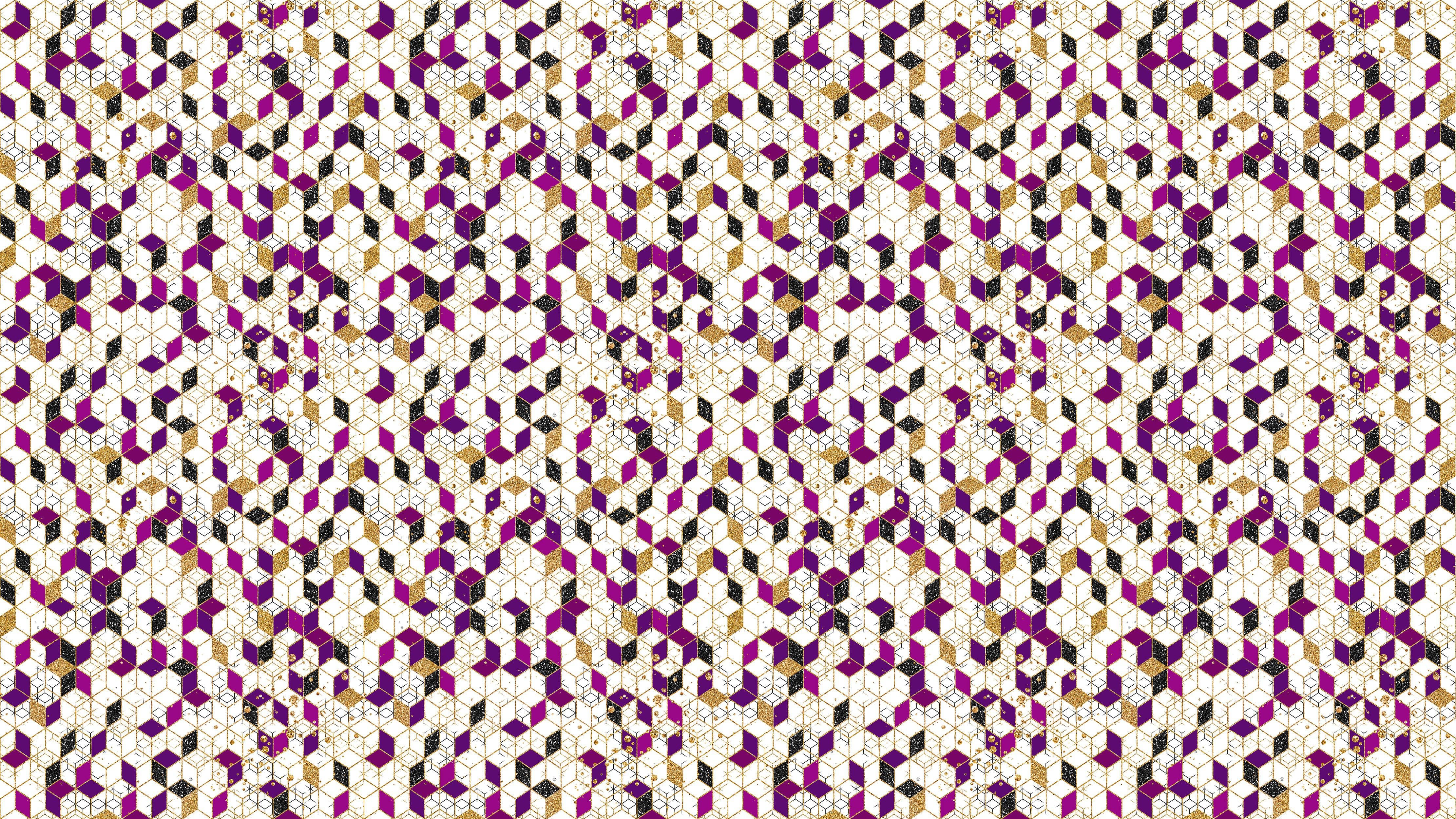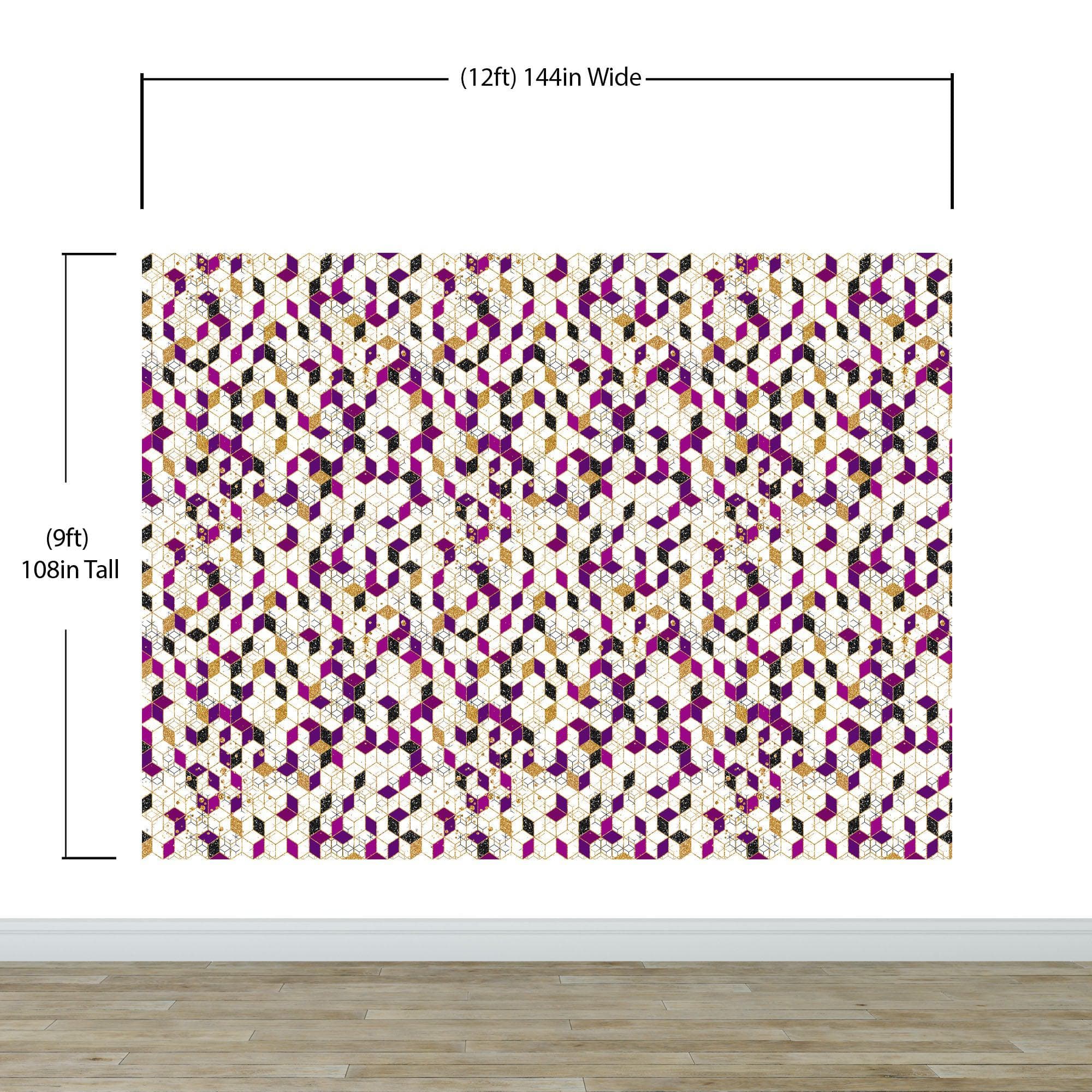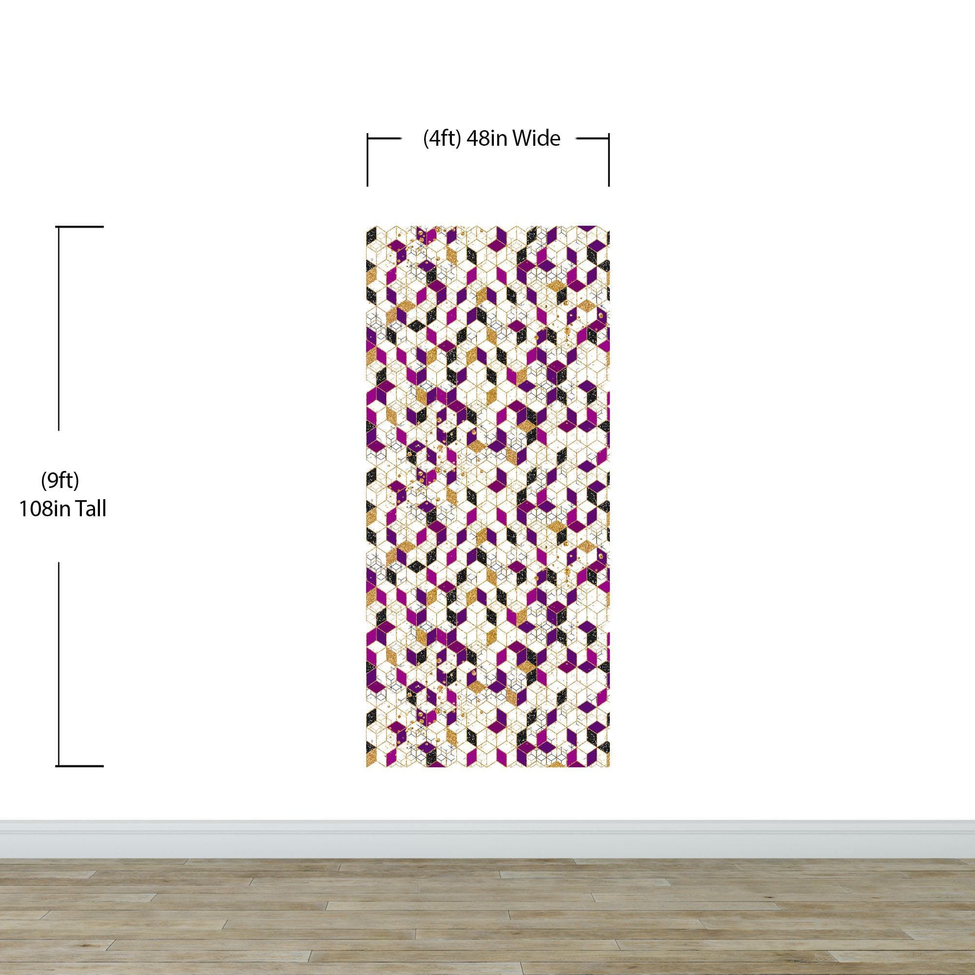 Abstract 3D Cube Shape Wall Mural. Geometric Cube Minimalistic Purple and Gold Peel and Stick Wallpaper. #6380