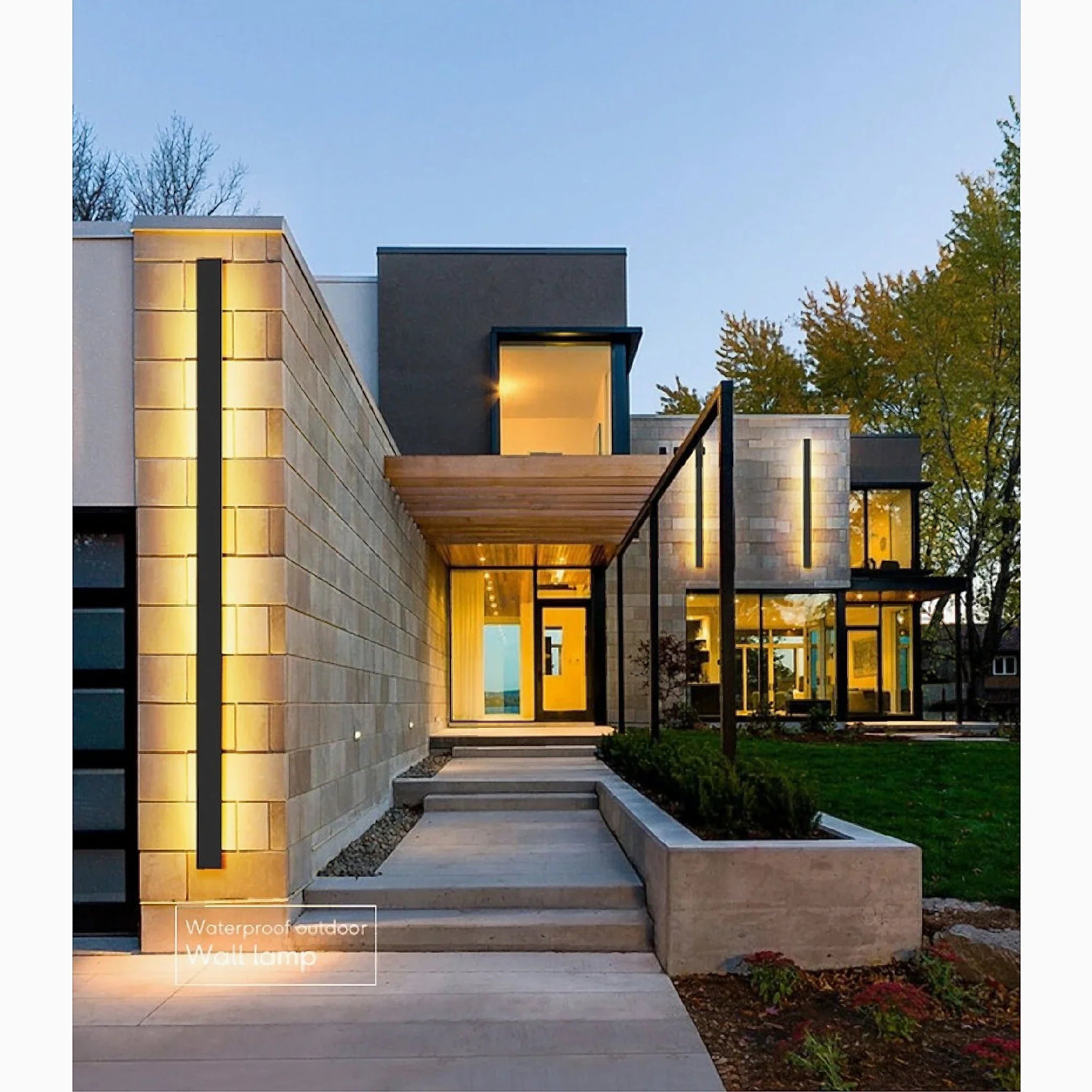 Designed for resilience and style, this modern Black Outdoor LED Wall Lamp is built to withstand the elements without compromising its sleek look. Crafted from antirust aluminum, it brings a bold statement to porches, villa entrances, or garden walls. Its extended form captures an architectural presence, casting a gentle, focused glow that guides without overwhelming.