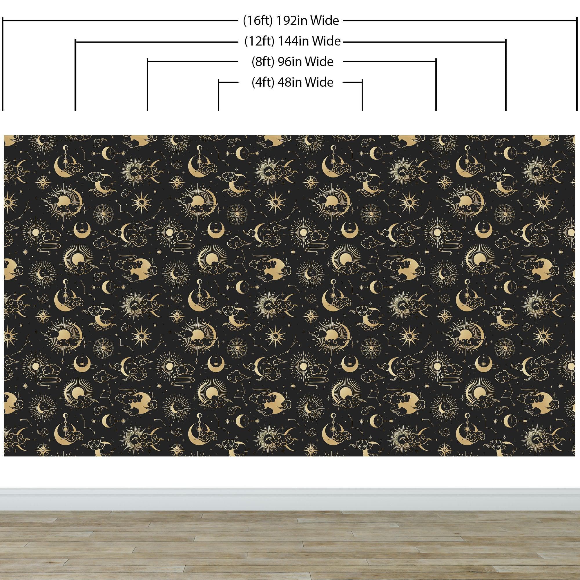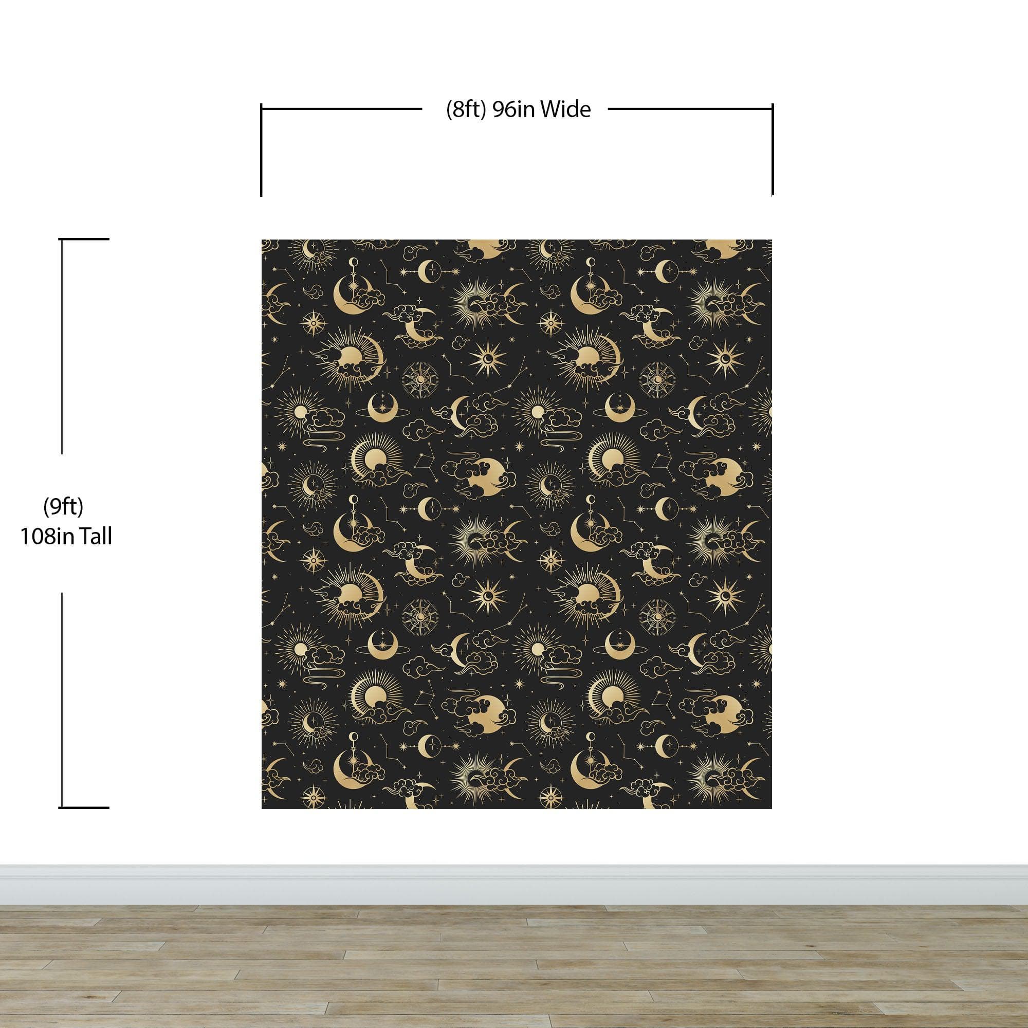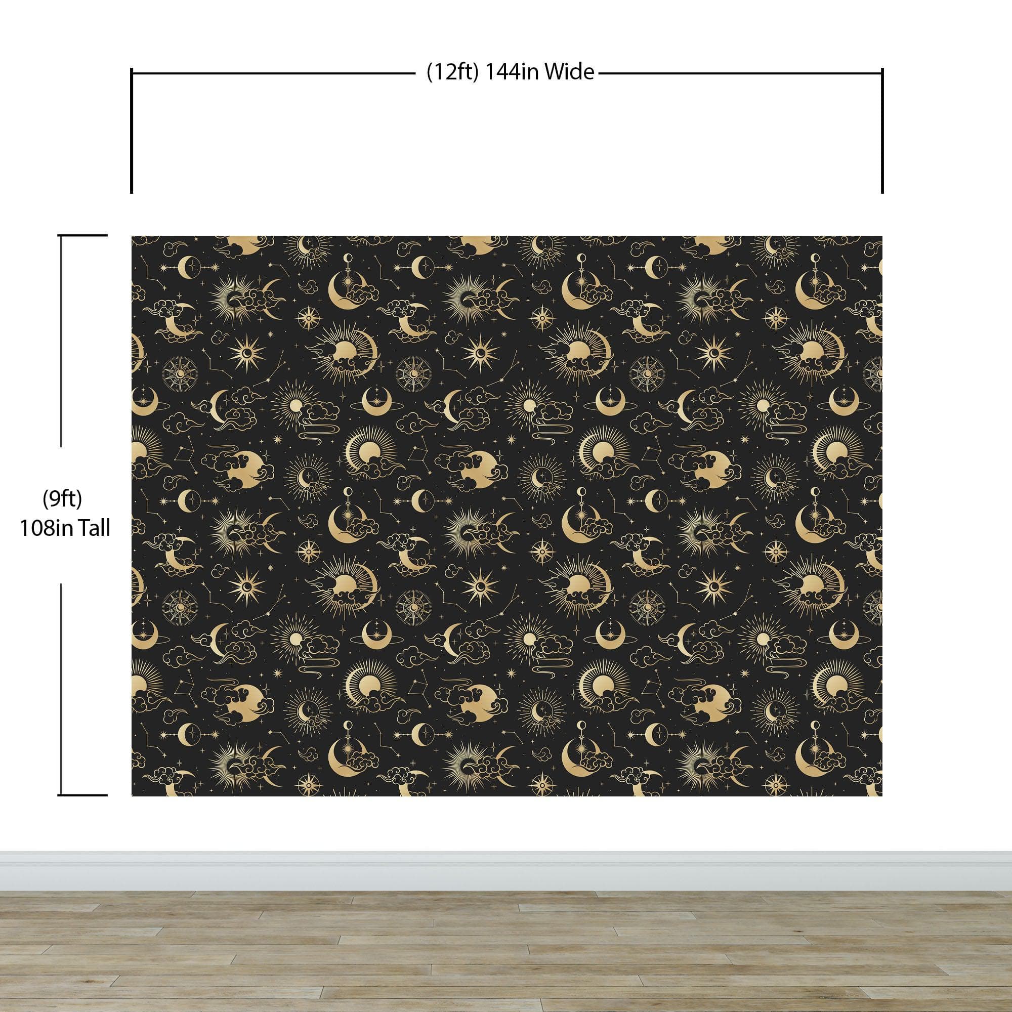 Astronomy Pattern Peel and Stick Wallpaper. Stars, Sun, Moon and Cloud. Removable Wall Mural #6208