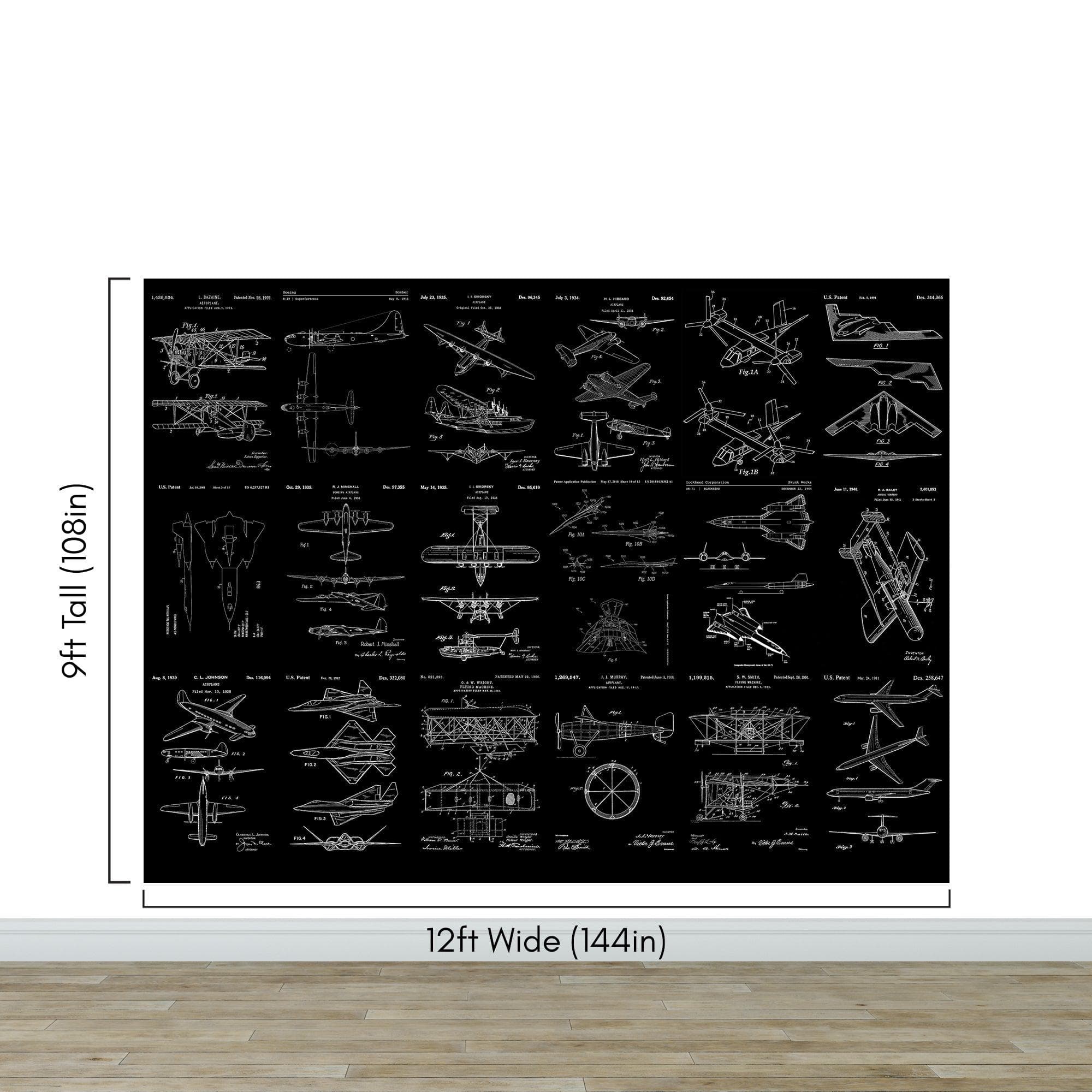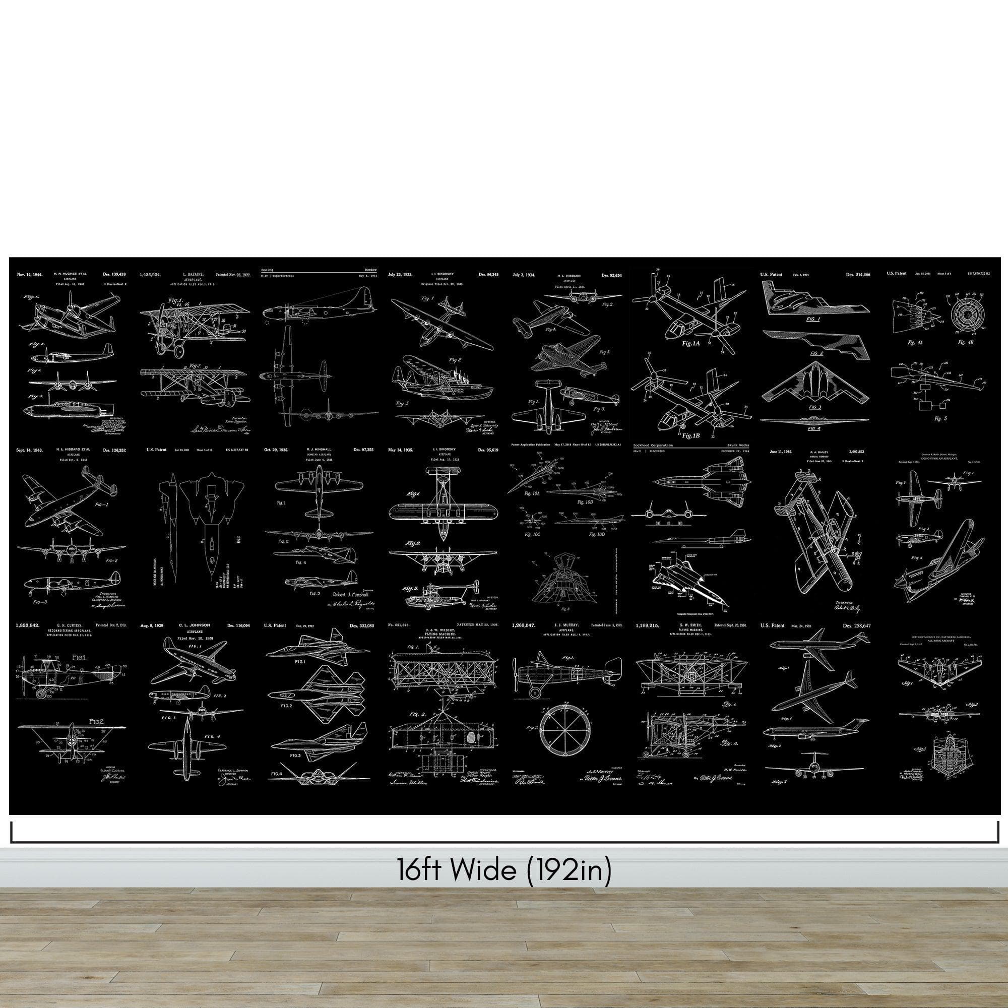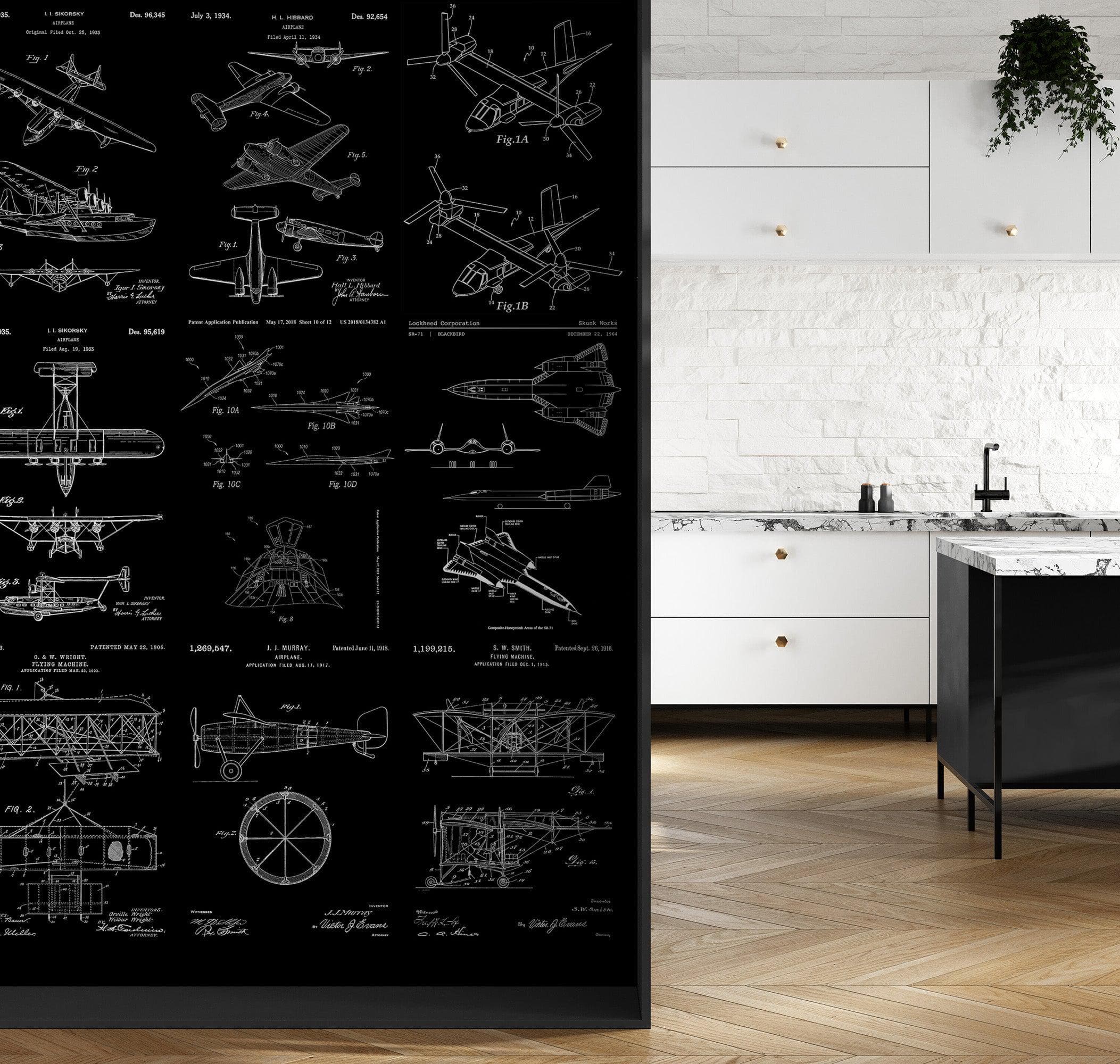 Aviation Wallpaper Mural. Featuring Military Jet and Airplane Patent Designs. #6732