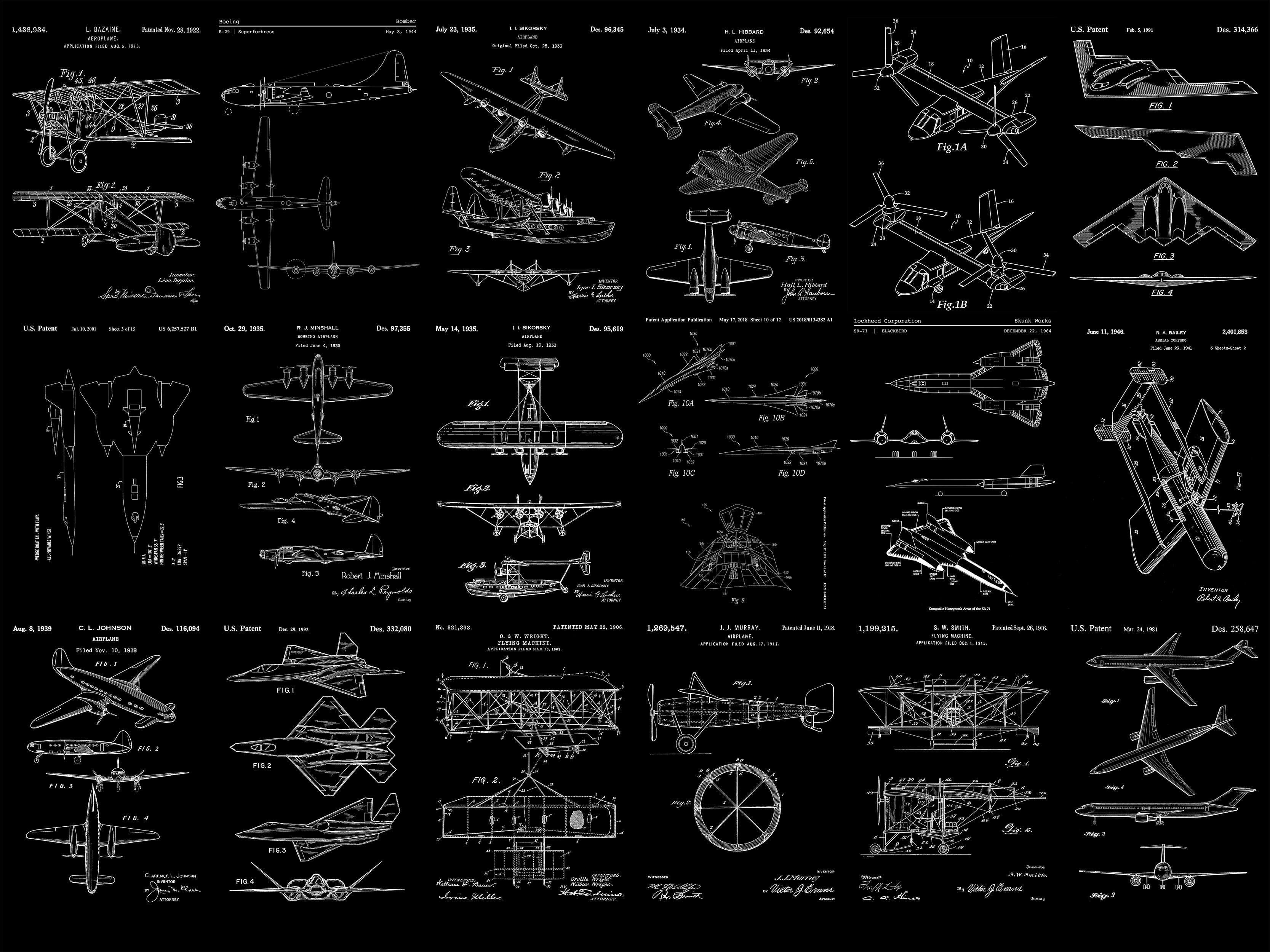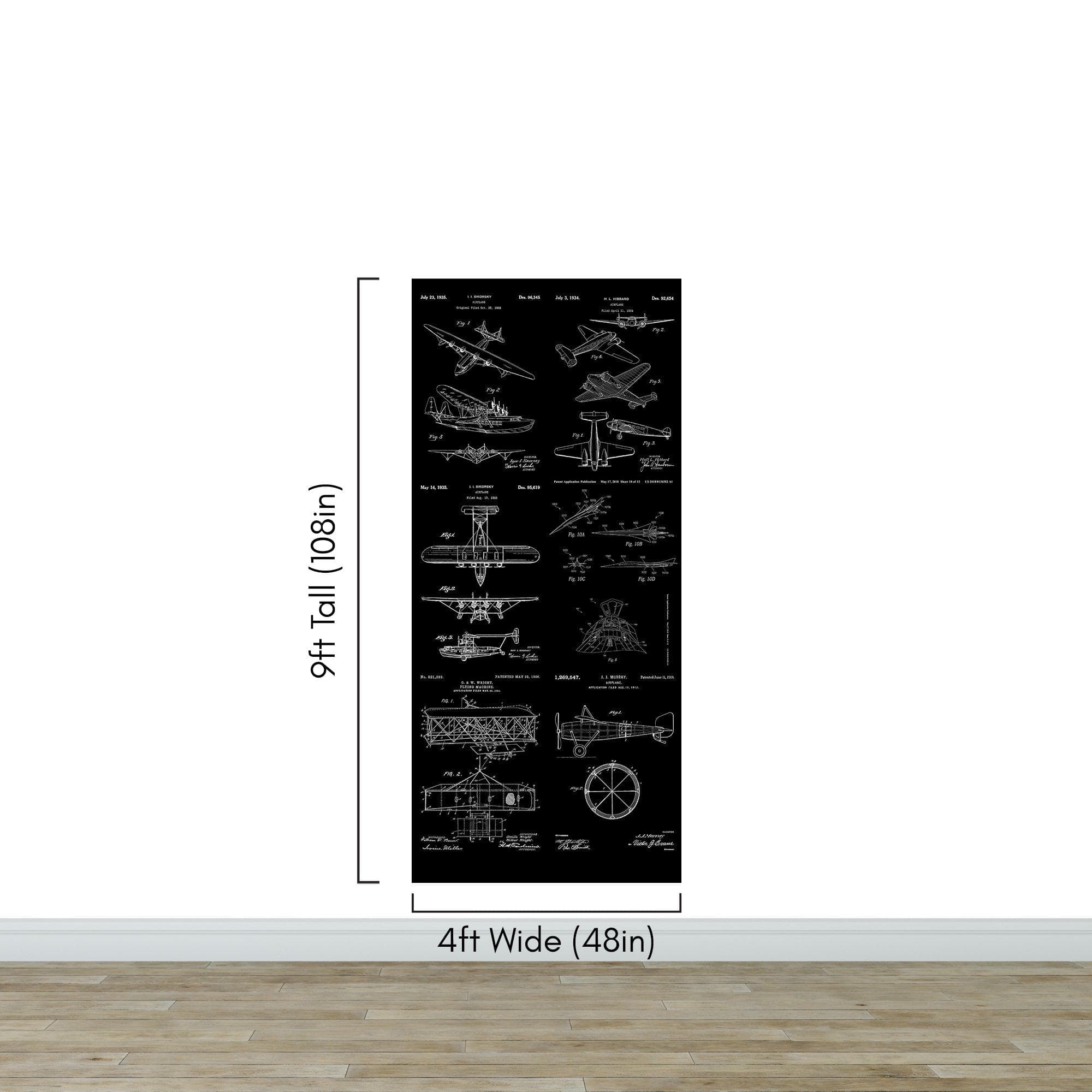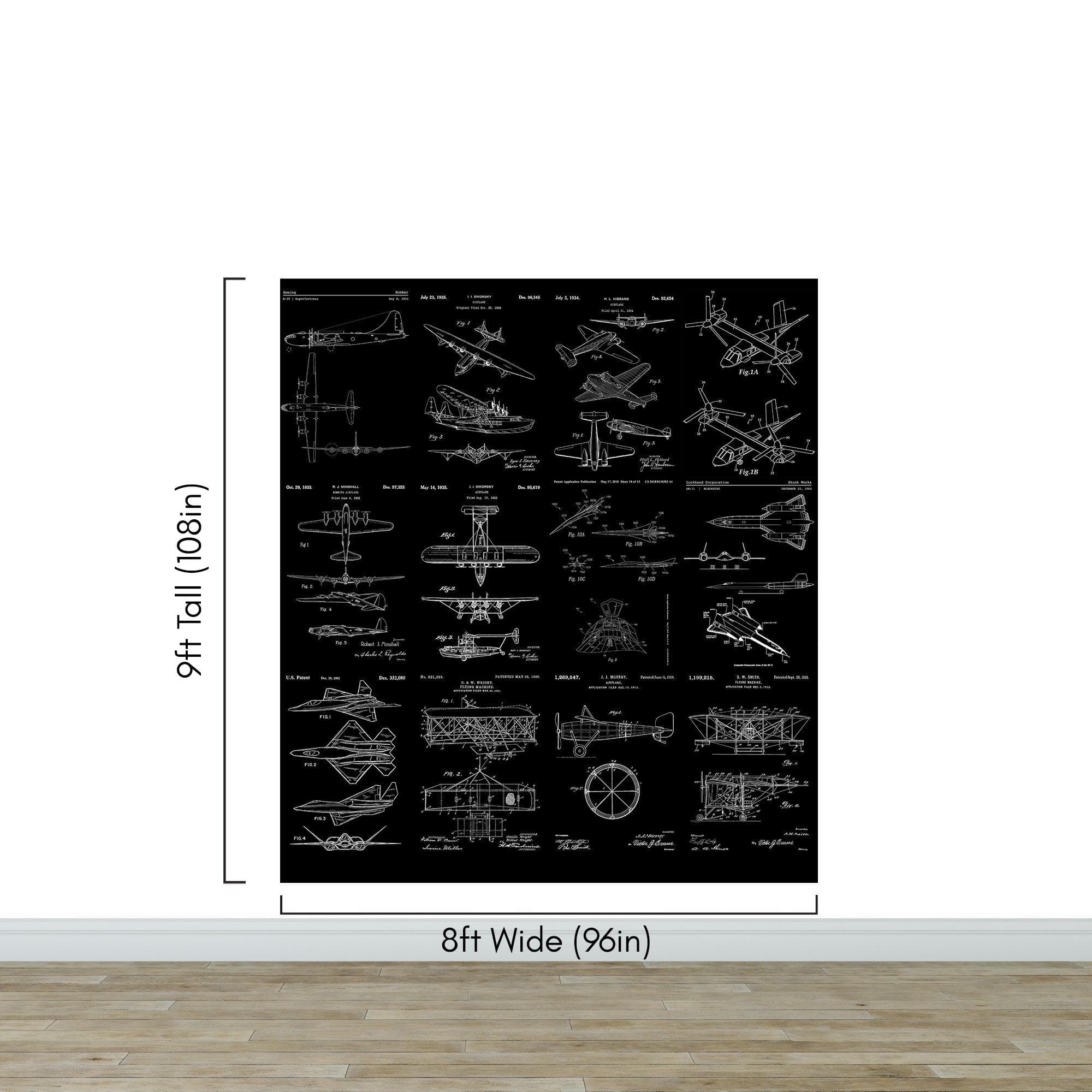 Aviation Wallpaper Mural. Featuring Military Jet and Airplane Patent Designs. #6732