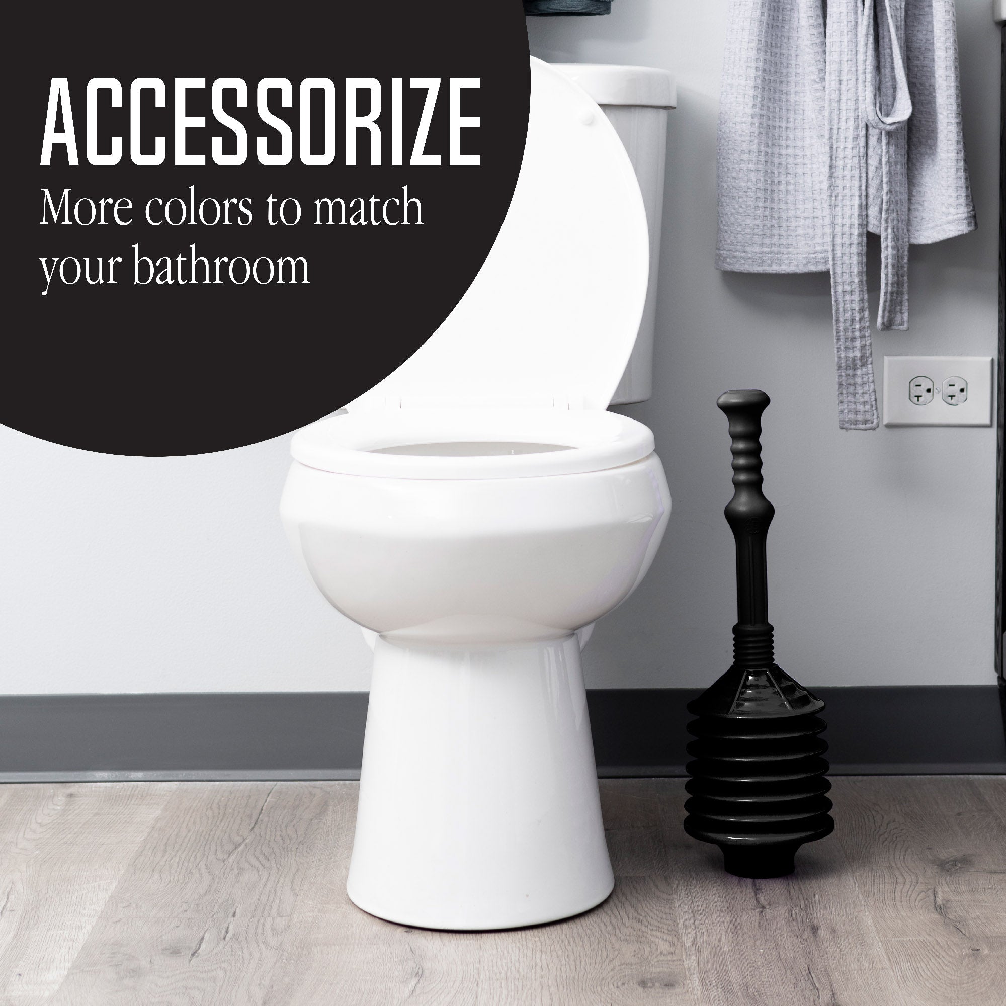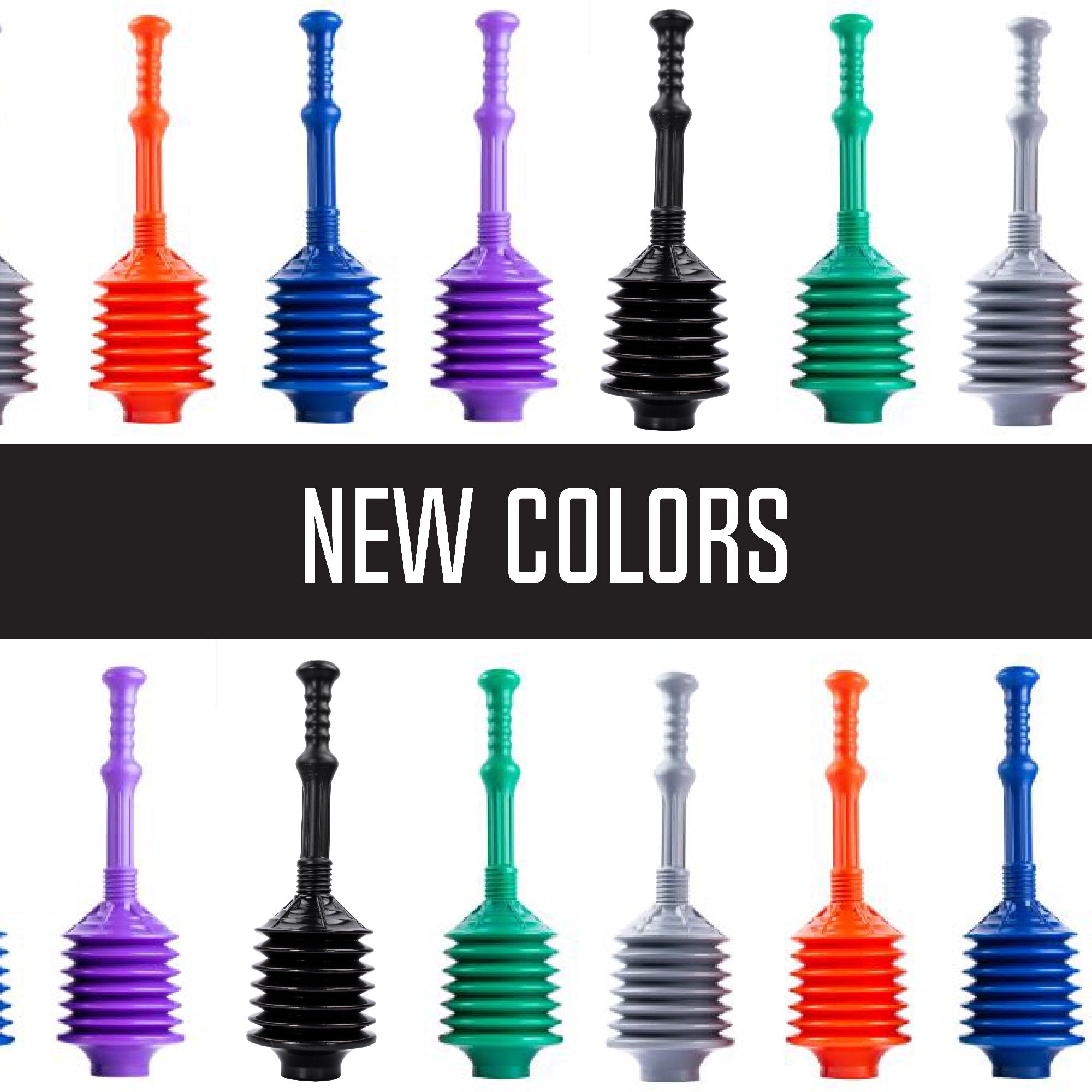 Plungers work by pushing water towards the clog. Standard plungers can only displace between 2 and 4 cups of water at a time, but our accordion design allows for a much greater capacity than other toilet bowl plungers, resulting in a more forceful push. Using a back-and-forth motion while plunging will provide a highly concentrated stream of air and water directly where it’s needed while minimizing splash back. The firm plastic of the bellows easily bounces back for a quick, effective plunge.