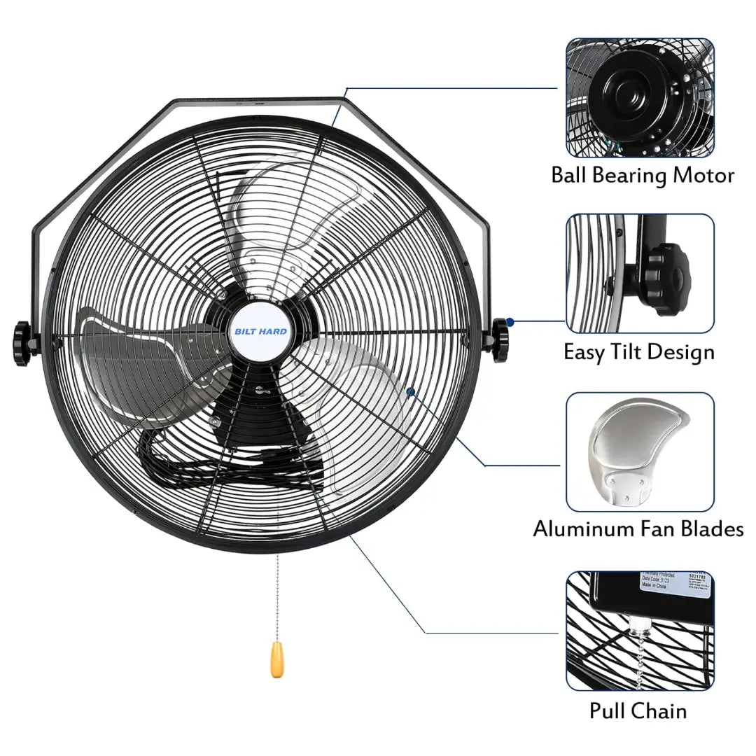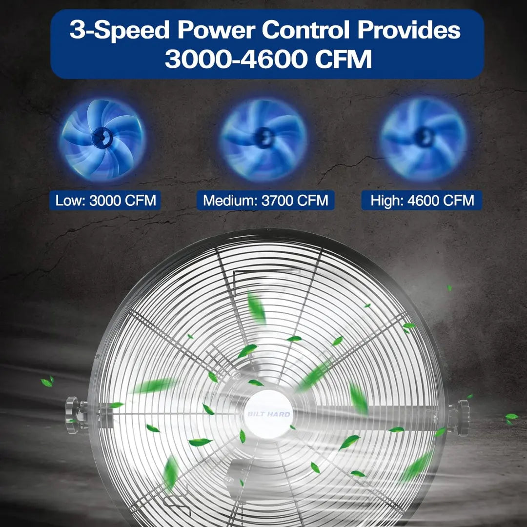 BILT HARD 20" Industrial Wall Mount Fan: 4600 CFM, 3-Speed High Velocity, Heavy-Duty Metal Barn Fan, UL Listed