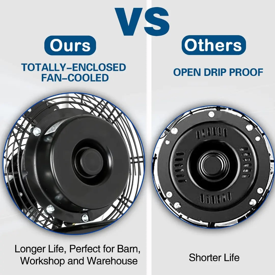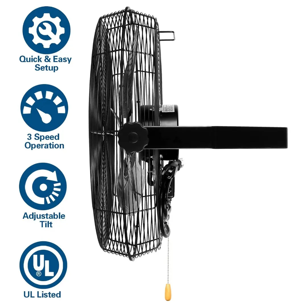• 【Durable and Sturdy】: Featuring a fully enclosed ball-bearing motor and powder-coated steel construction, protects the motor from workshop debris and all other dust. With aluminum fan blades; OSHA compliant grilles; 6 ft. grounded three-prong power cord; our heavy duty commercial wall fan is a great unit for workshops, basements, and garages. Not graded for outdoor use.