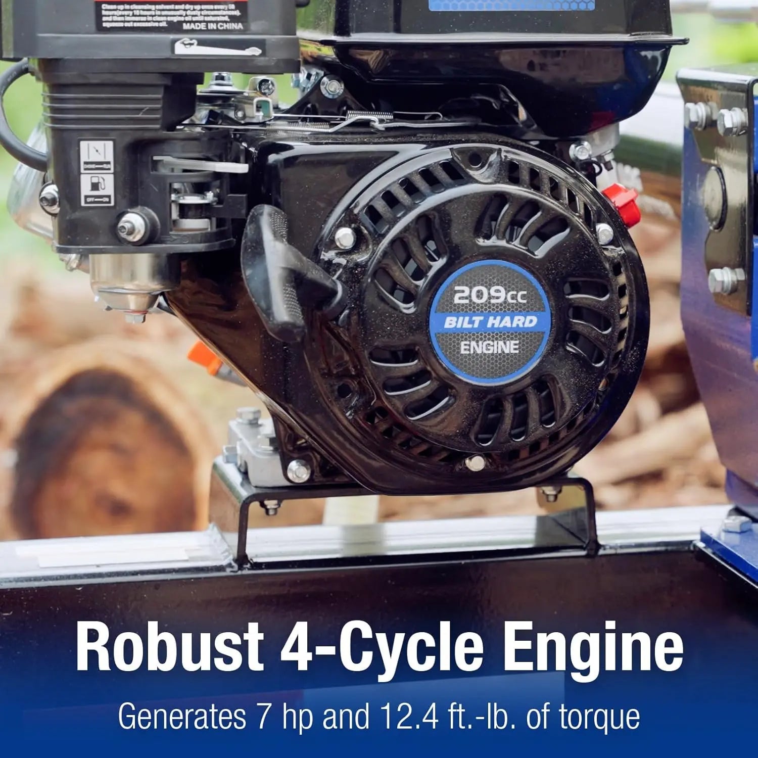 This gas-powered log splitter delivers an impressive 20 tons of splitting force, powered by a 7 HP 209cc single-cylinder OHV engine that produces 12.4 ft.-lb. of torque. This strong performance enables you to split logs quickly and efficiently.
