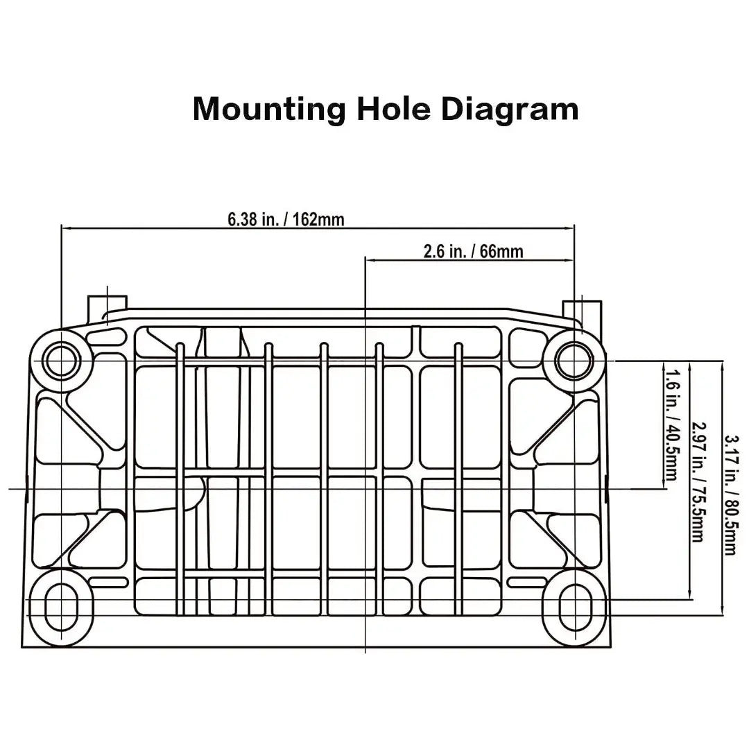 Dive into the intricate details of our engine. The shaft boasts a 3/4" diameter, extending 2-3/8" in length. The end is thoughtfully tapped with 5/16"-24 UNF threads, while a 3/16" keyway enhances precision. The mounting pattern spans 6.40" in length and 2.95" to 3.17" in width, offering versatility for various applications.