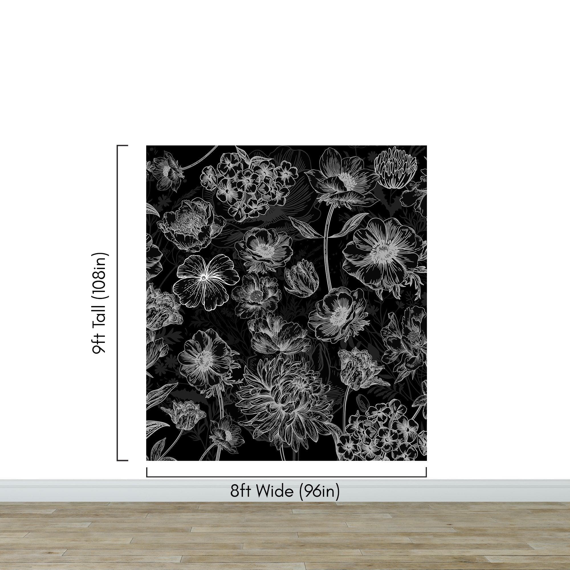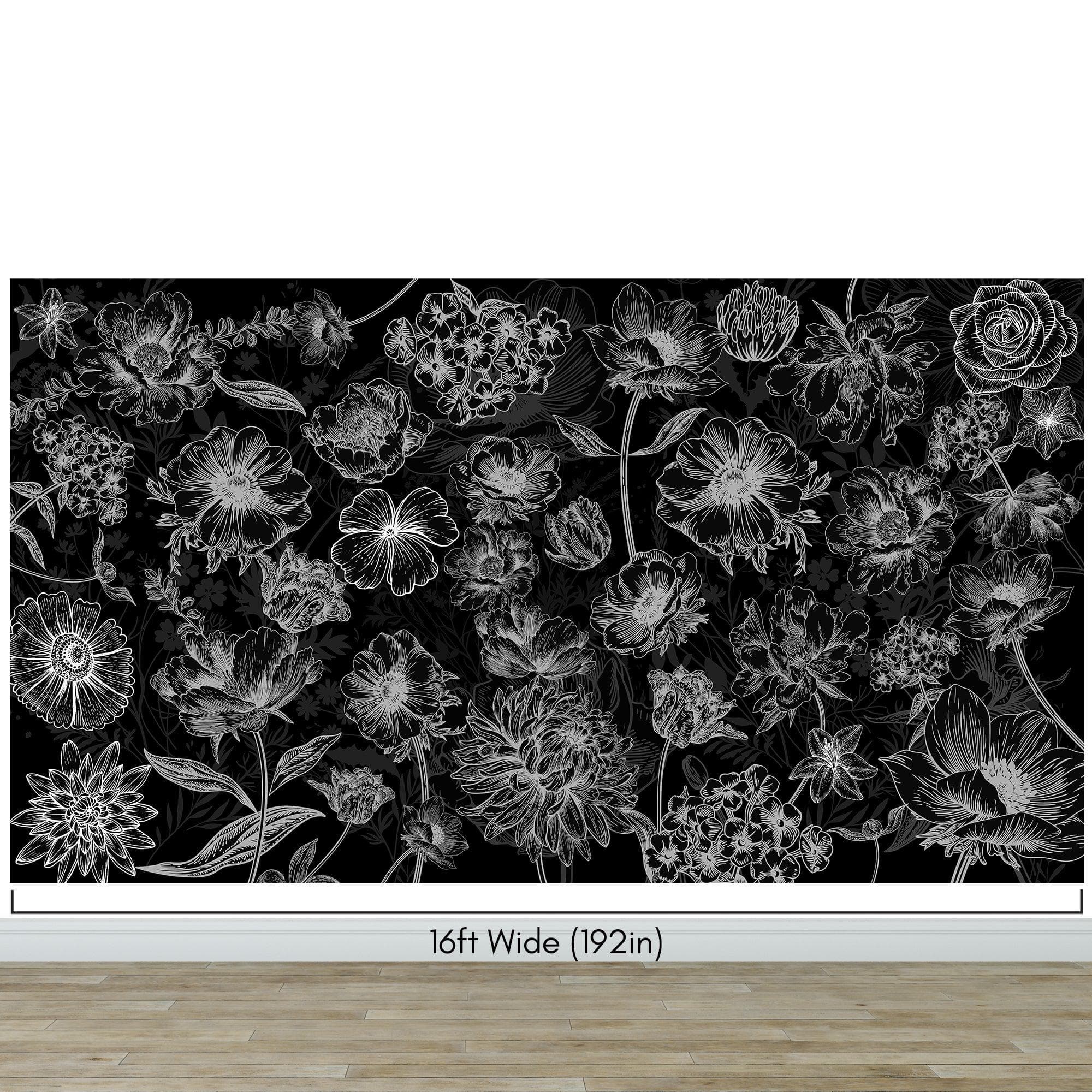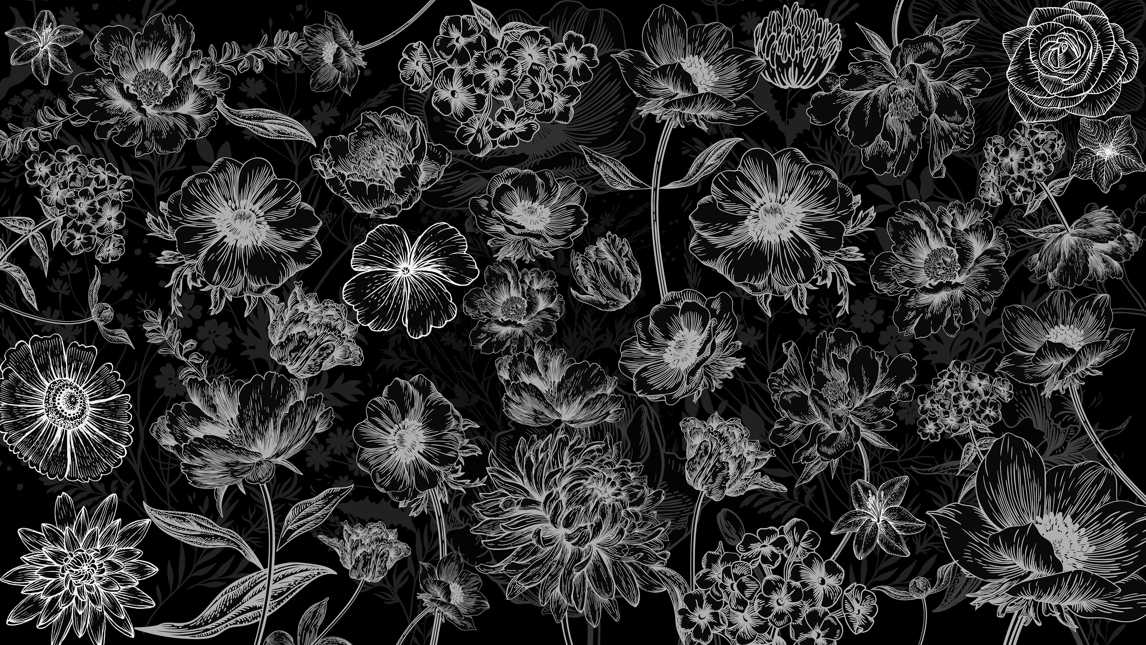 Black Floral Background, Black and White Flower Wallpaper Mural. #6677