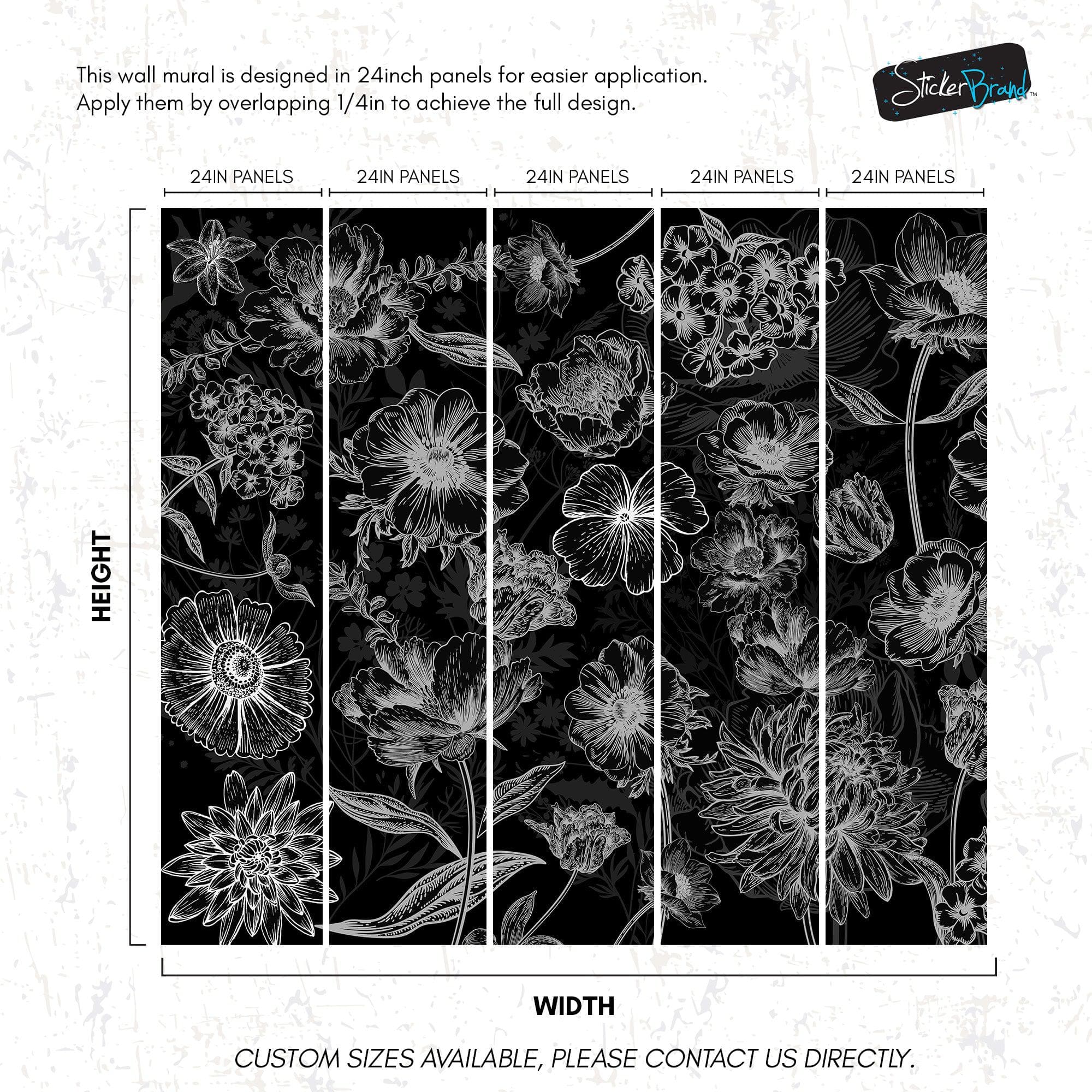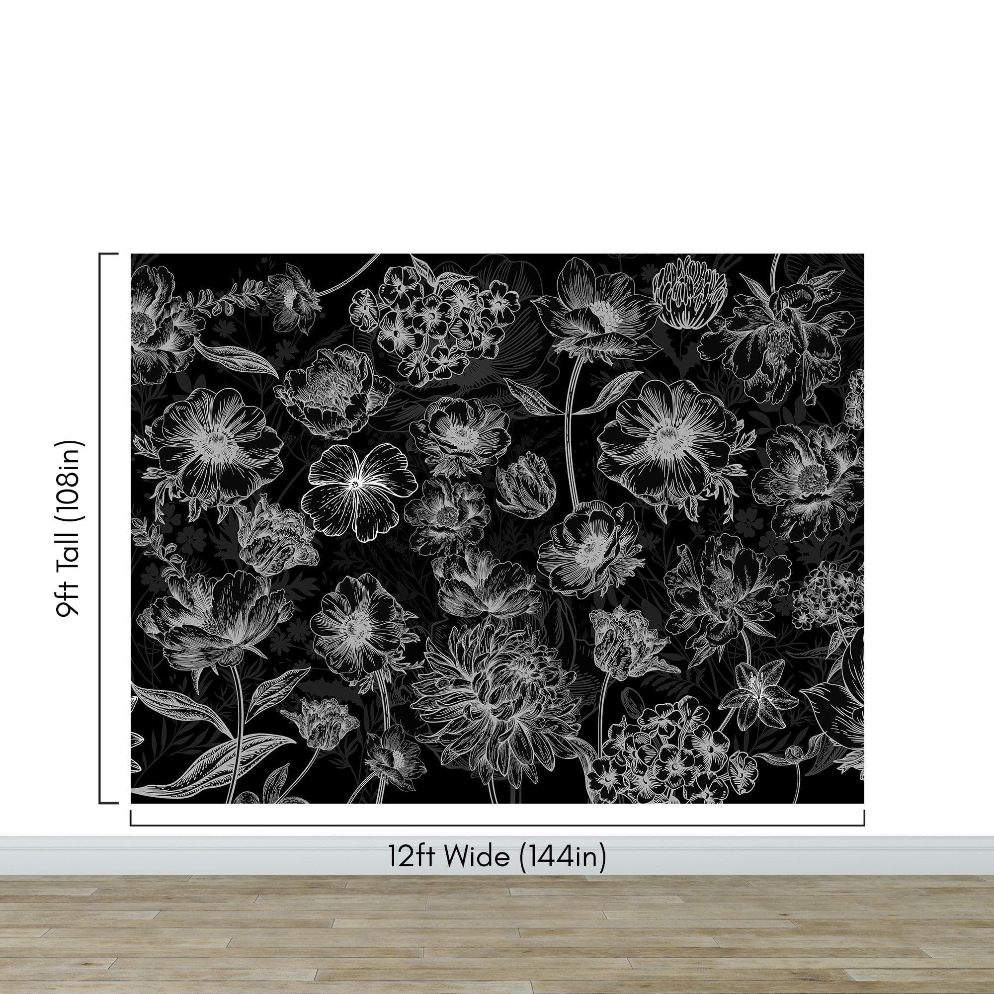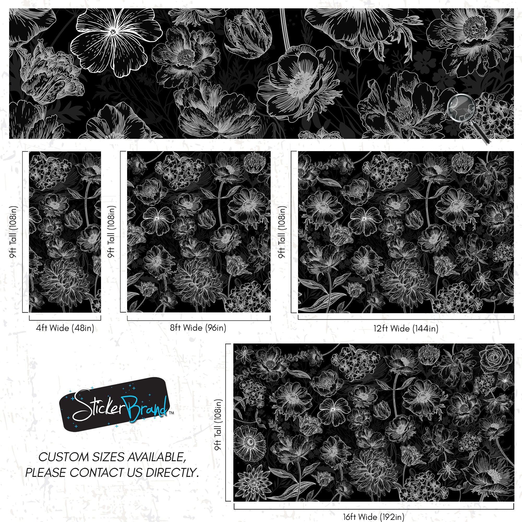 Black Floral Background, Black and White Flower Wallpaper Mural. #6677