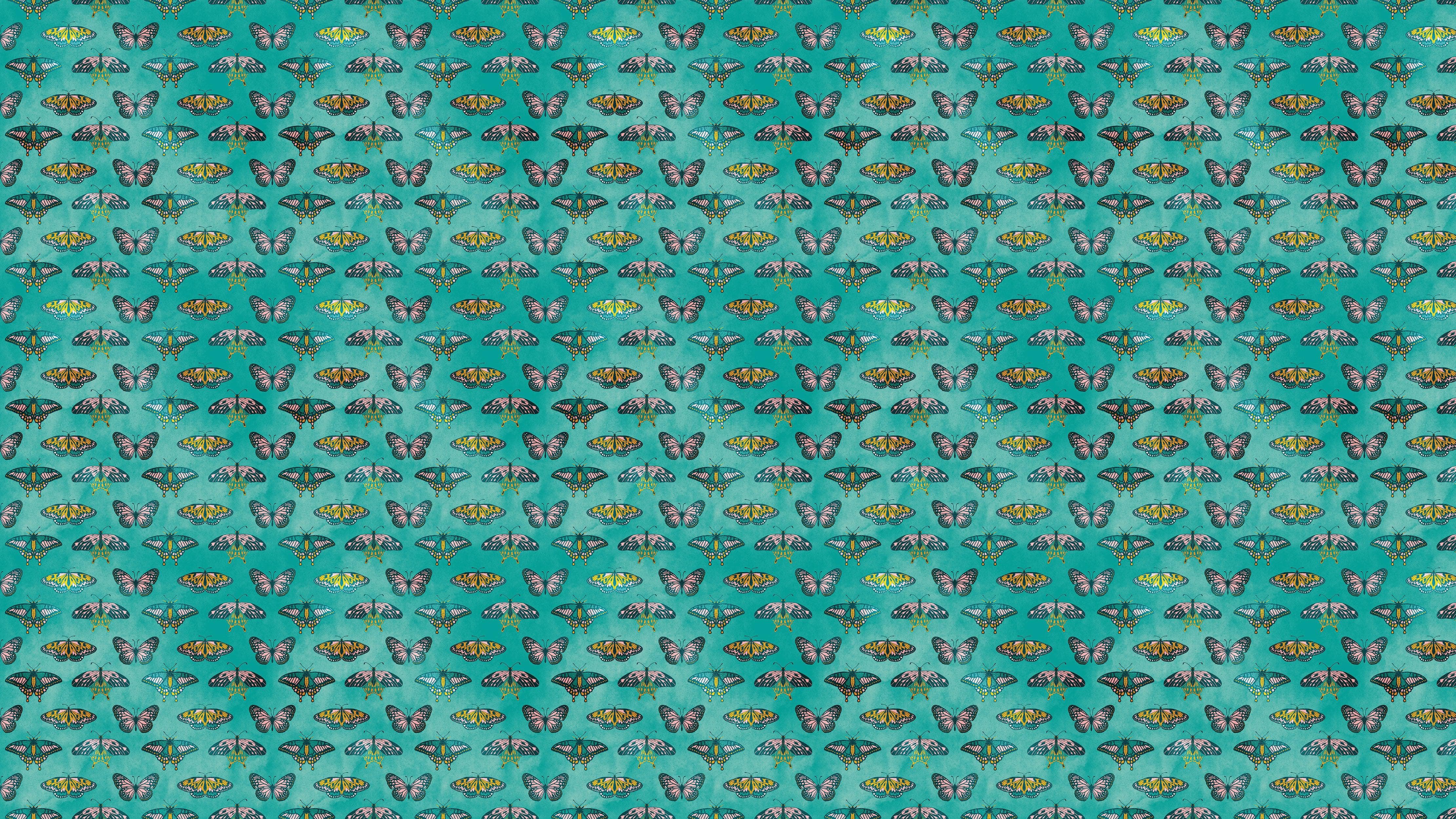 Butterfly Pattern on Green Background Wall Mural. Retro Green, Pink and Gold Color Illustration Design. Bedroom, Nursery, Home Decor. Peel and Stick Wallpaper. #6440