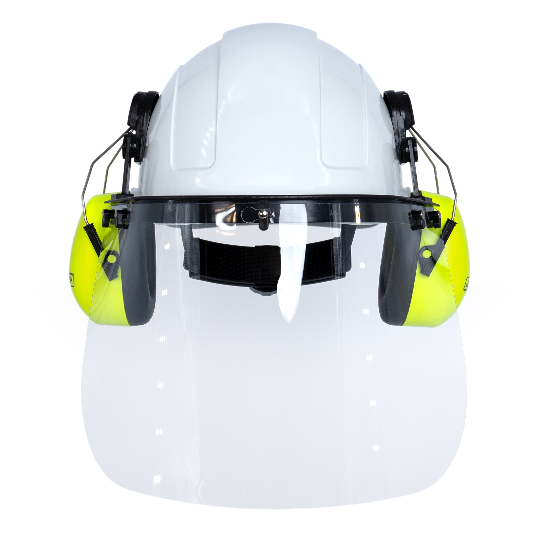 Keep yourself safe on the job with our premium hard hat and earmuffs and face shield combo kit. Featuring a cap-style hard hat, earmuffs, and a plastic face shield, this kit provides full coverage to your head, ears, and face. We've designed this hard hat with advanced adaptability, retractable features, and universal mounting, so you can stay comfortable and protected all day long.