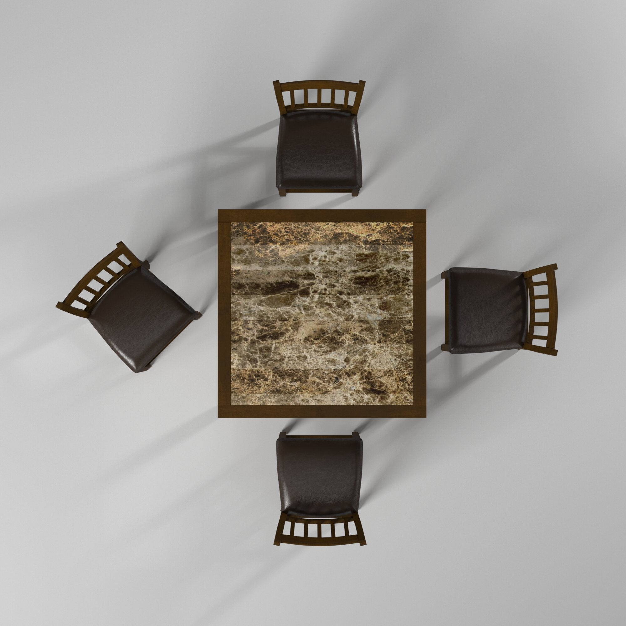 Good things come in small packages. Capitola combines an Espresso finish with a Faux Marble top and Faux Leather on the side chair. Sturdy, solid construction on both the table and chairs, the group is an incredible value. This 5-piece set is a great way to make a statement without breaking the budget.