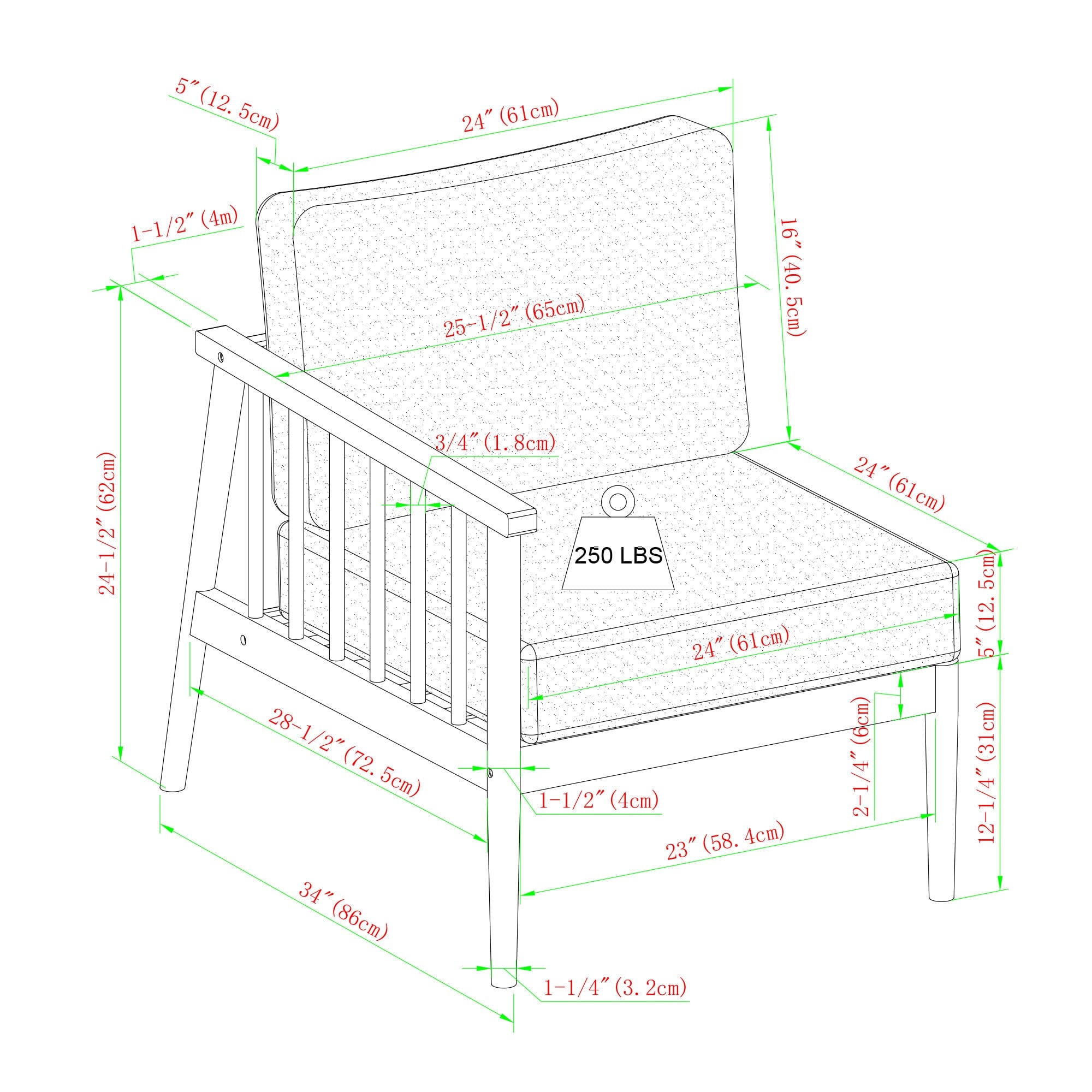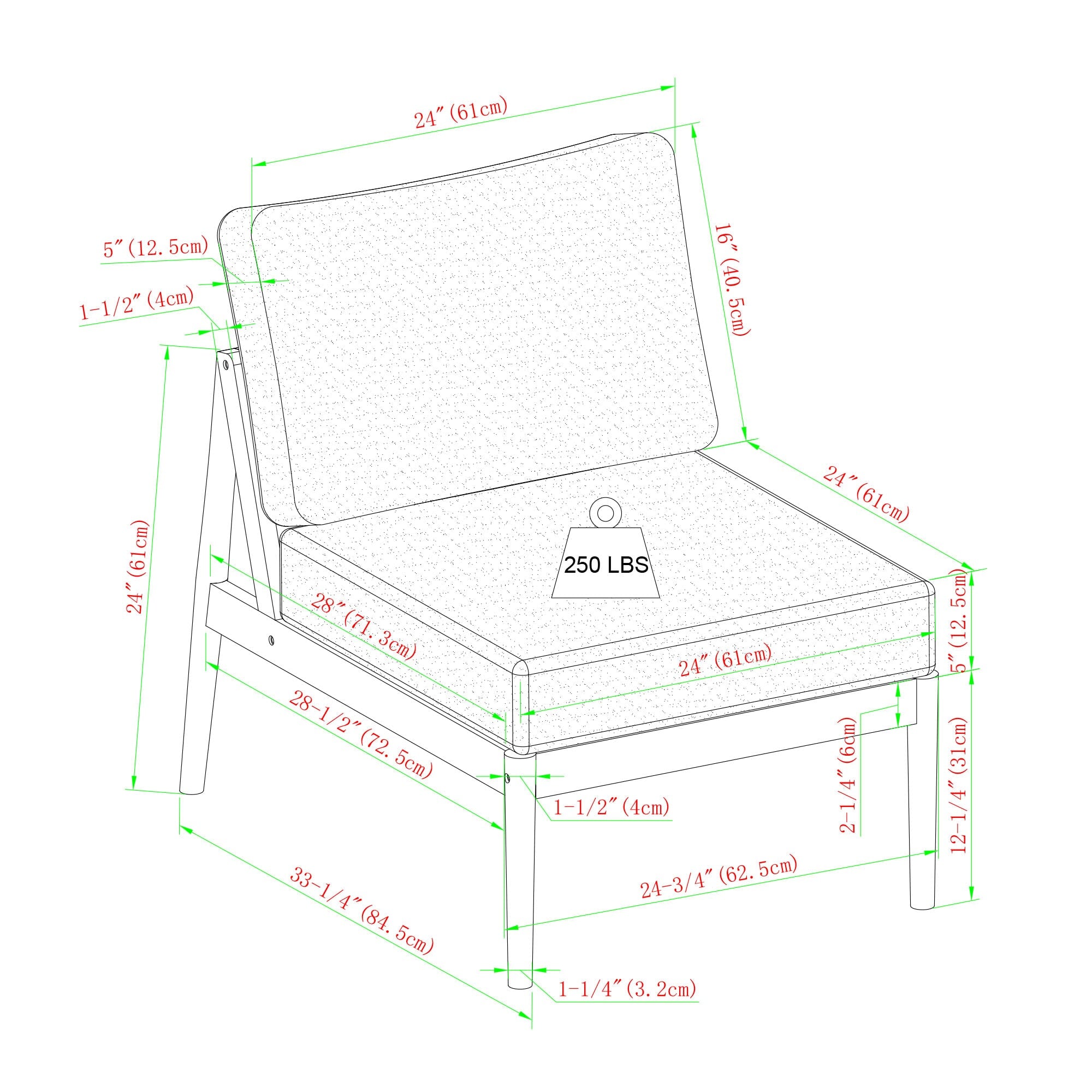 Armless Sectional: 33.25" H x 24.75" L x 33.25" W 33 LBS