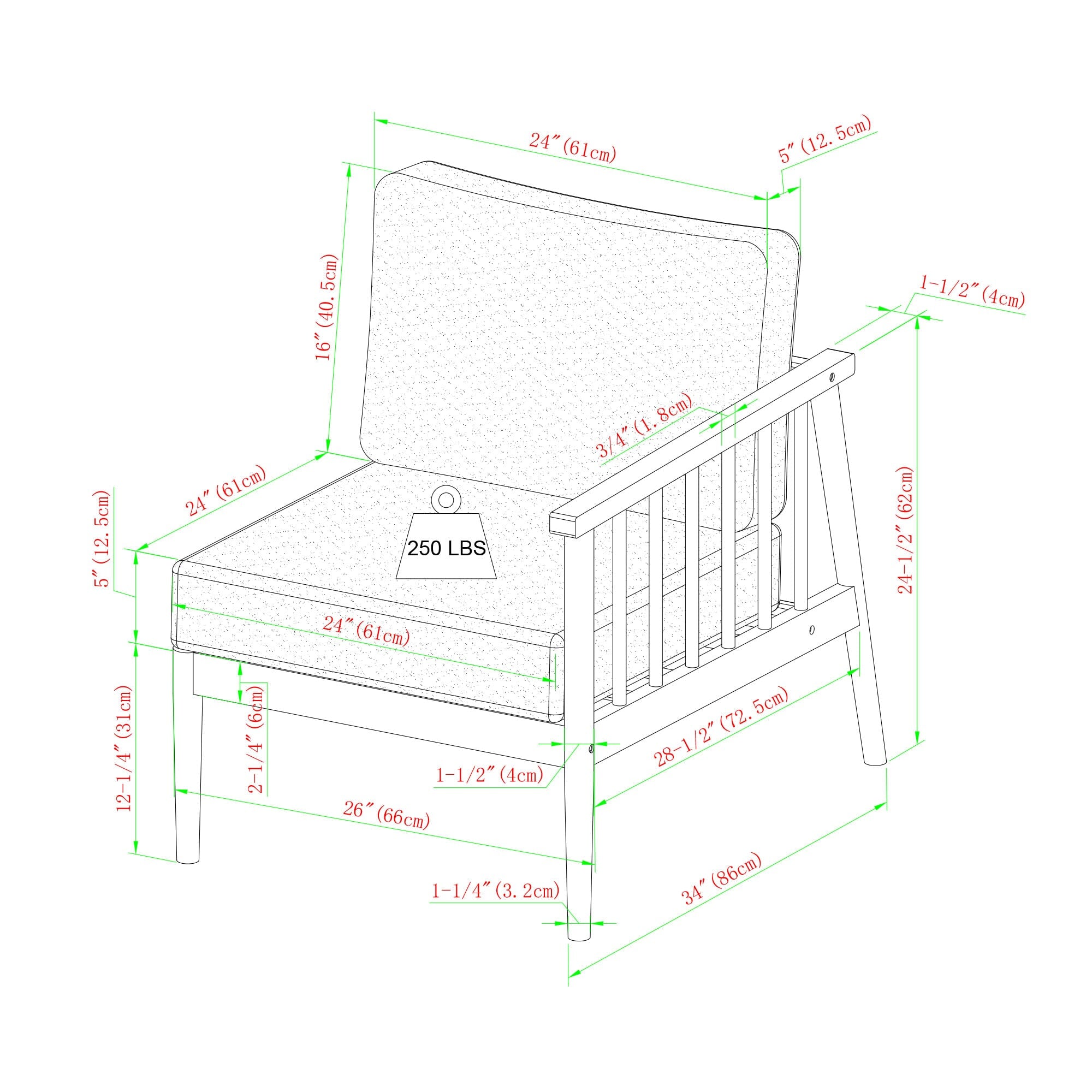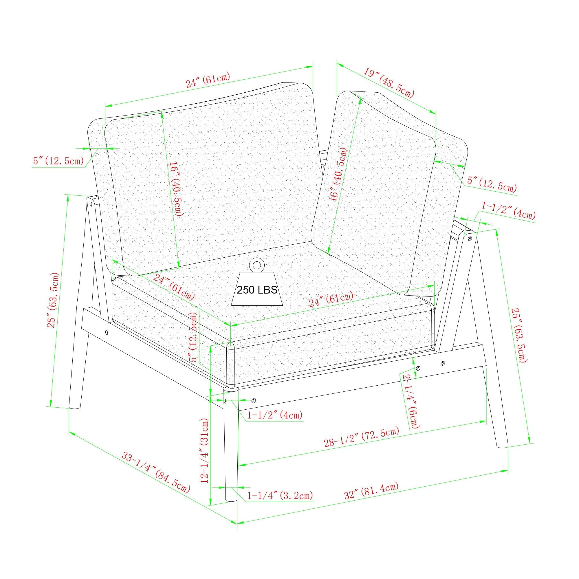 Right Arm Sectional: 33.25" H x 26" L x 34" W 34 LBS