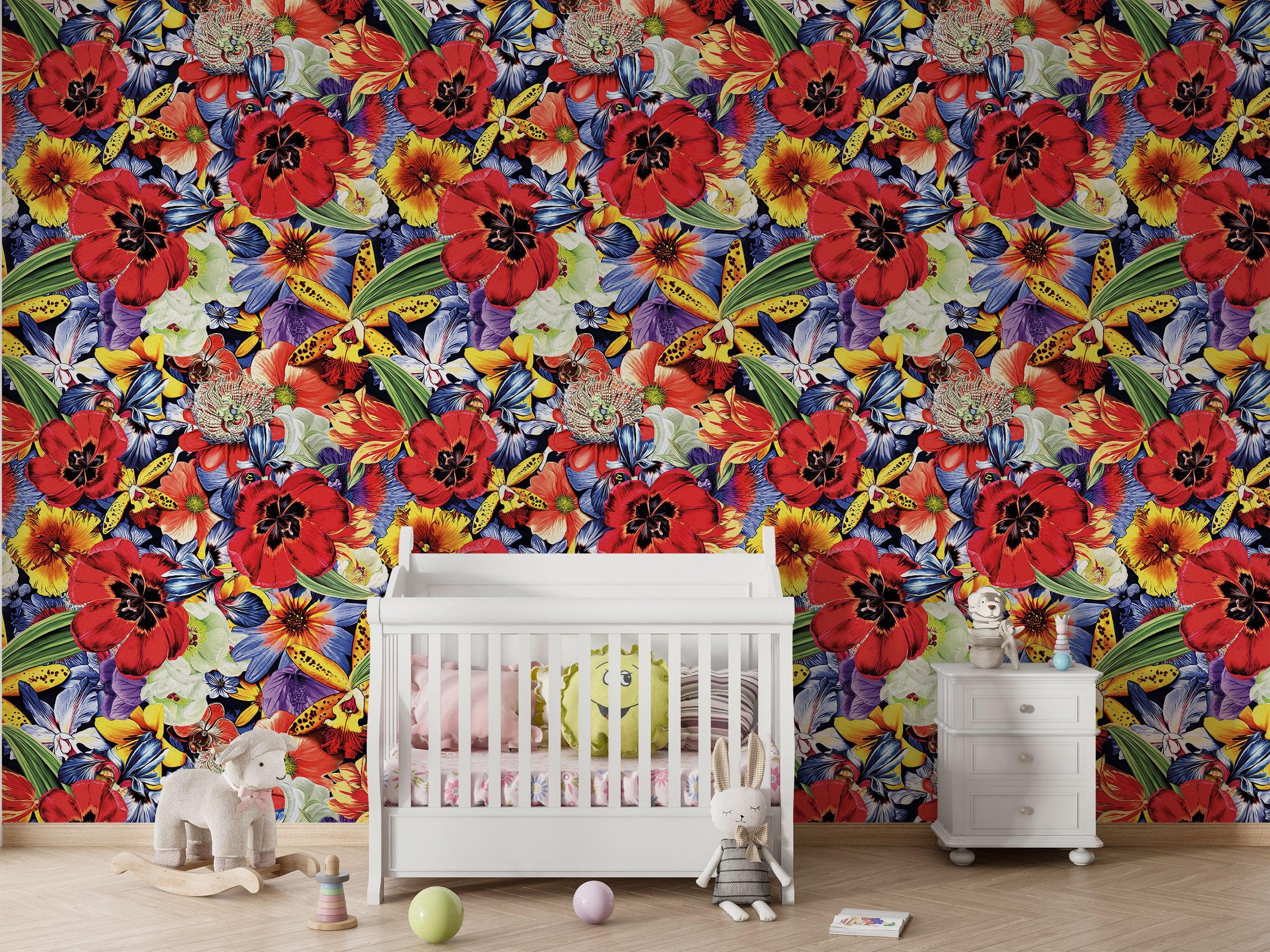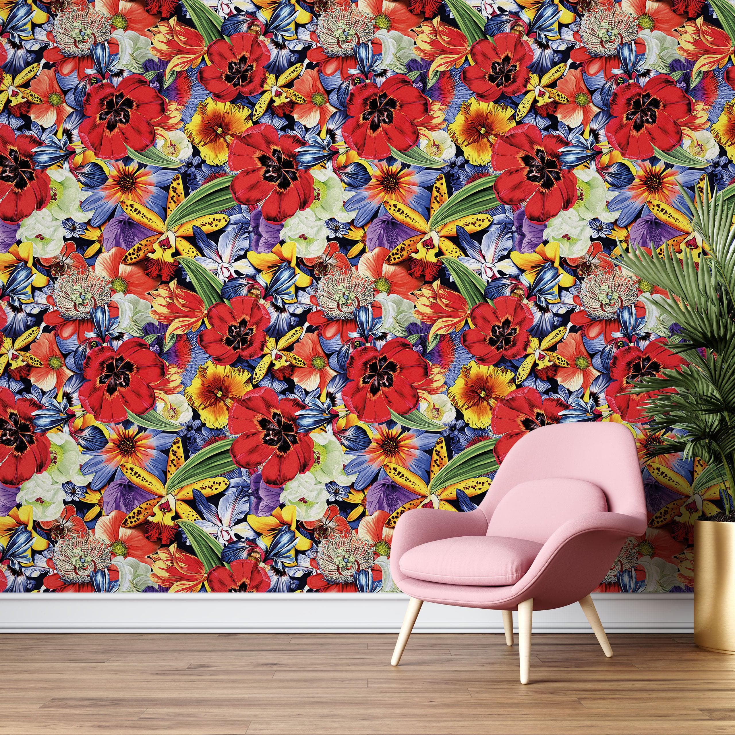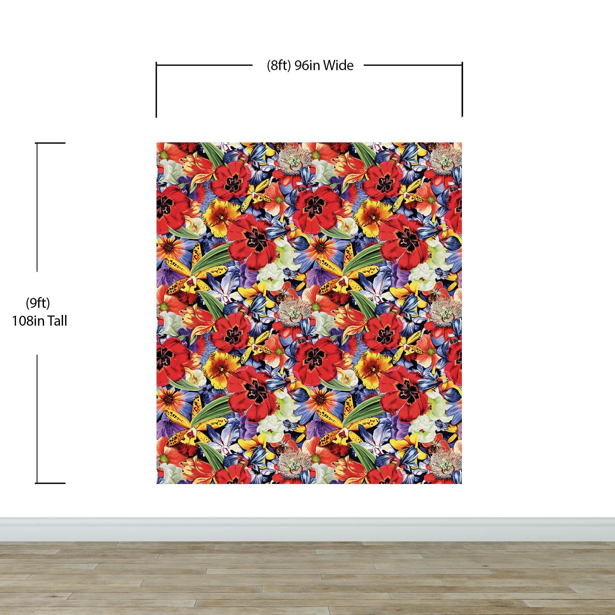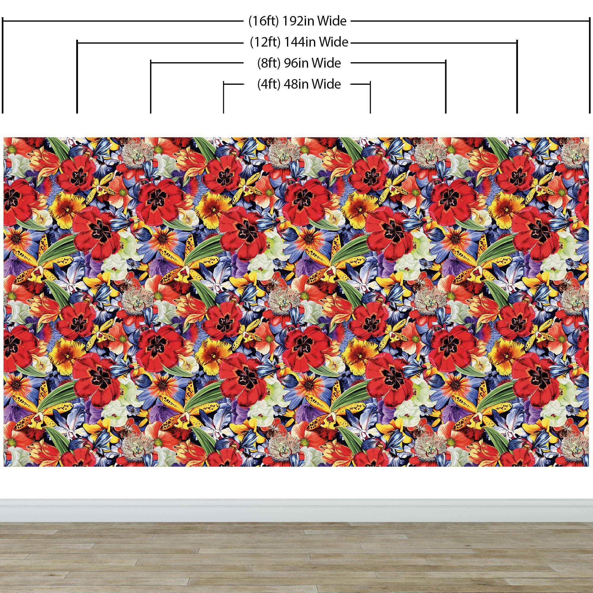 Colorful Blooming Flower Wall Mural. Tropical Floral Design Pattern Peel and Stick Wallpaper. #6370
