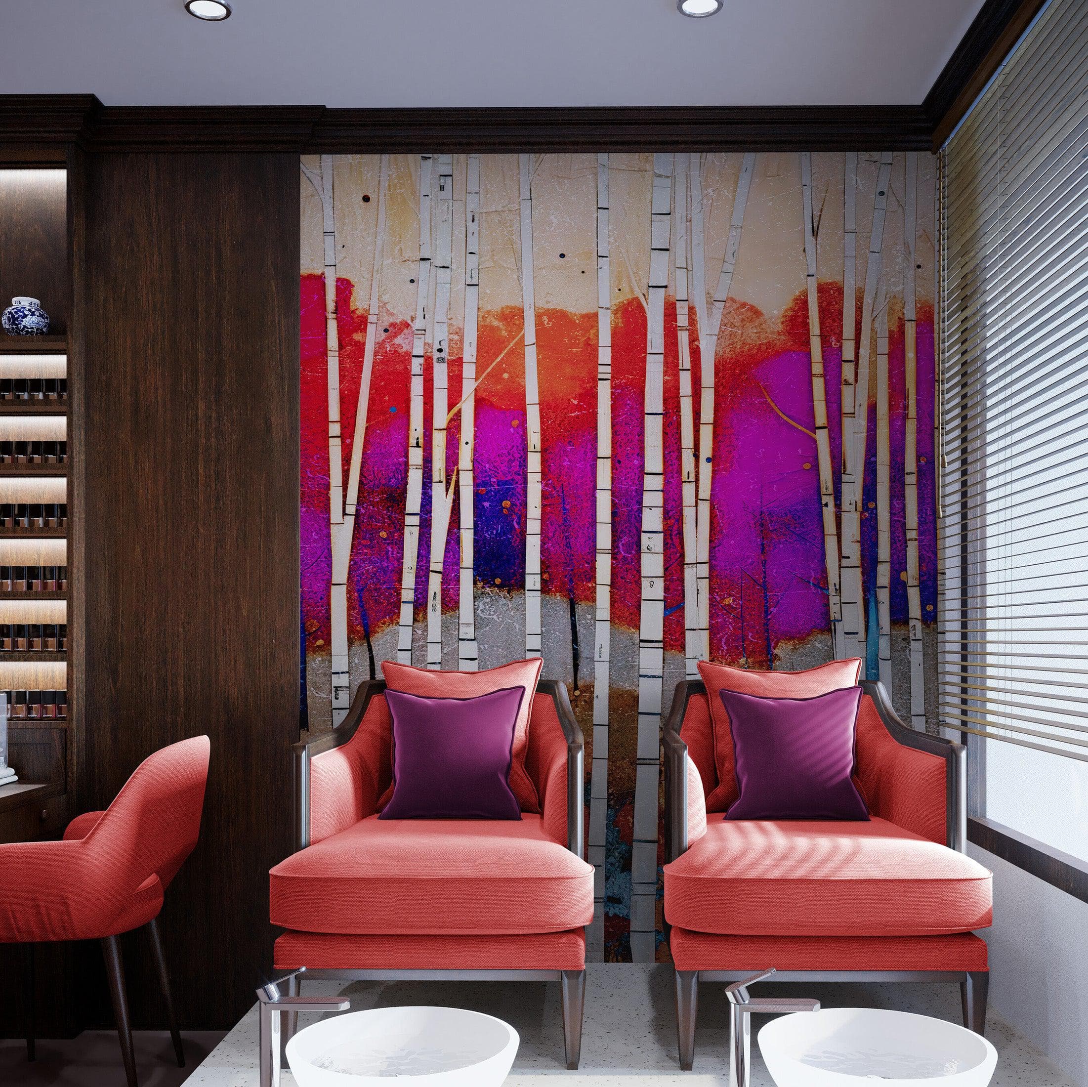 Colorful Vibrant Birch Tree Forest Wallpaper. #6649