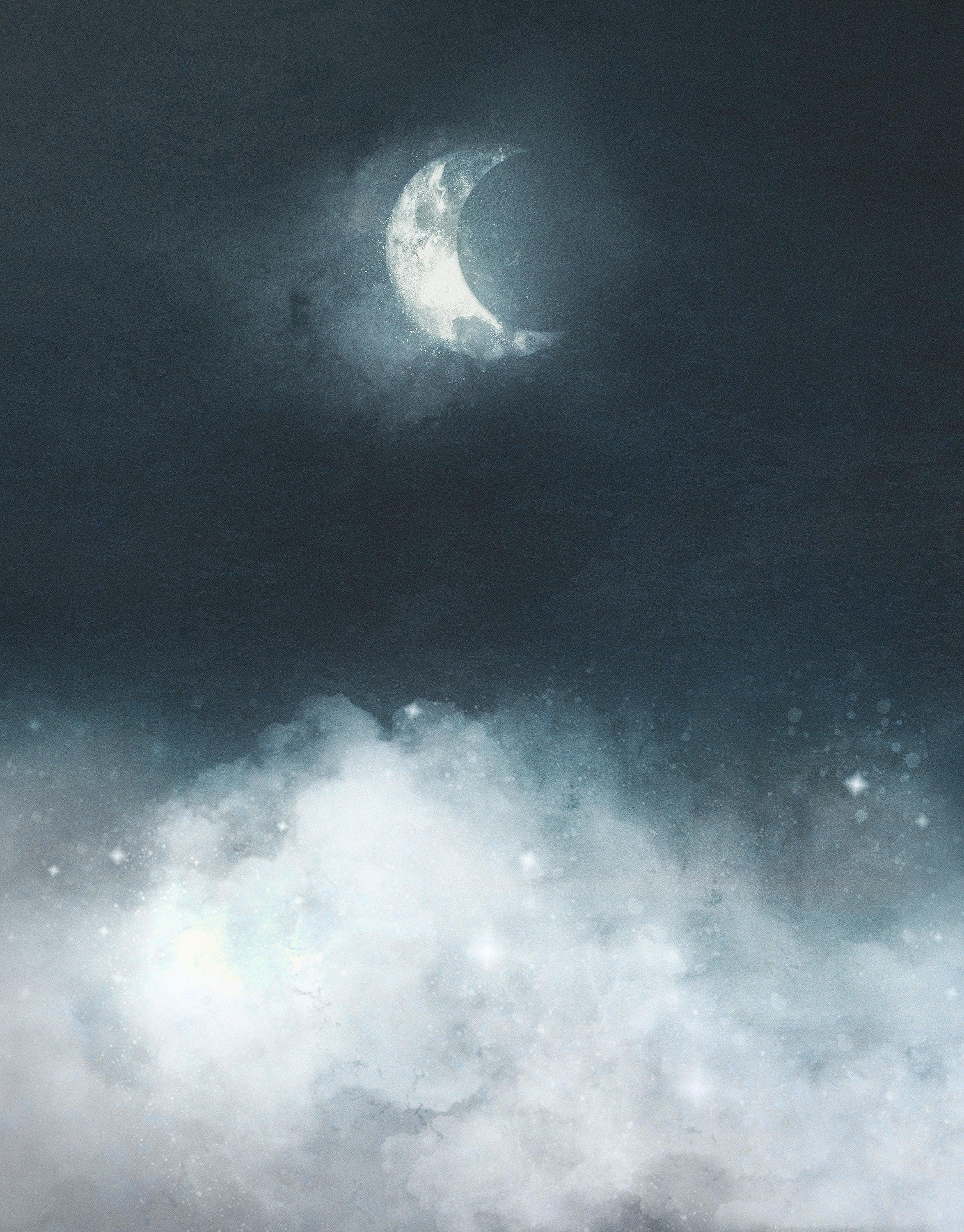 Crescent Moon Shining Over Misty Clouds Wall Mural. Peel and Stick Wallpaper. #6301