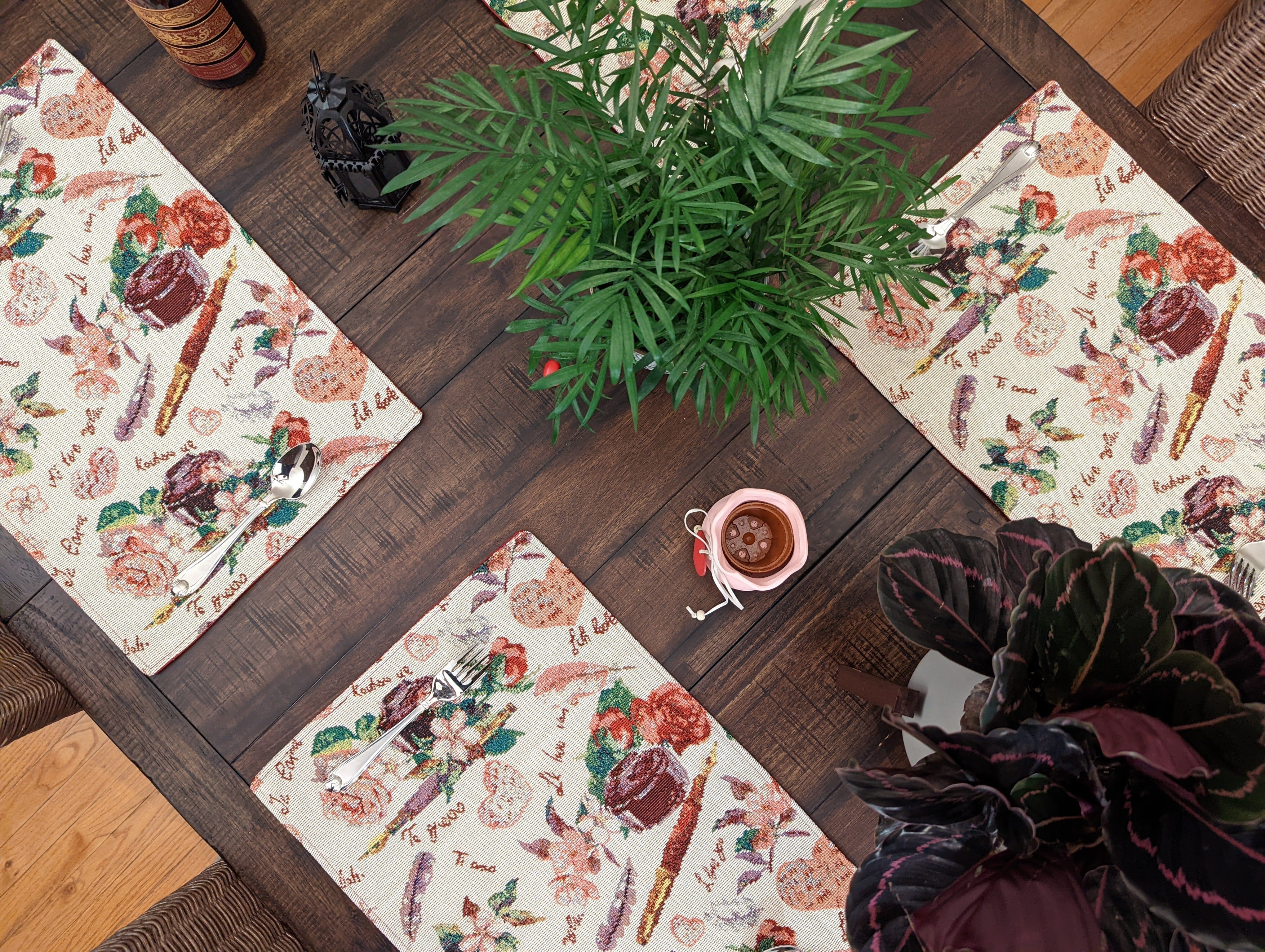 Decorate your dining table with our elegant and blooming sweet love notes design on our one of a kind DaDa Bedding tapestry placemats.