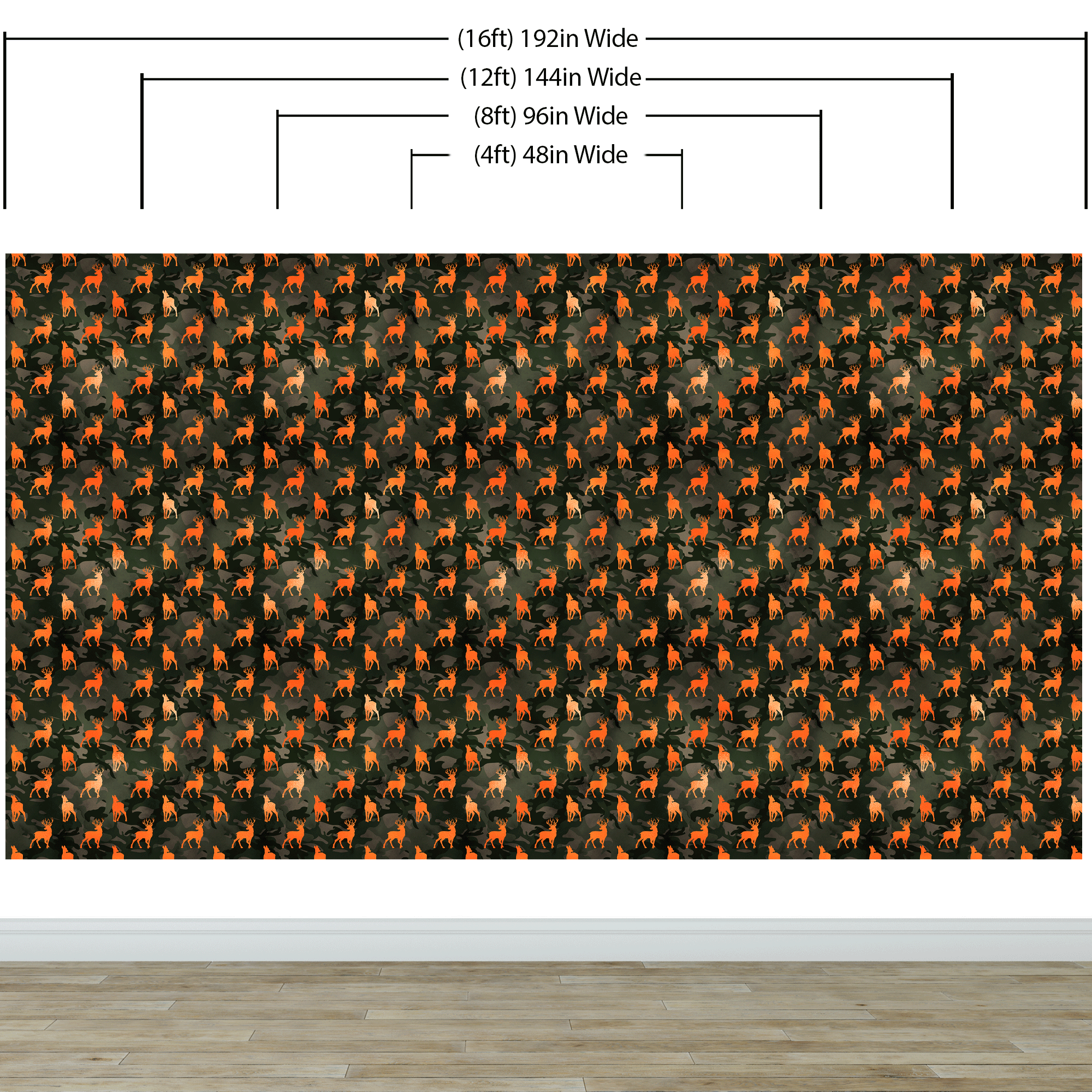 Deer Silhouette Camouflage Wall Mural. Military Theme / Hunter Home Decor. Peel and Stick Wallpaper. #6436