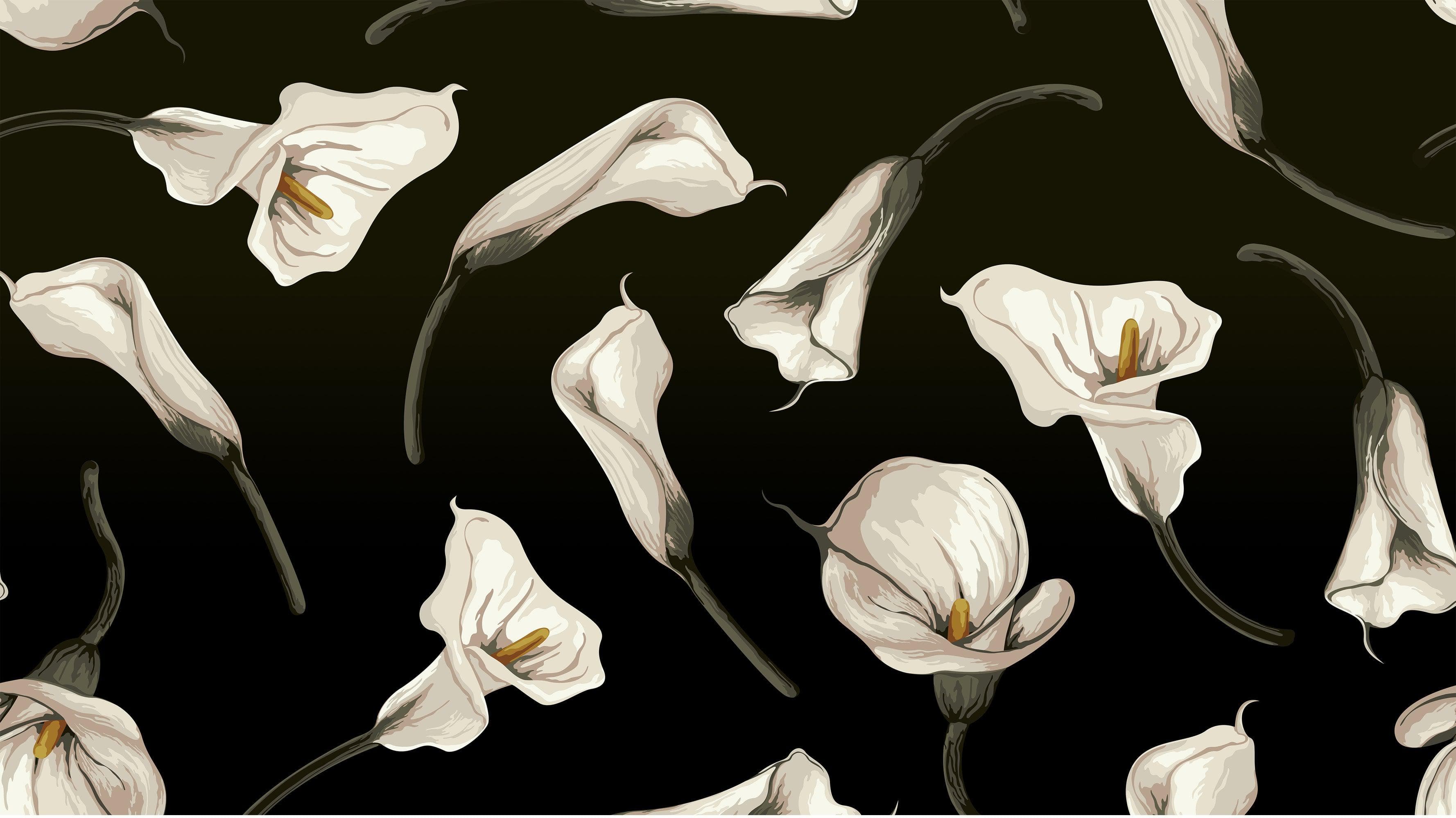 • Add some nature into your home. Tulip flower illustration over black background wall mural.