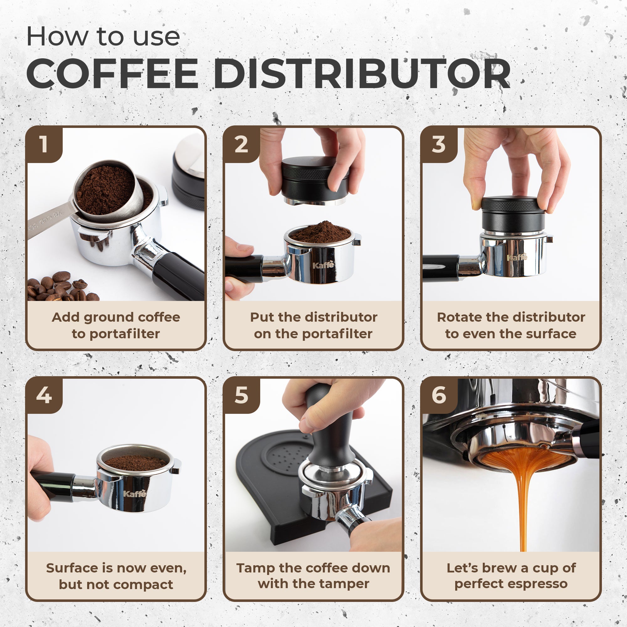 • IMPROVE ESPRESSO BREW CONSISTENCY - Using Kaffe's WDT Distribution tool, stir coffee grounds while they sit in the portafilter. The stirring action breaks up any clumps and evens out the density of coffee within the puck to make the perfect espresso.
