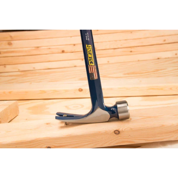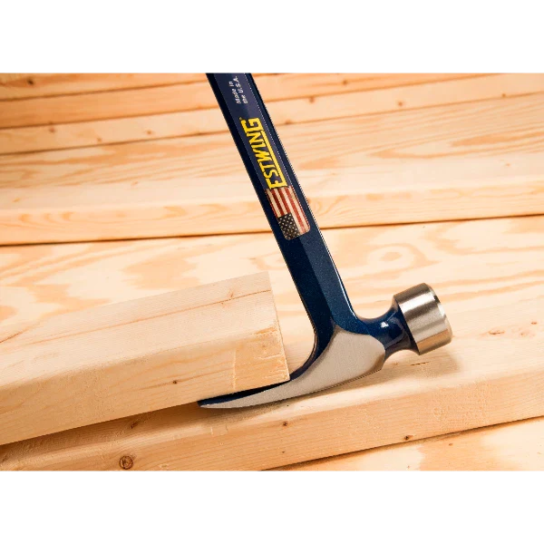 Estwing’s exclusive BIG BLUE Pro Line Solid Steel Builder Series Framing Hammer has a longer handle for more striking power. The head and handle are forged in one piece. Our exclusive Shock Reduction Grip® is molded on and offers the utmost in both comfort and durability, while reducing vibrations caused by impact.