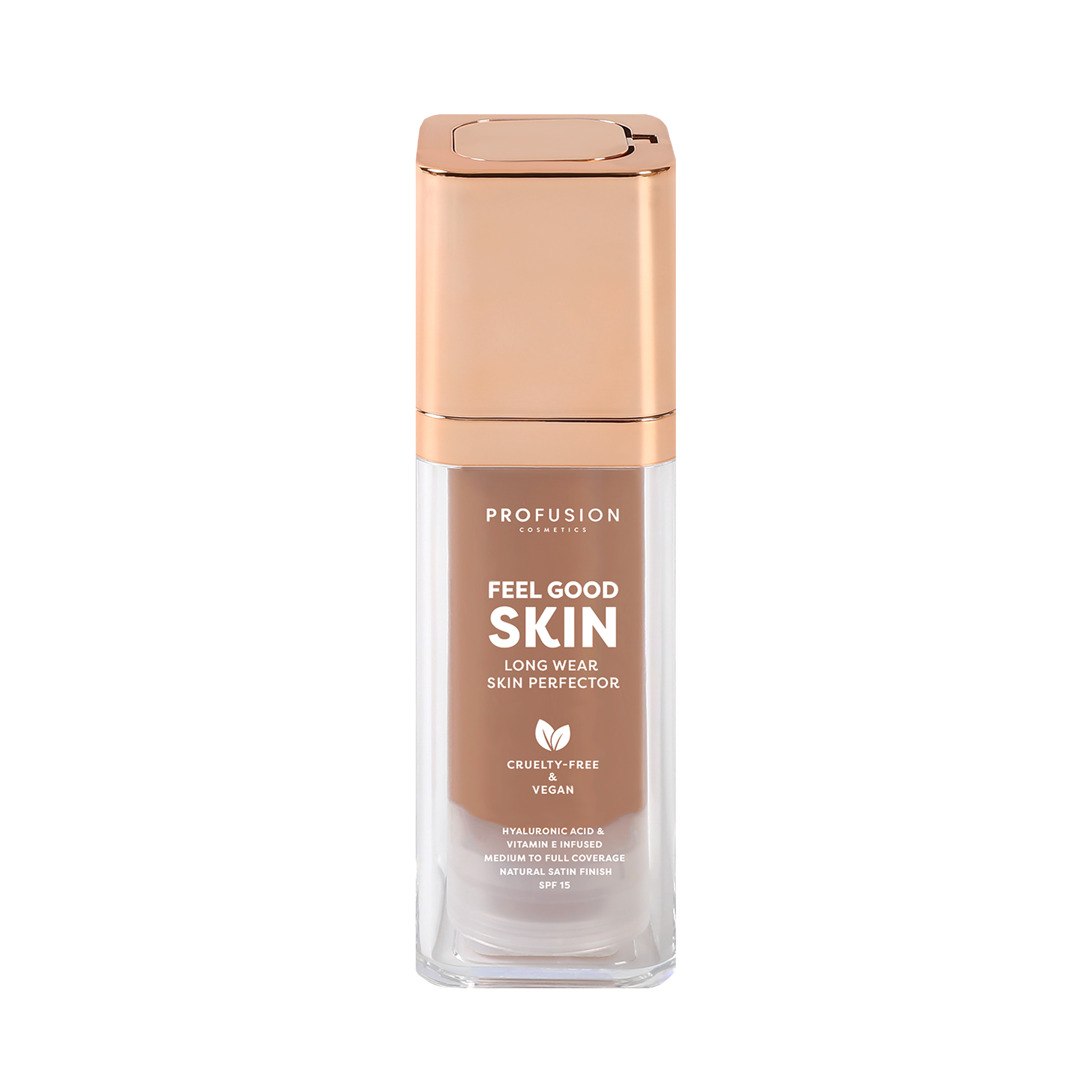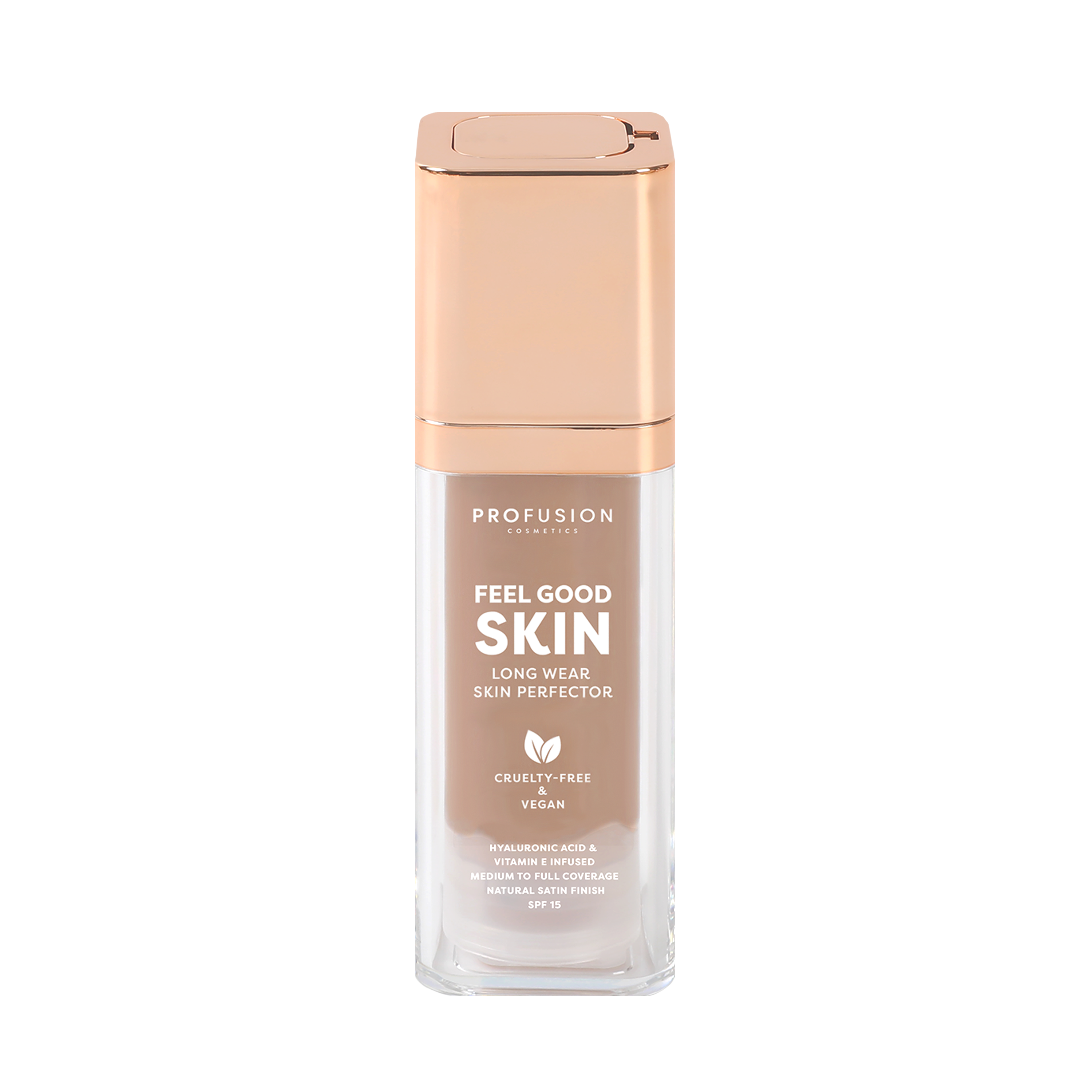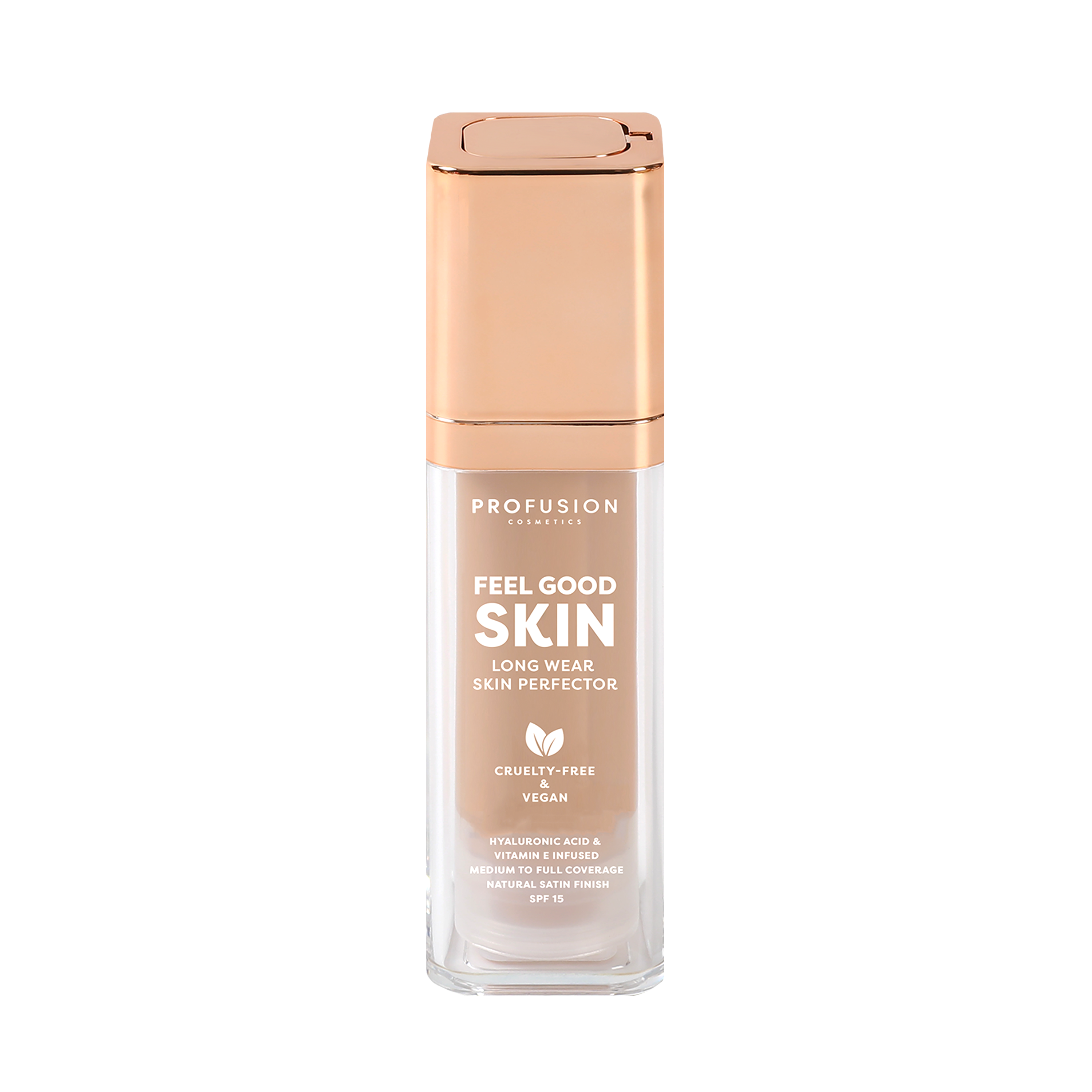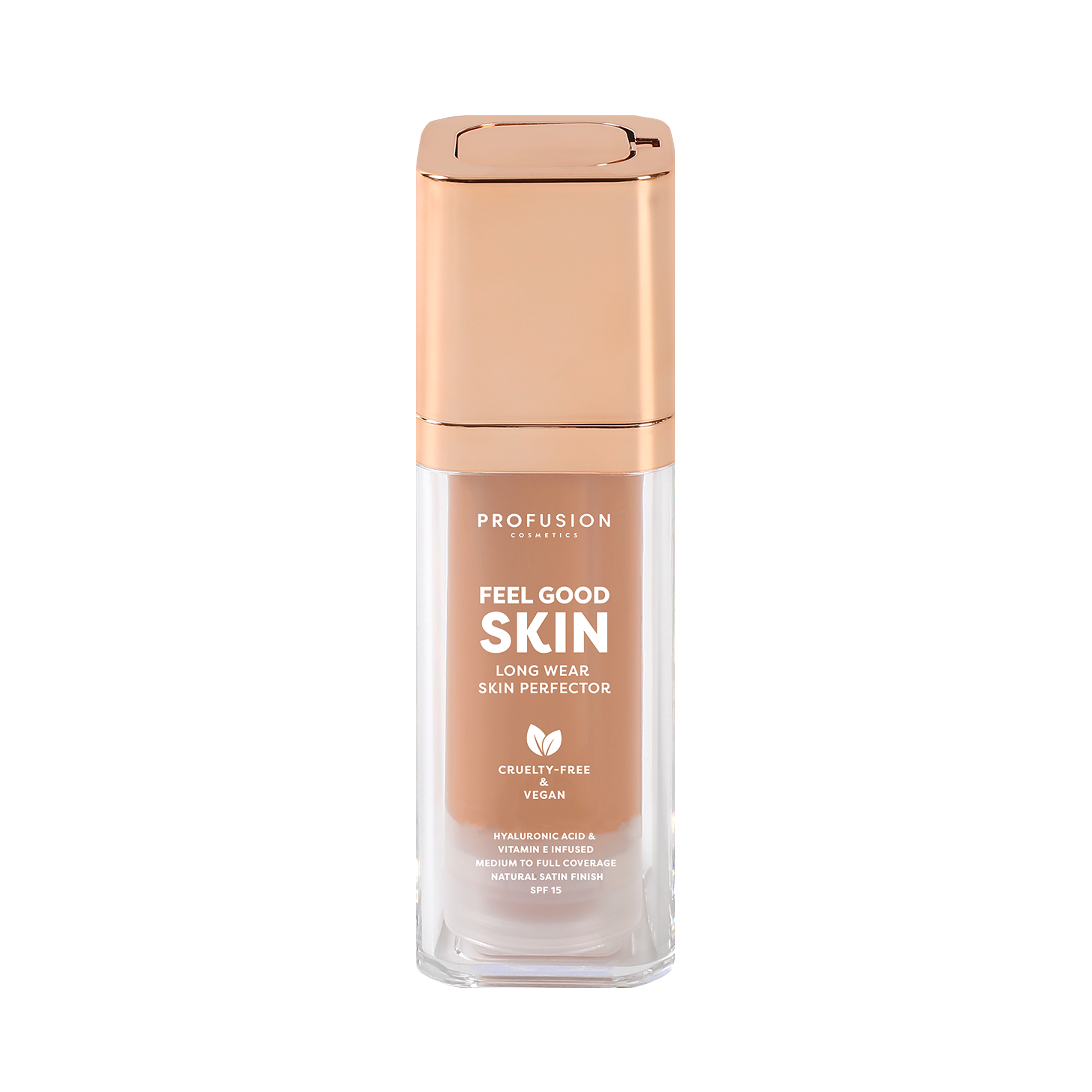 Profusion Cosmetics Feel Good Skin Foundation Make Up is more than just cosmetic makeup – it's skincare. This satin-finish skin perfector is infused with Hyaluronic Acid and packed with SPF 15 to keep your skin protected and hydrated. It also offers a buildable, radiant coverage with serum like weightlessness and is available in 12 curated shades because moisturizers shouldn’t be one fits all.