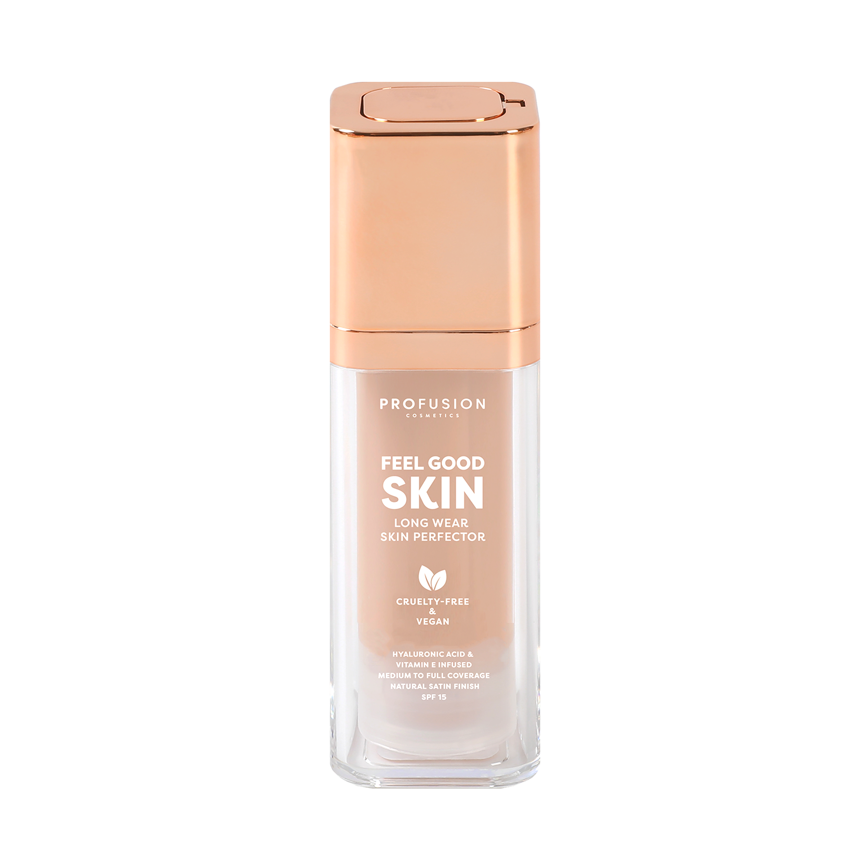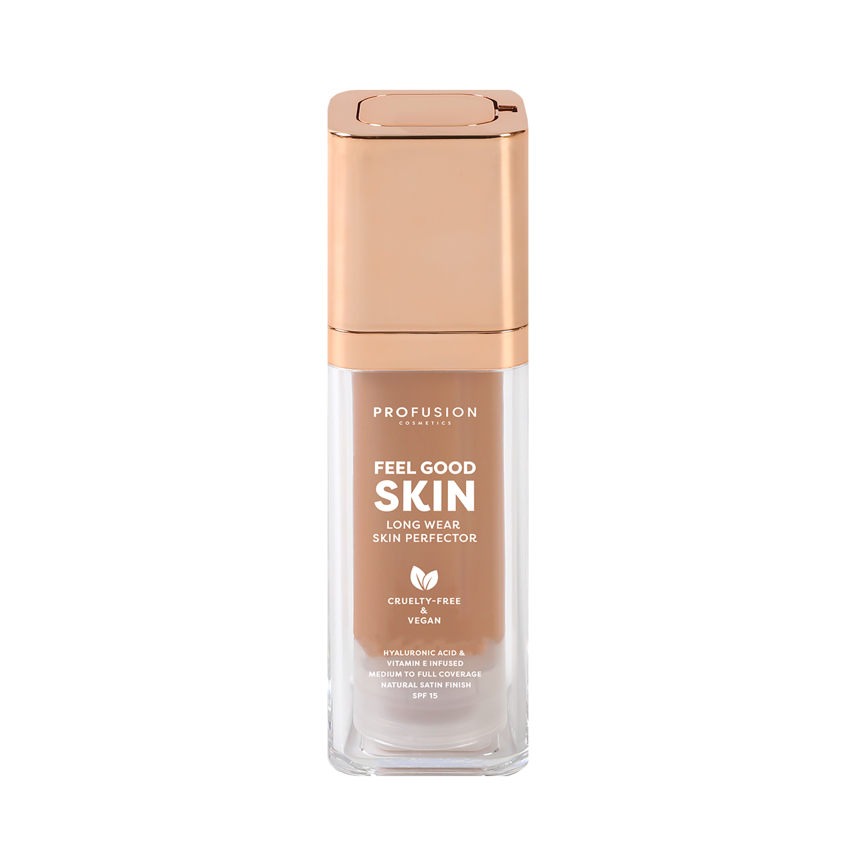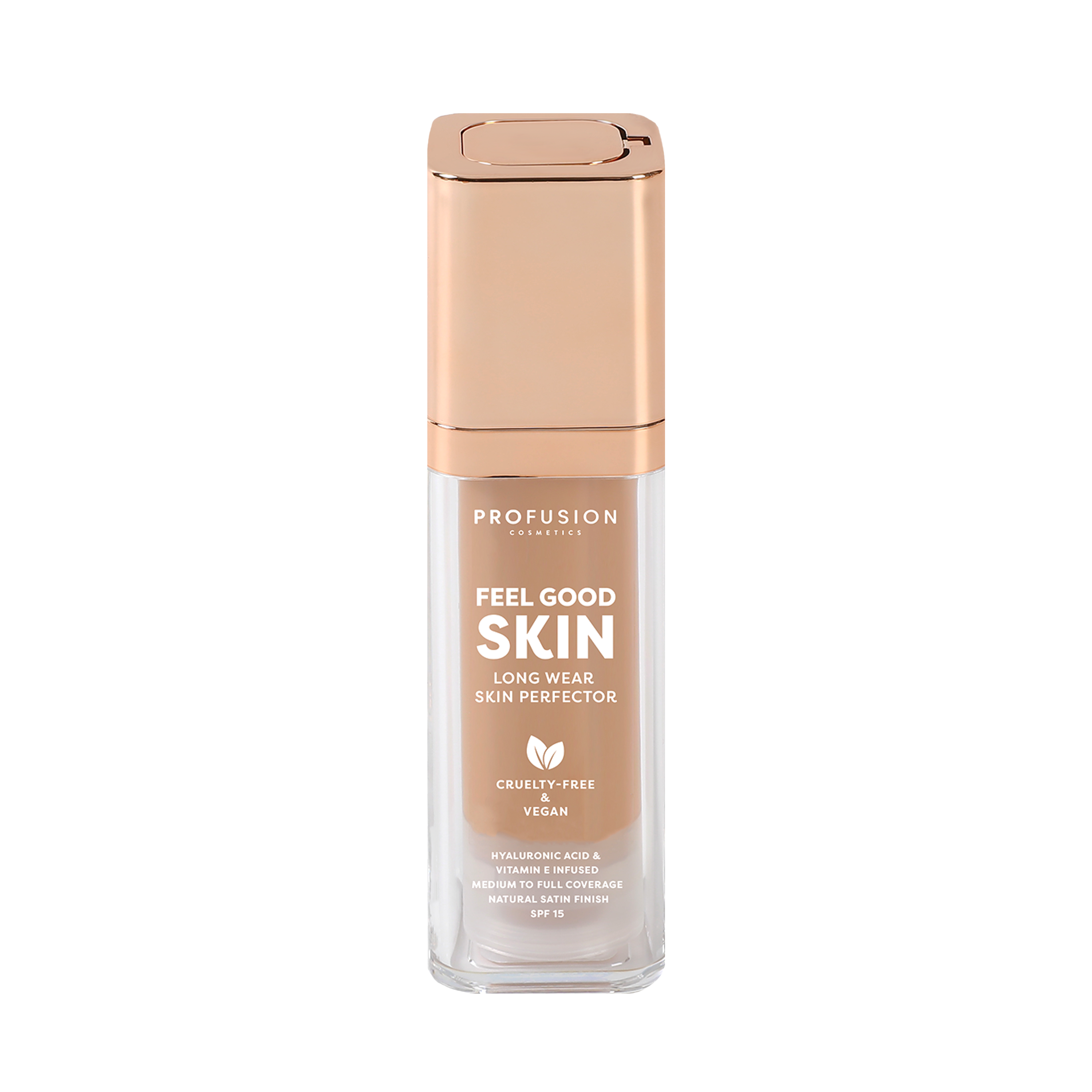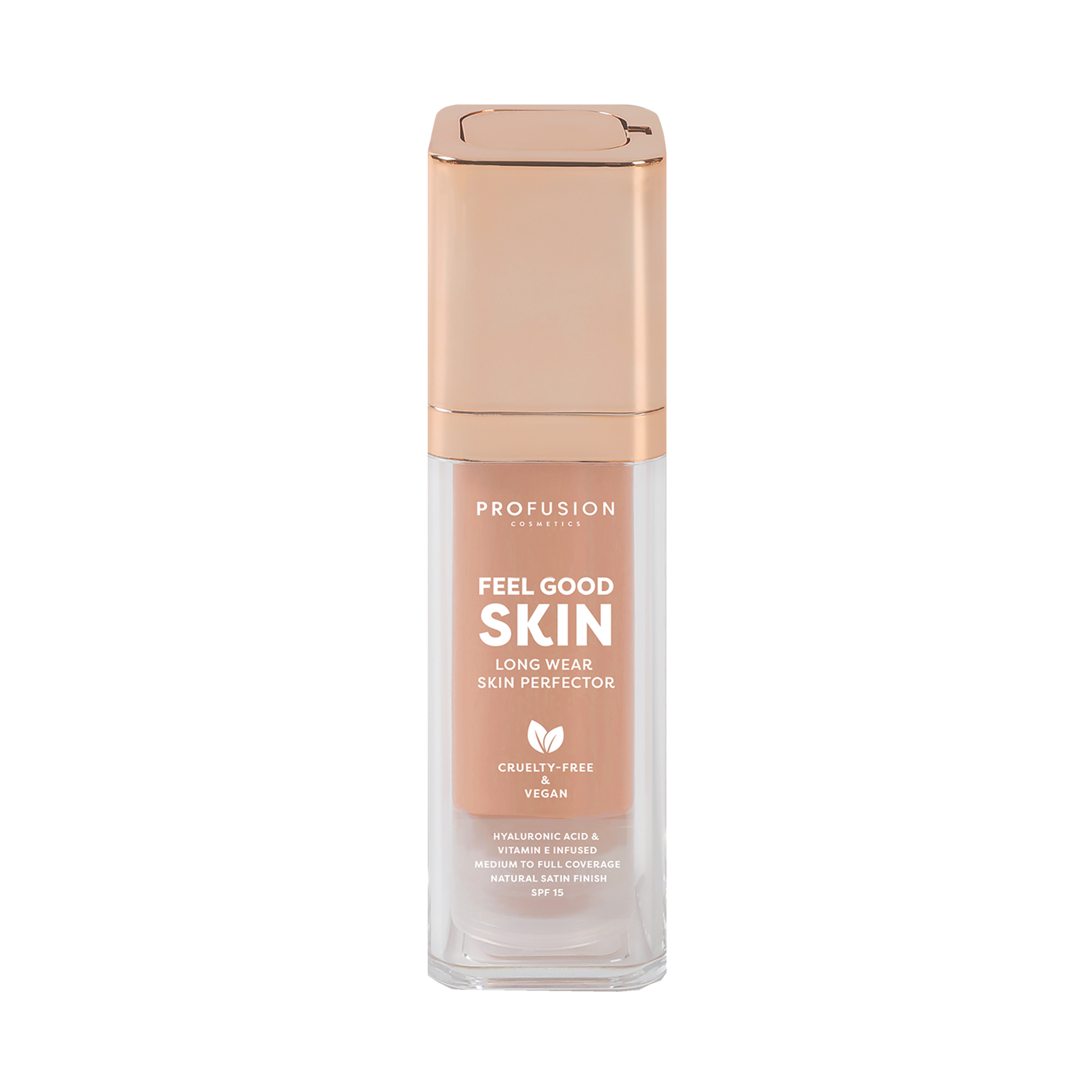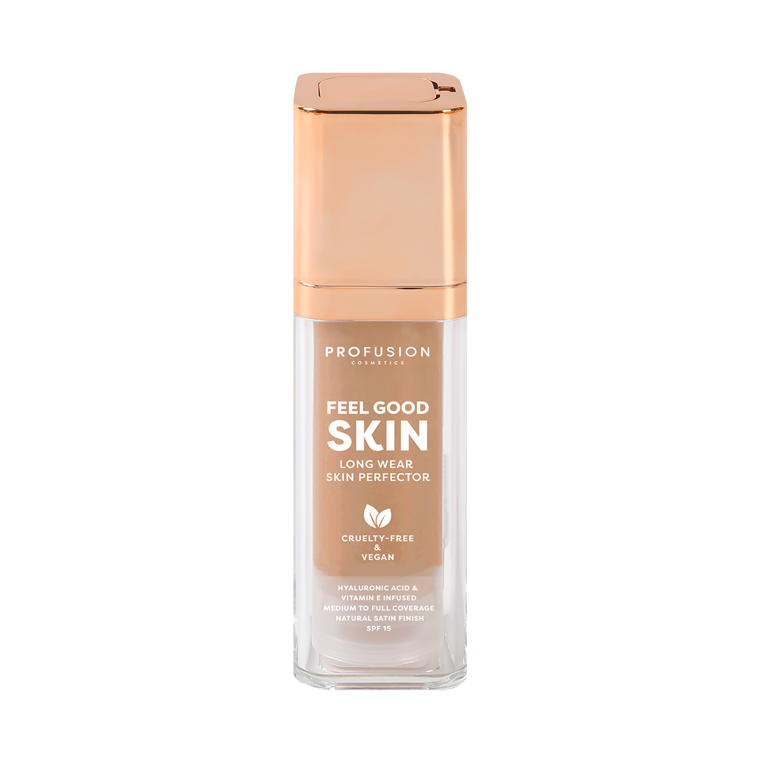 Profusion Cosmetics Feel Good Skin Foundation Make Up is more than just cosmetic makeup – it's skincare. This satin-finish skin perfector is infused with Hyaluronic Acid and packed with SPF 15 to keep your skin protected and hydrated. It also offers a buildable, radiant coverage with serum like weightlessness and is available in 12 curated shades because moisturizers shouldn’t be one fits all.