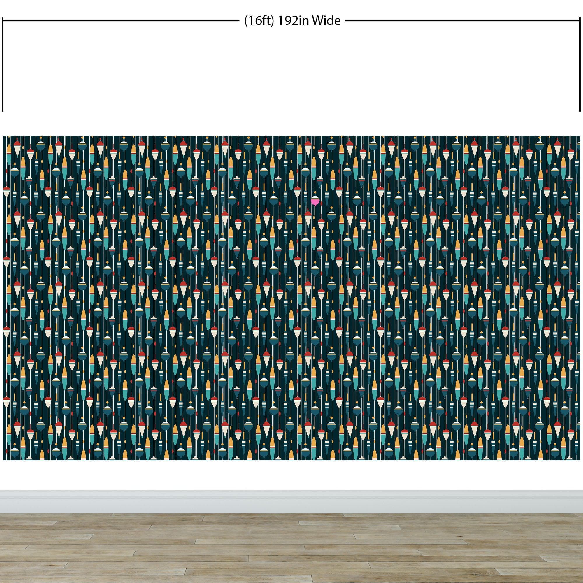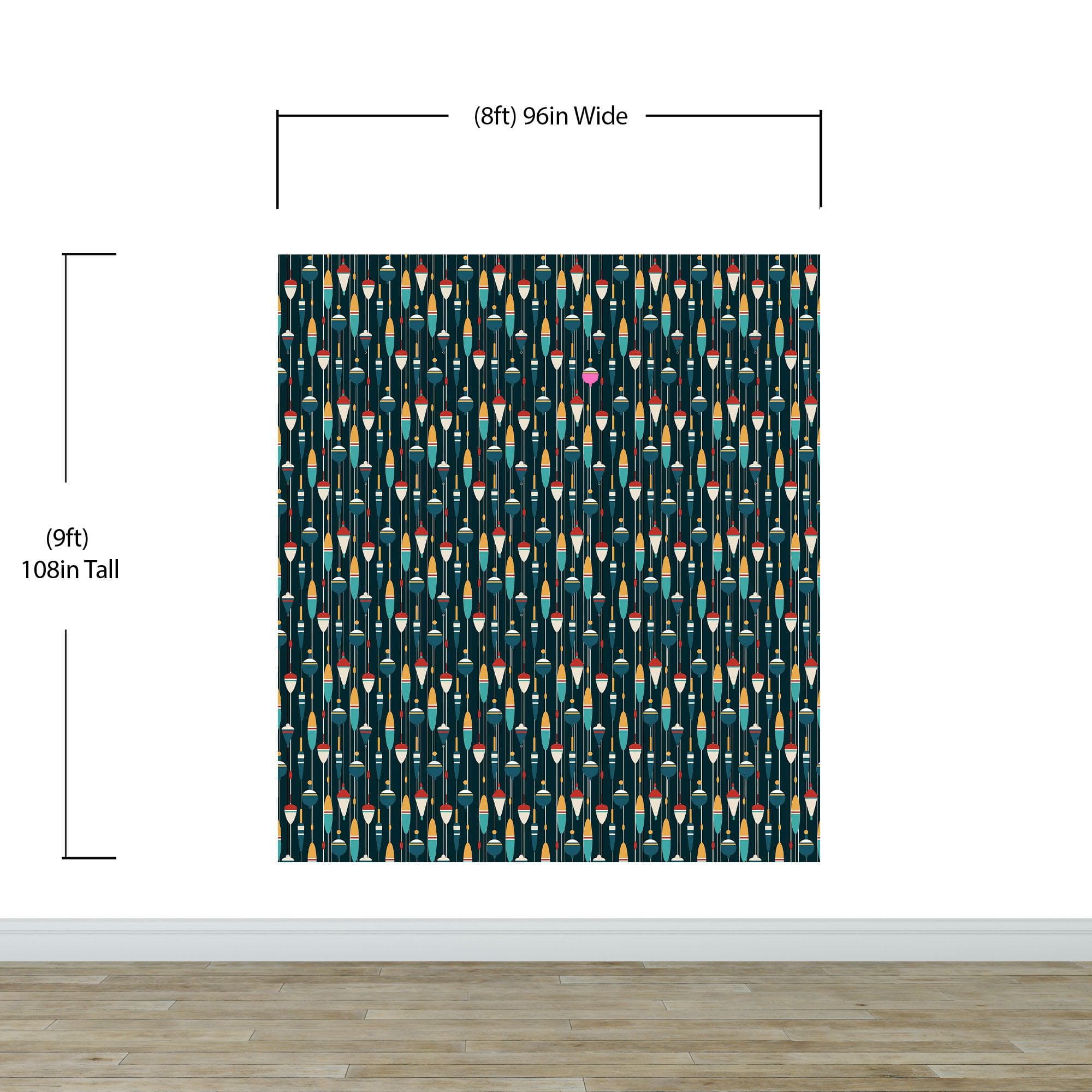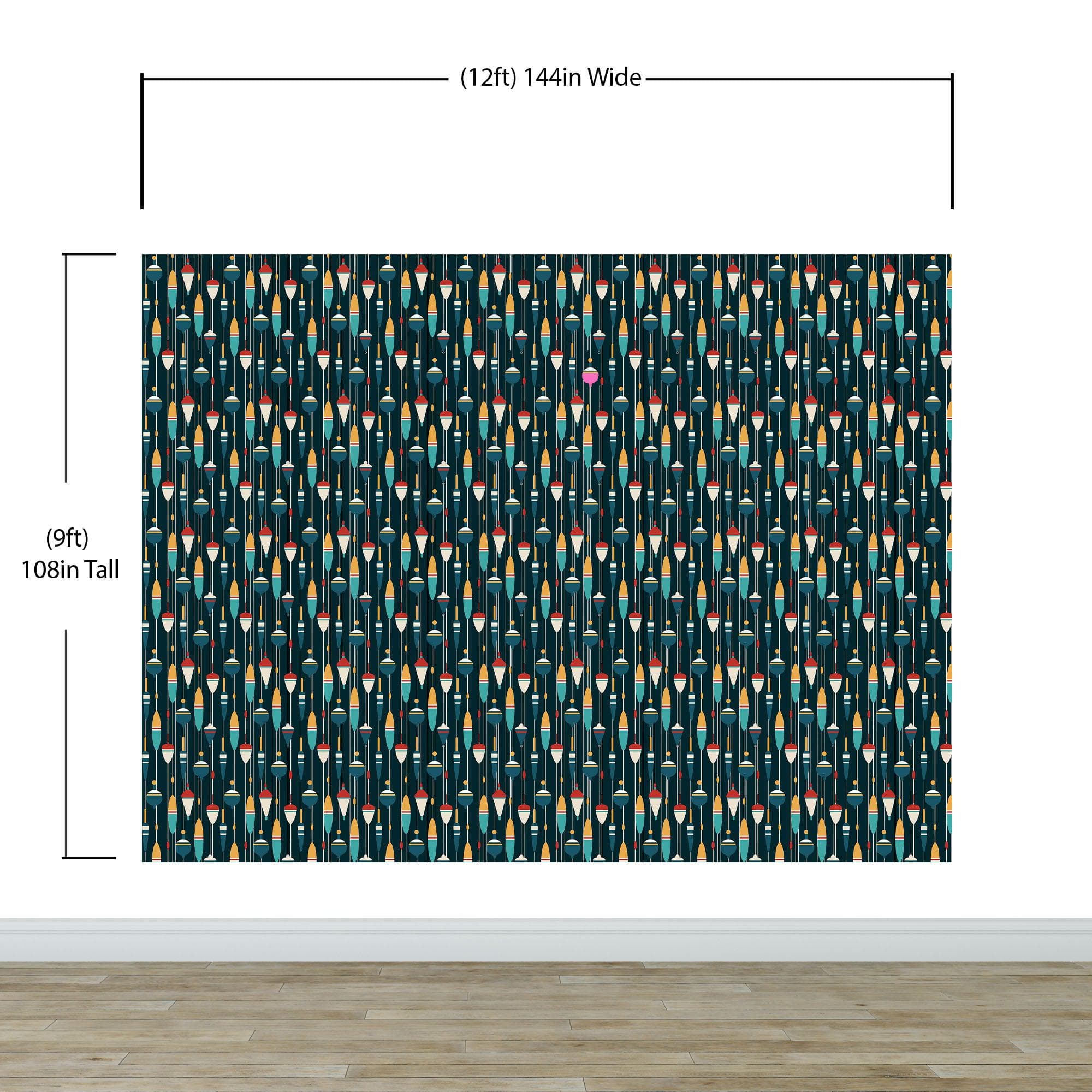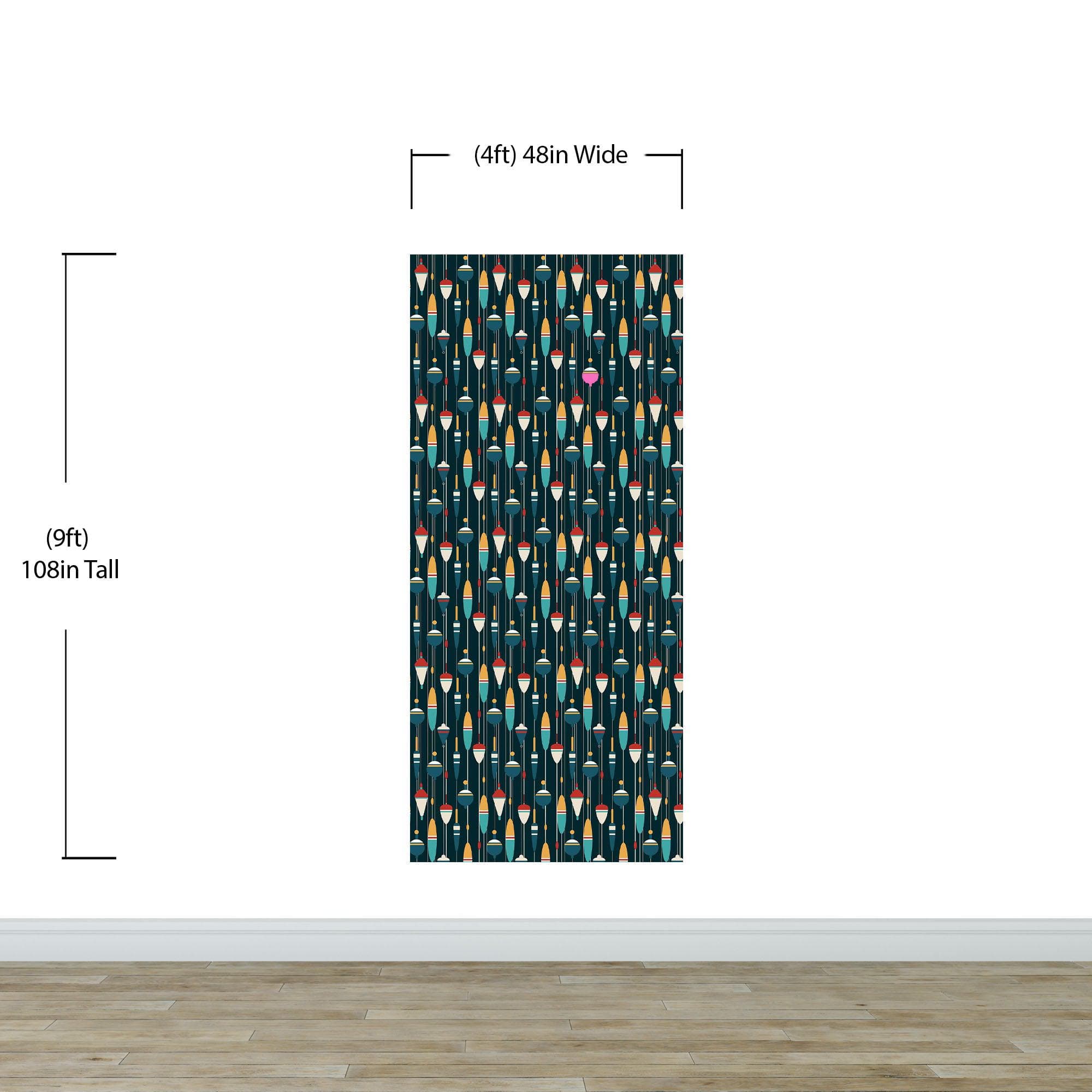 • Great Wall decor for any fisherman in the home. Depicted in this wallpaper design are colorful fishing floaters, corks and bobbers.