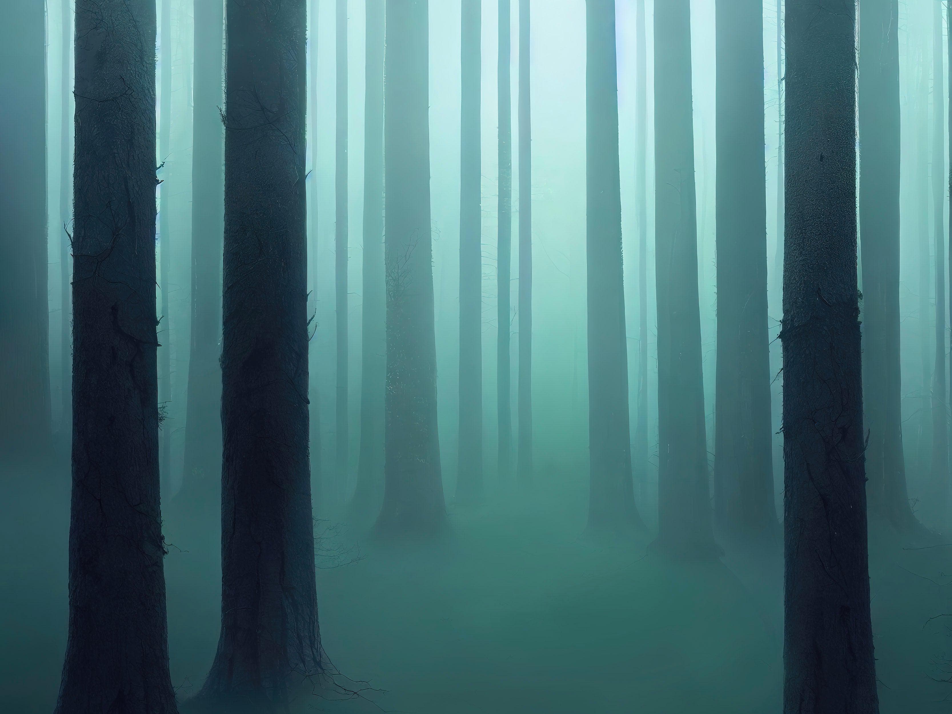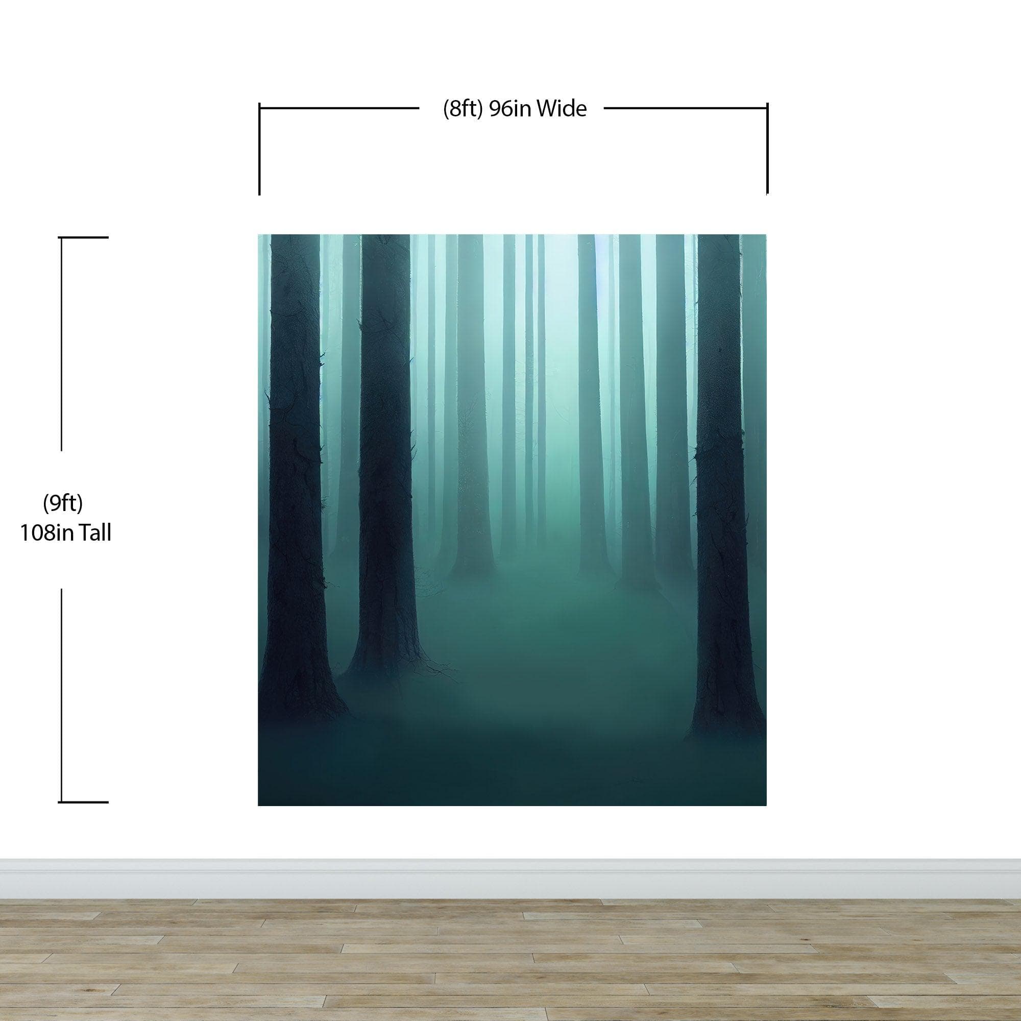 Foggy Forest Wall Mural. Emerald Green Mist Wallpaper. #6476