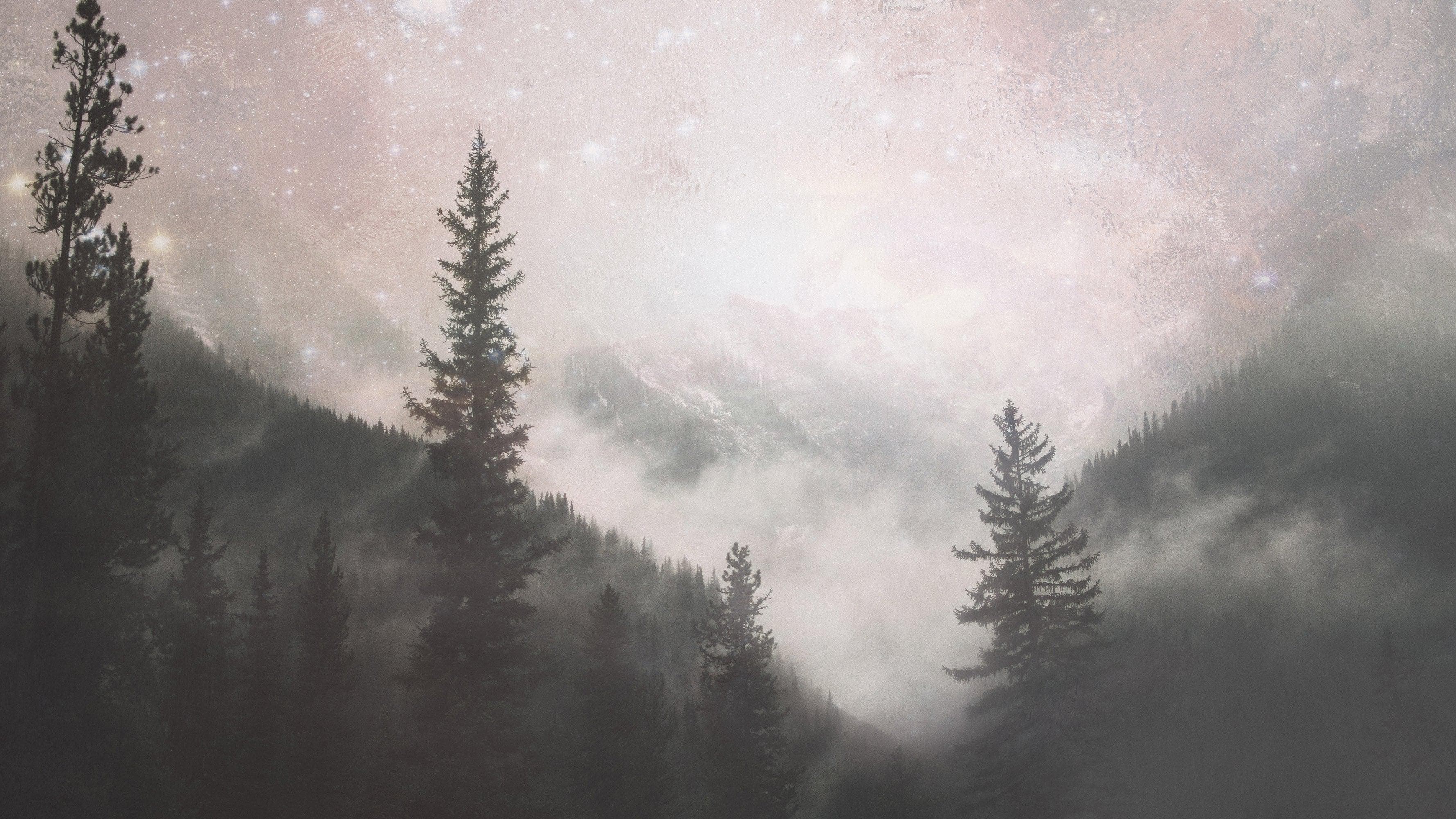 Change the mood in any room with this warm monochrome autumn misty forest landscape with bright stars shining over the horizon.