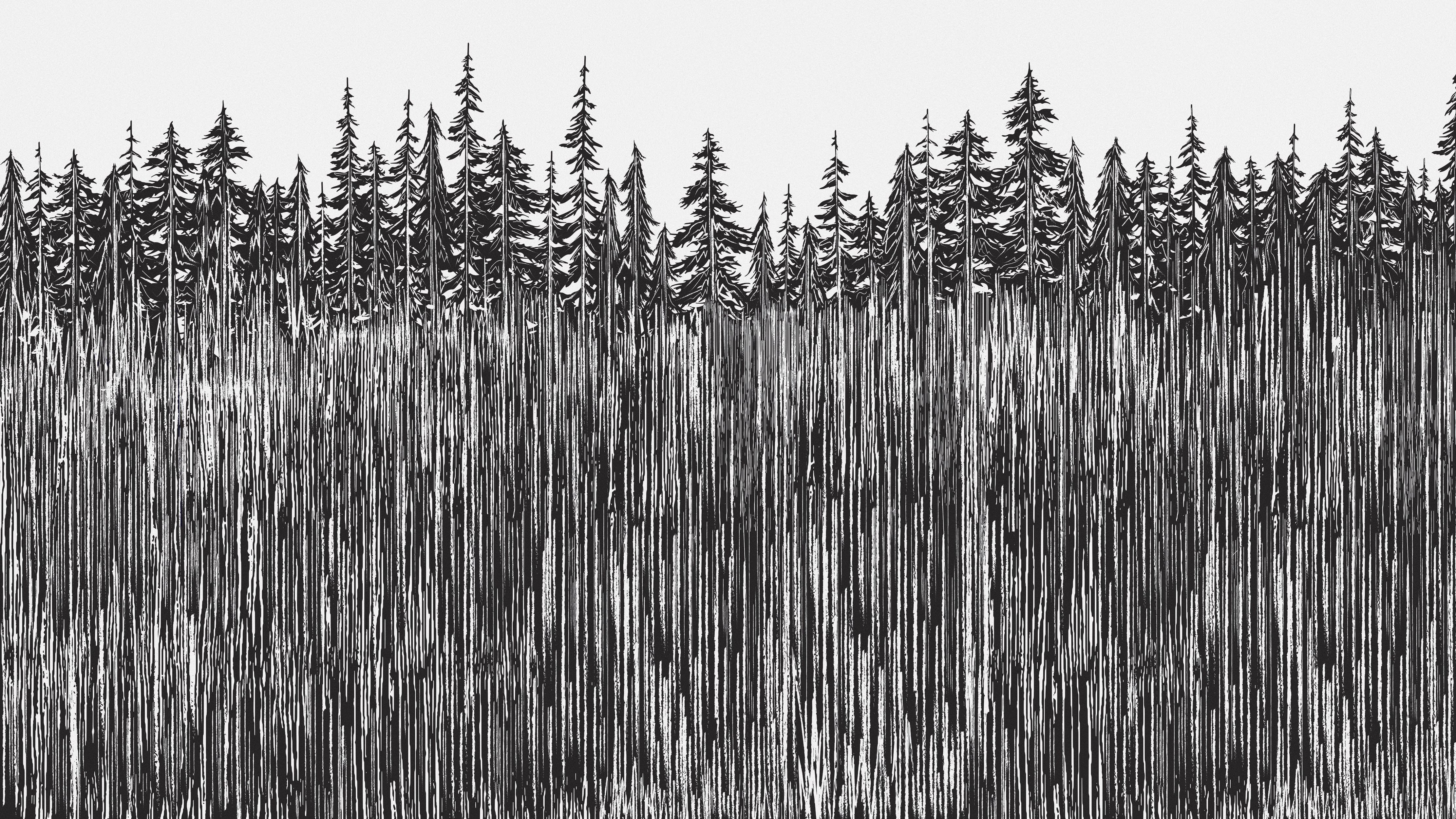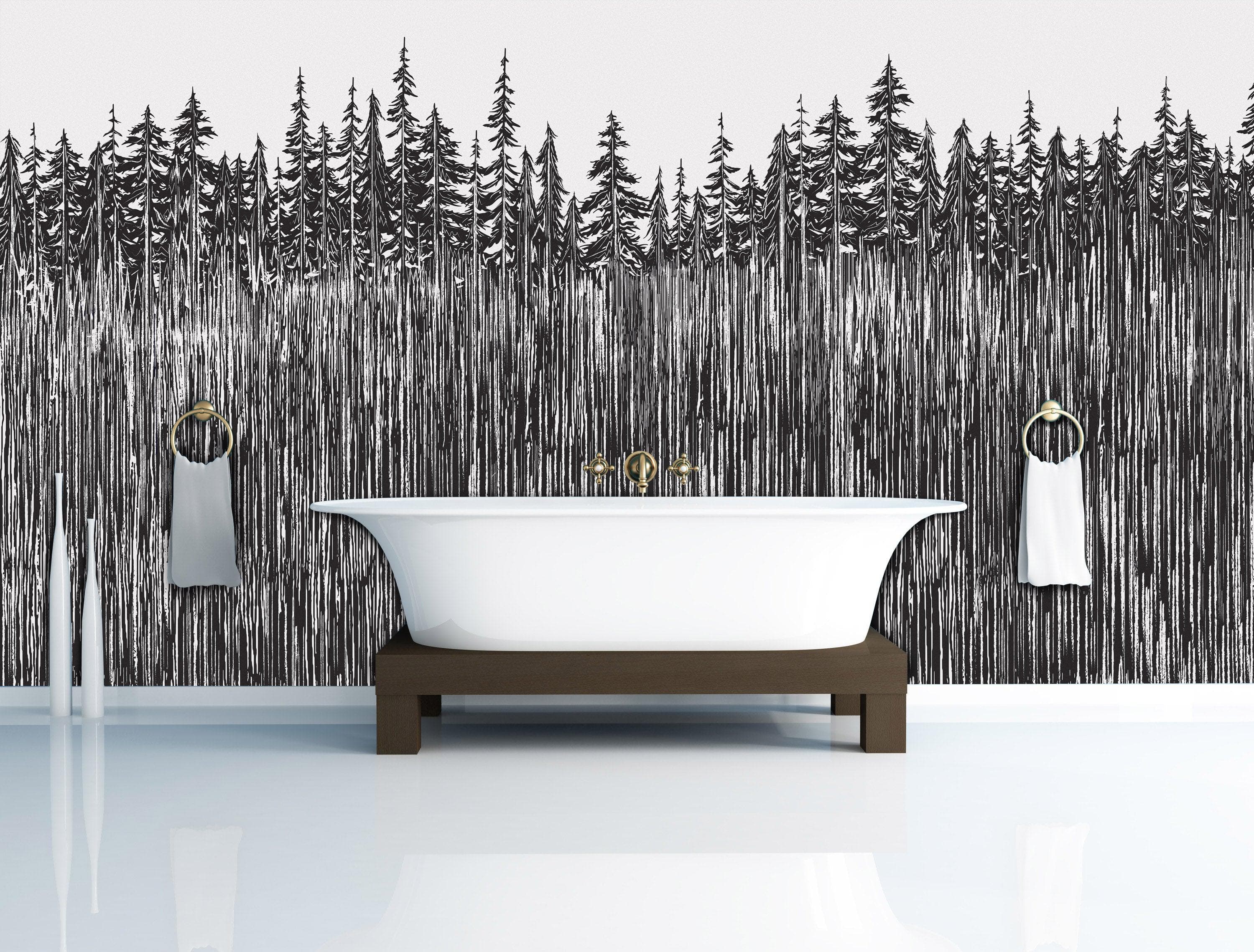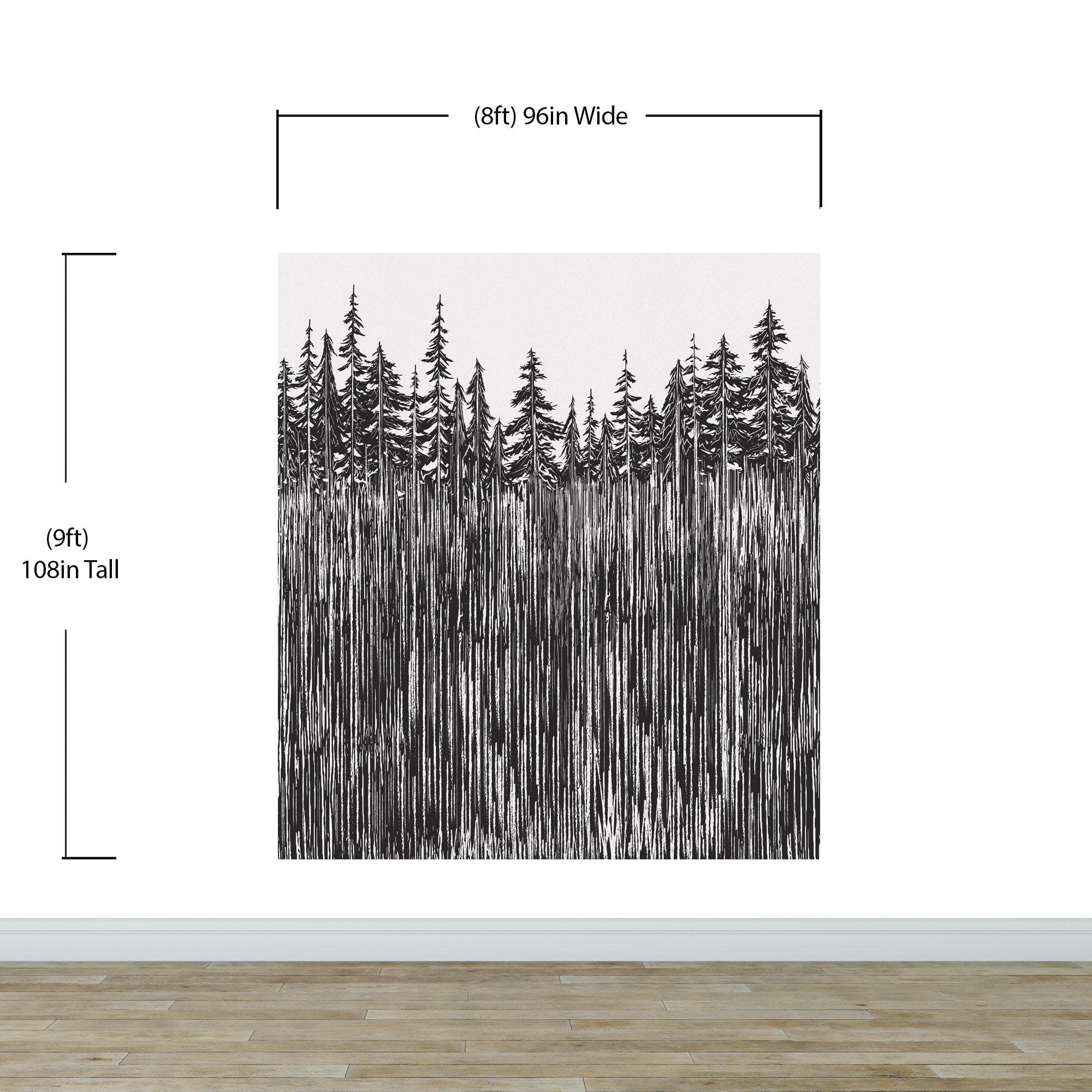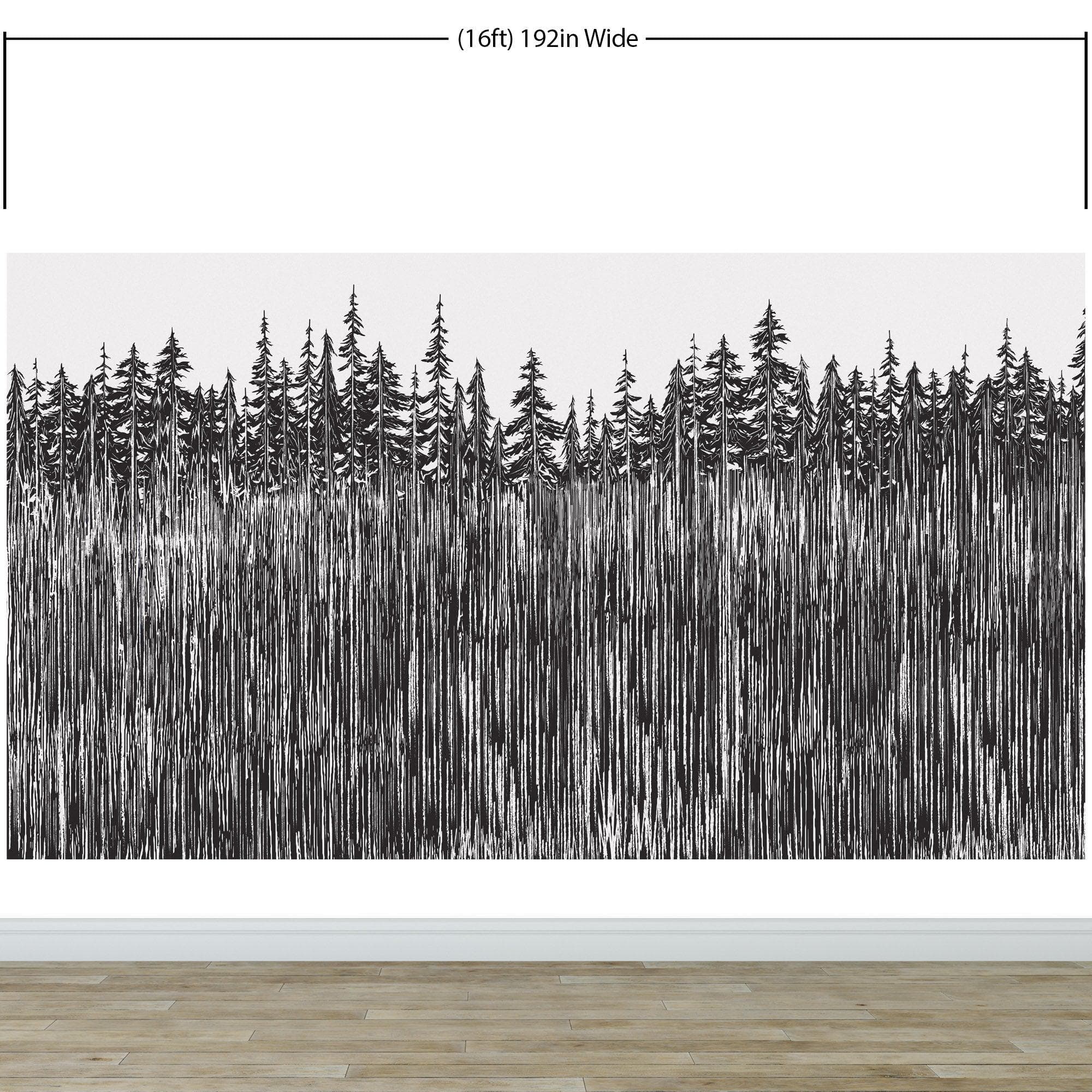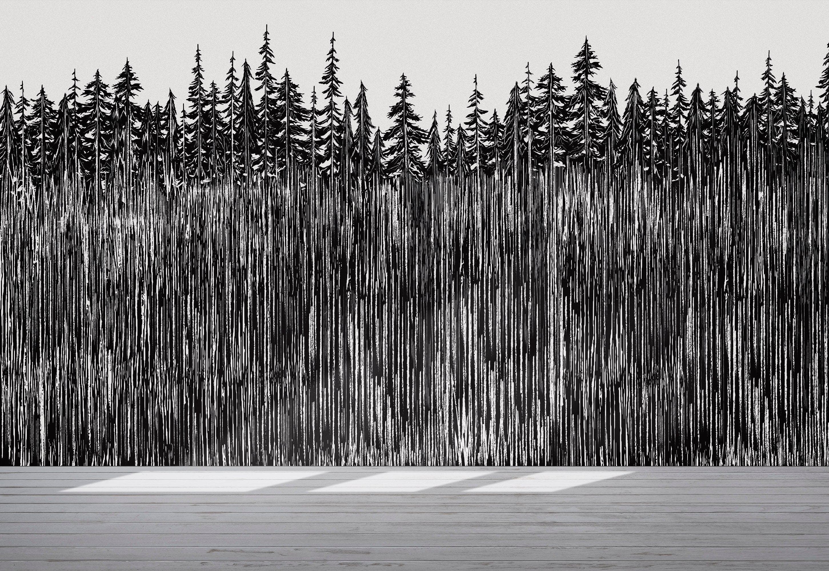 Forest Trees Trunks Grunge Illustration Wall Mural. Peel and Stick Wallpaper. Abstract Lines Silhouette Outdoors Scenery. #6345