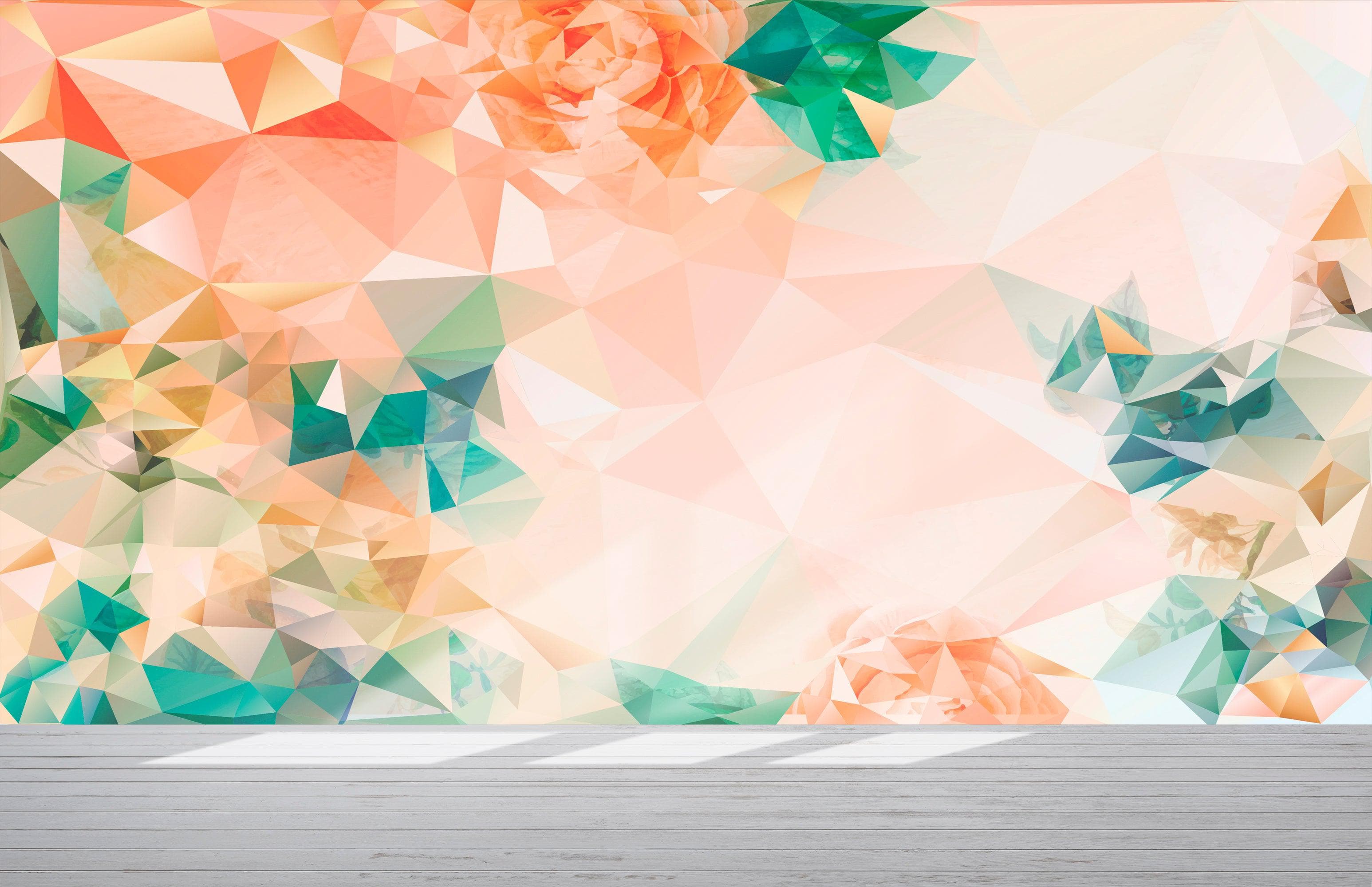 Geometric Pink Flower Pattern Peel and Stick Wallpaper | Removable Wall Mural #6211