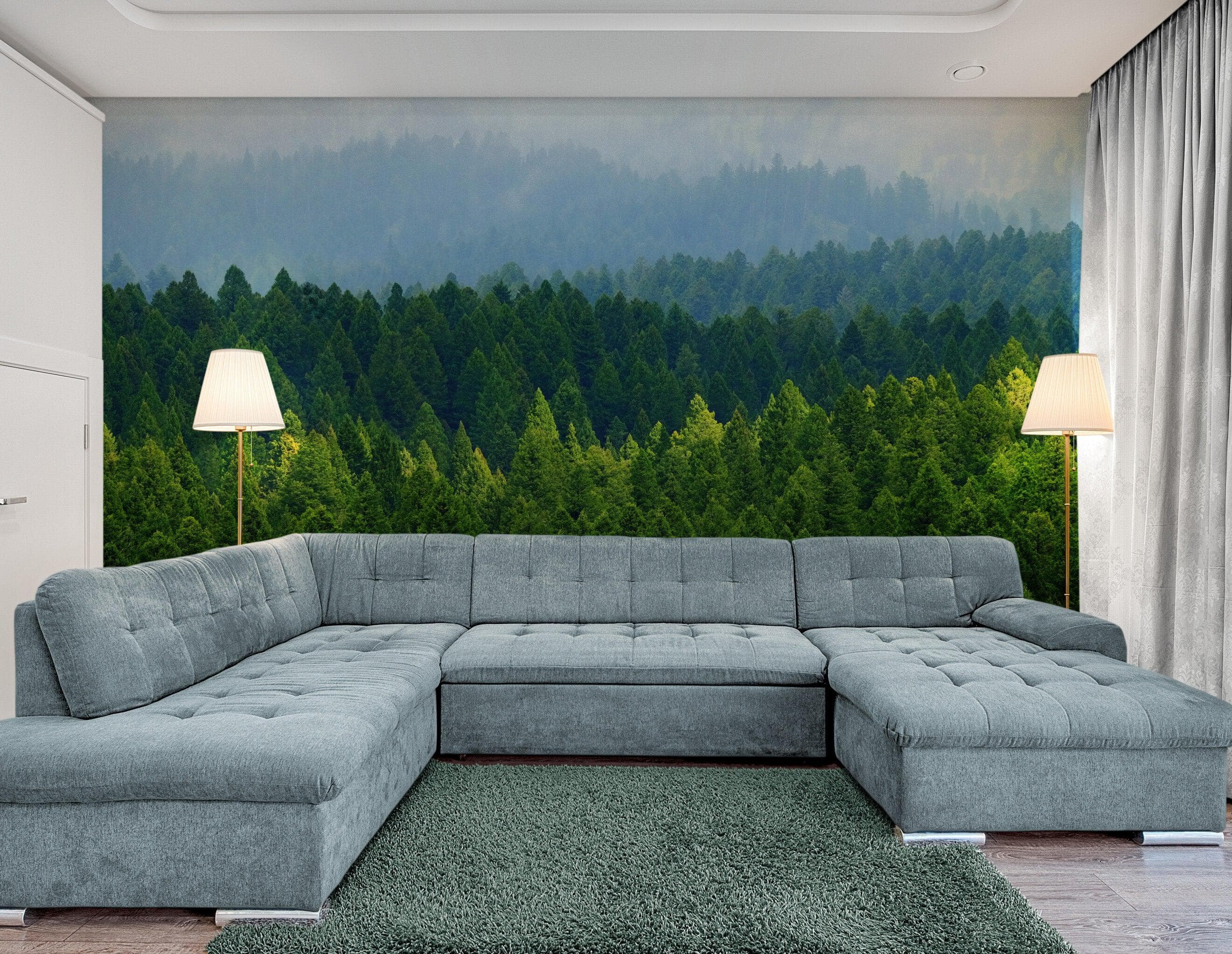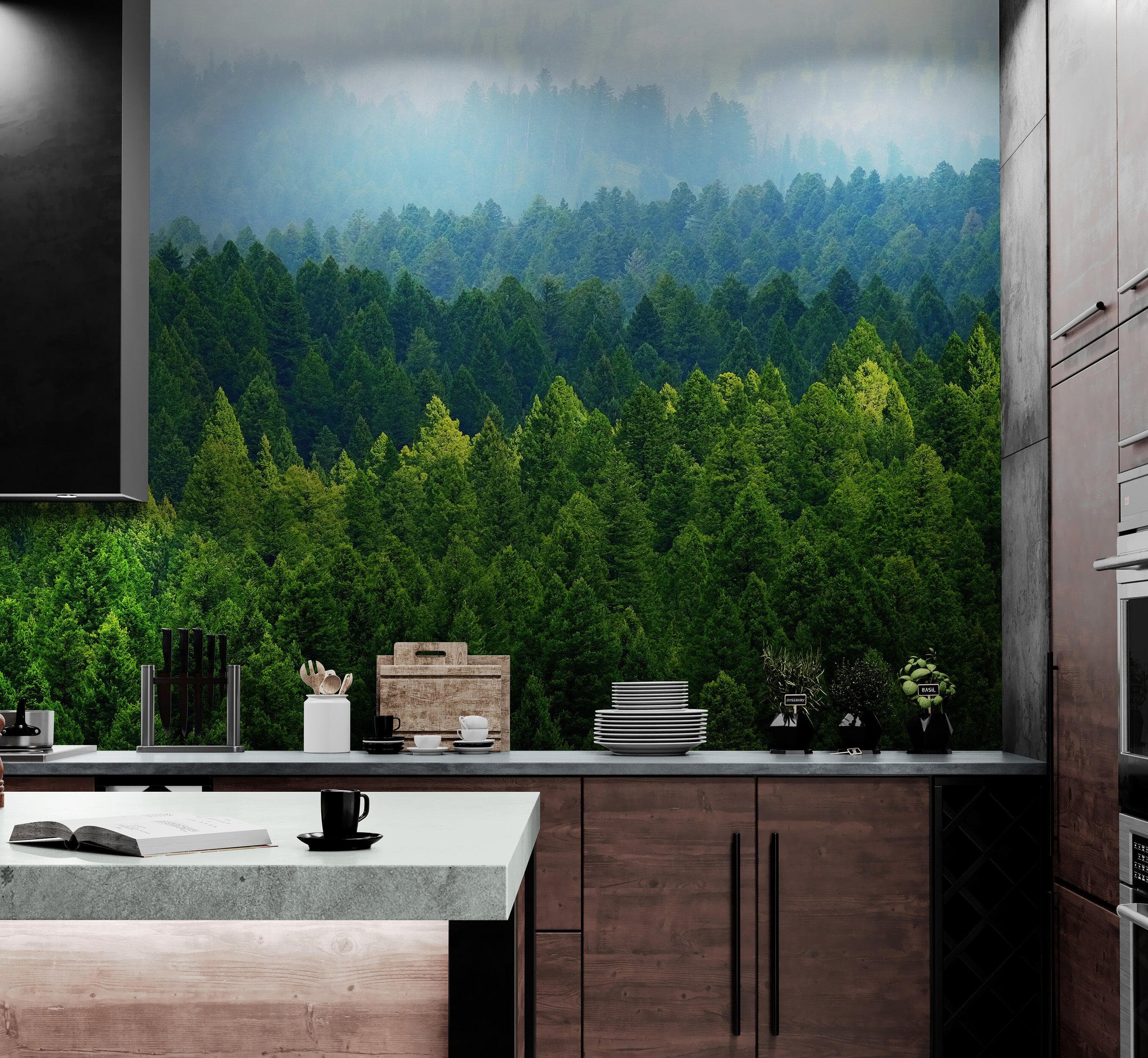 Transform your space with the breathtaking beauty of the Great Forest Mountain Range Wallpaper Mural. This stunning design features lush green forests blending seamlessly into towering mountain peaks, capturing the serenity and grandeur of nature. Perfect for creating a peaceful atmosphere, this mural brings the outdoors into your living room, bedroom, office, or meditation space.
