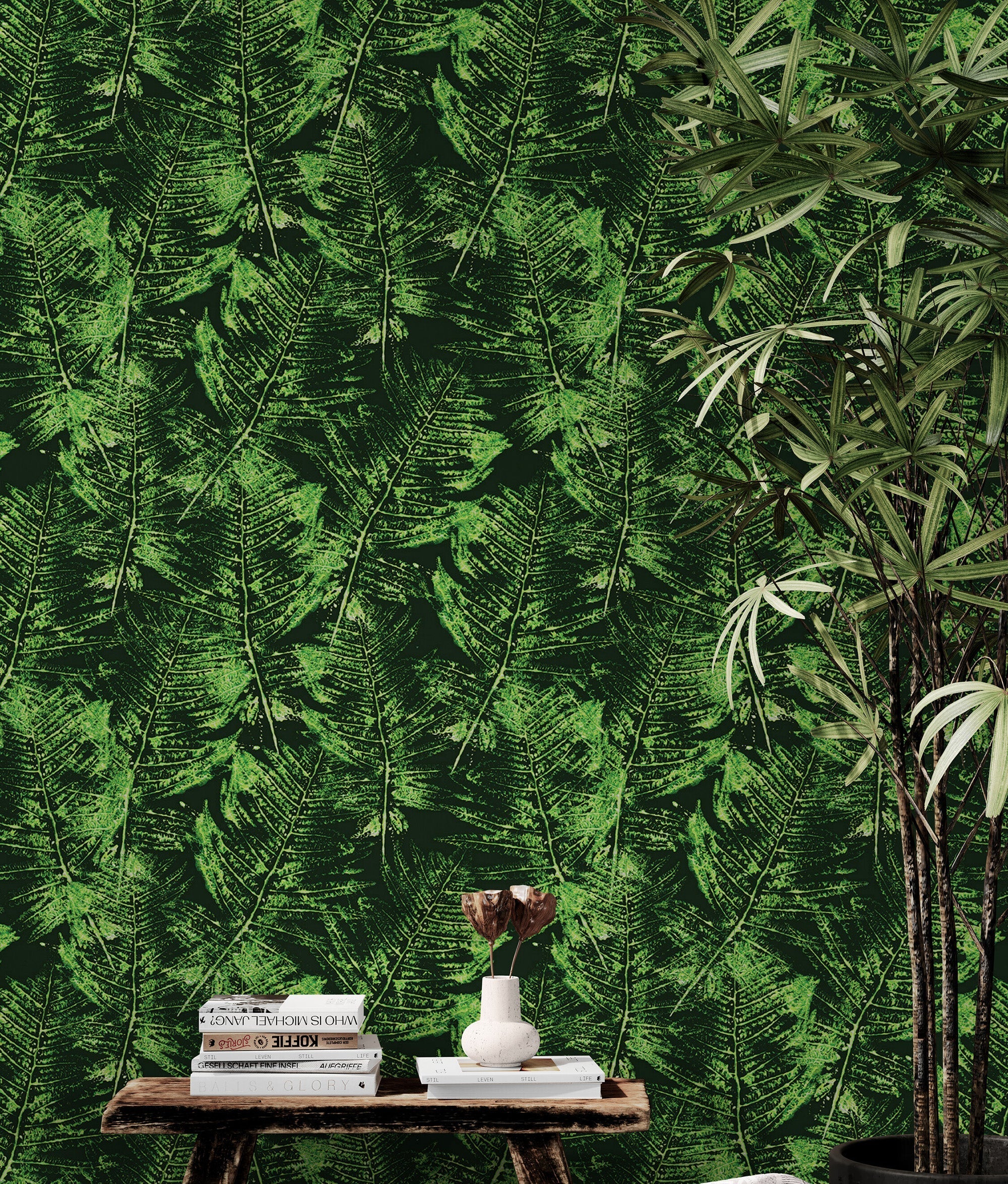 Green Leaves Pattern Wallpaper Mural. Botanical Wall Mural. #6744