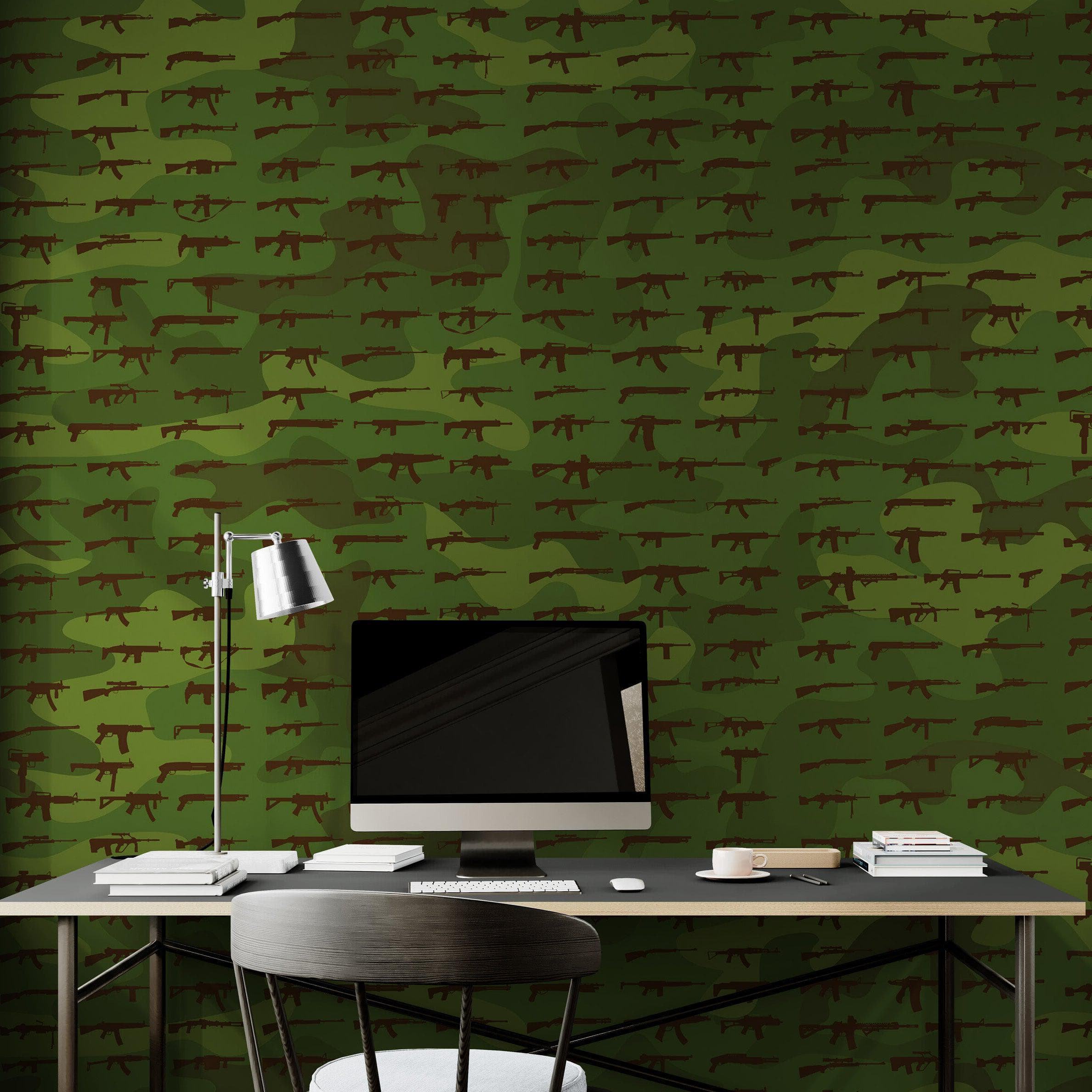Gun Pattern Wall Mural. Urban Camo Wallpaper. #6860