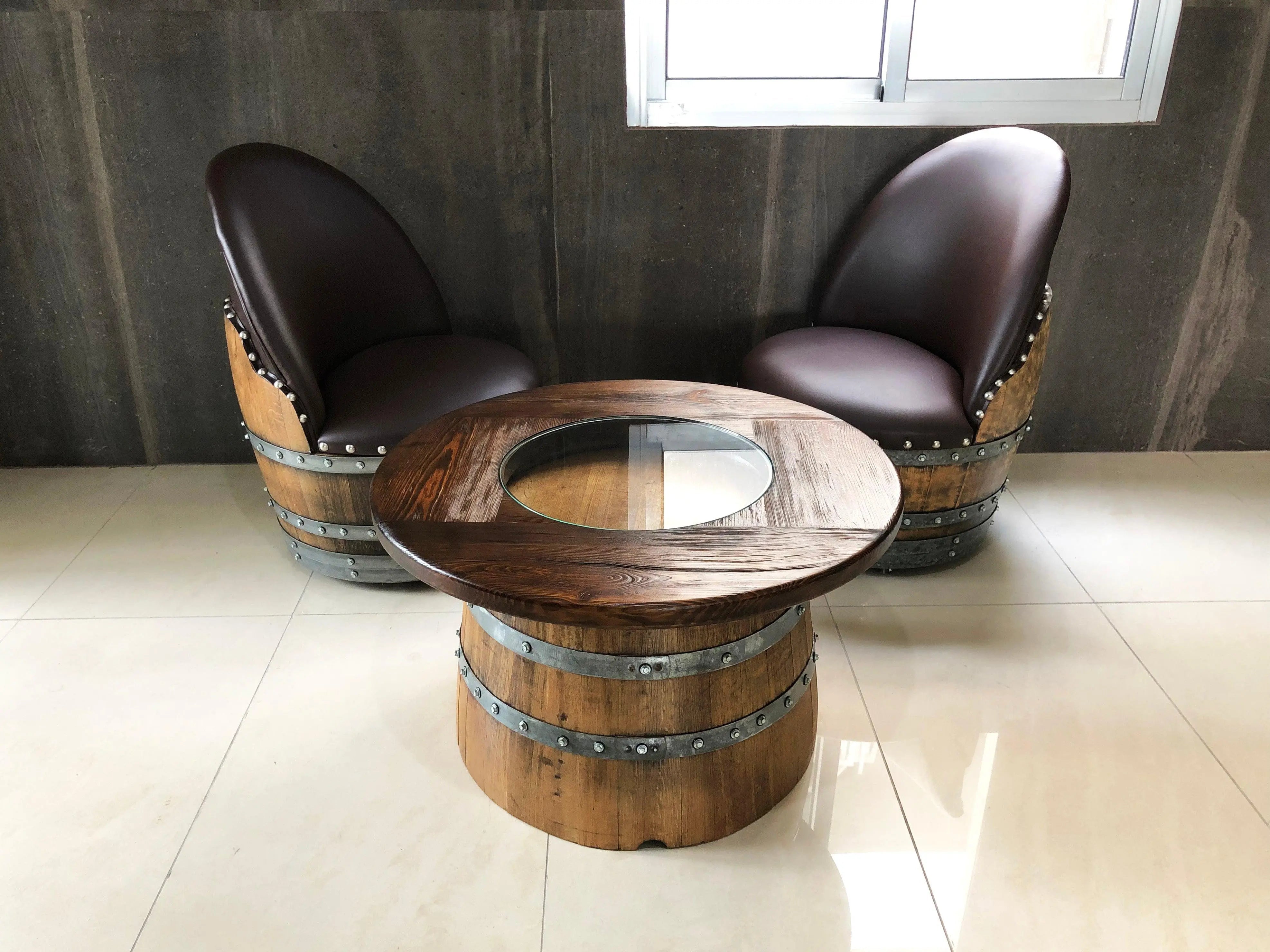Half-Barrel Coffee Table With Removable Glass Top - Wine/Whiskey/Bourbon Barrel Storage Table - Rustic Furniture
