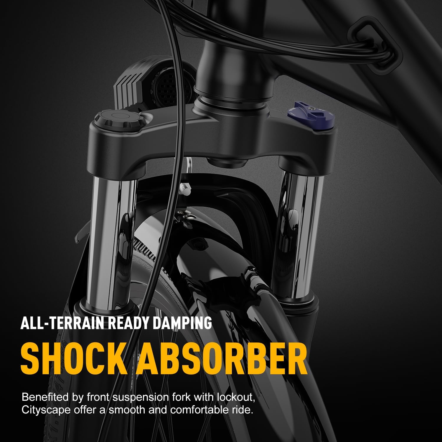 Lightweight, sleek, and designed for daily rides, the Cityscape has a unique battery USB port that charges your phone anytime and anywhere. With a top speed of 19mph propelled by a 350W (Peak 500W) motor and a 36V 10Ah long-lasting battery, you can effortlessly travel up to 40 miles.
