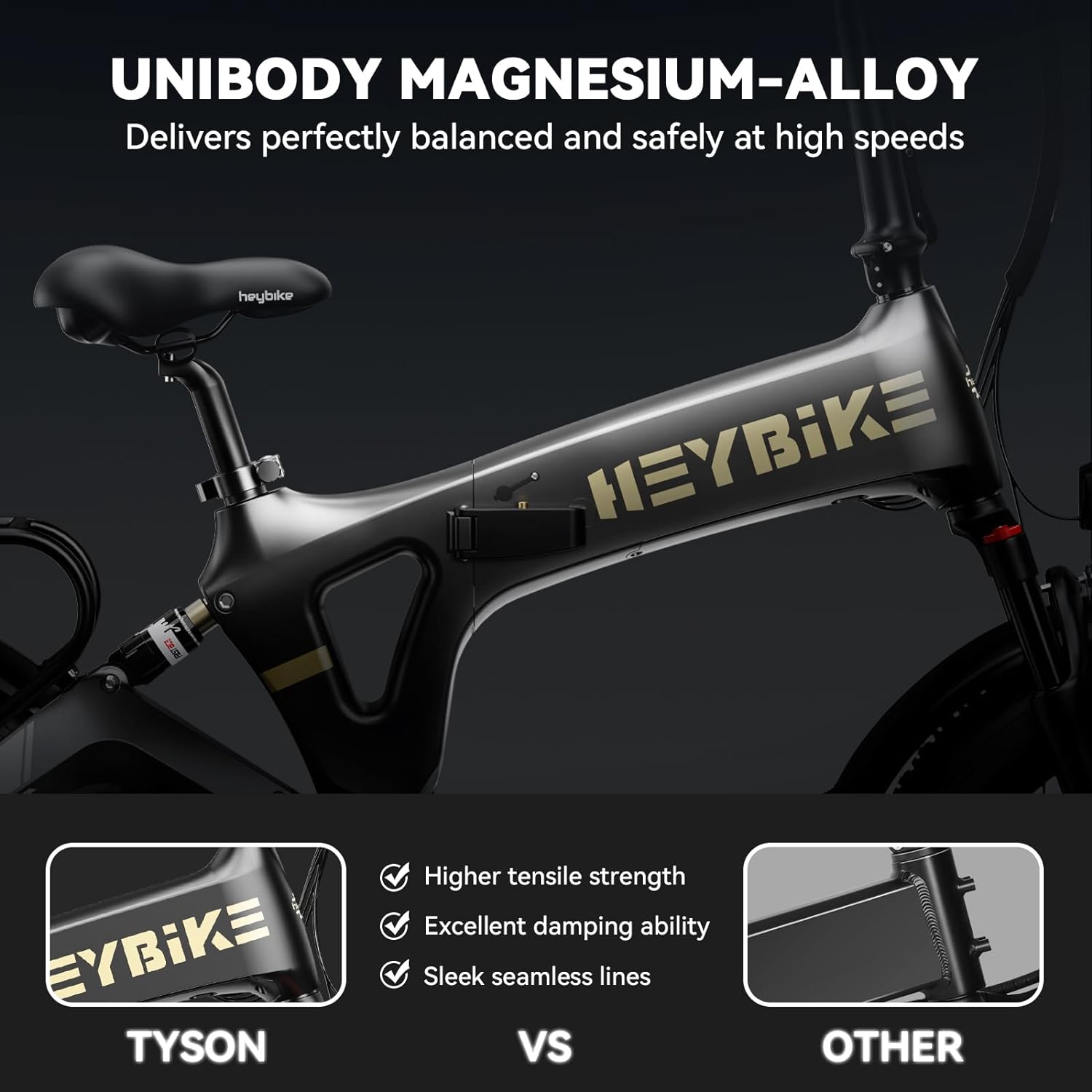 Upgrade to the Heybike Tyson Electric Bike today and experience the joy of effortless biking wherever you go!