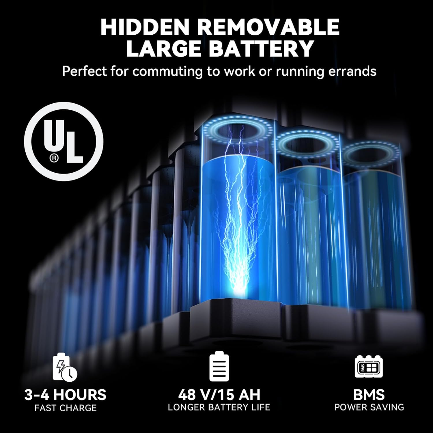 With a unique one-piece magnesium frame and integrative wheels combination, the Heybike Tyson Electric Bike can be folded and easily carried. With a 1200W peak motor, 28MPH top speed, covering a distance of 55 miles per charge, this e-bike has a boatload of safety features. Hydraulic brakes, fat tires, auto-on headlights, dual suspension, integrated taillight with brake light, pedal assist, anti-theft feature, and much more.