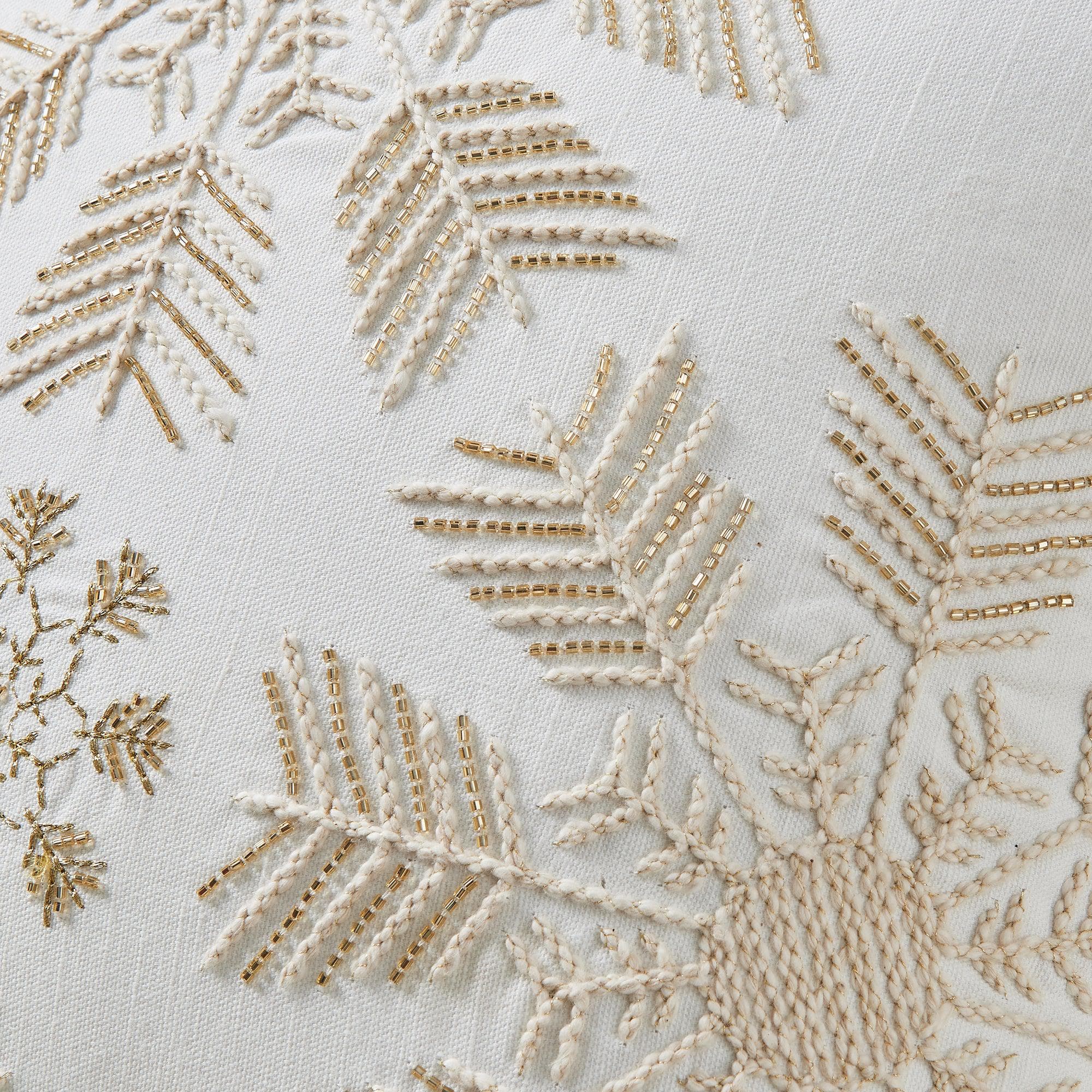 Elevate your holiday décor with our stunning collection of decorative throw pillows, designed to add a cheerful, festive decorative style to your home. Each pillow has a plush pillow insert and a removable decorative sham cover featuring a discreet zipper enclosure for effortless removal. This collection showcases an exquisite array of intricate embroidery, delicate appliqué, and shimmering beadwork, offering a captivating mix of textures and designs that will add a touch of holiday style to any room in your home.